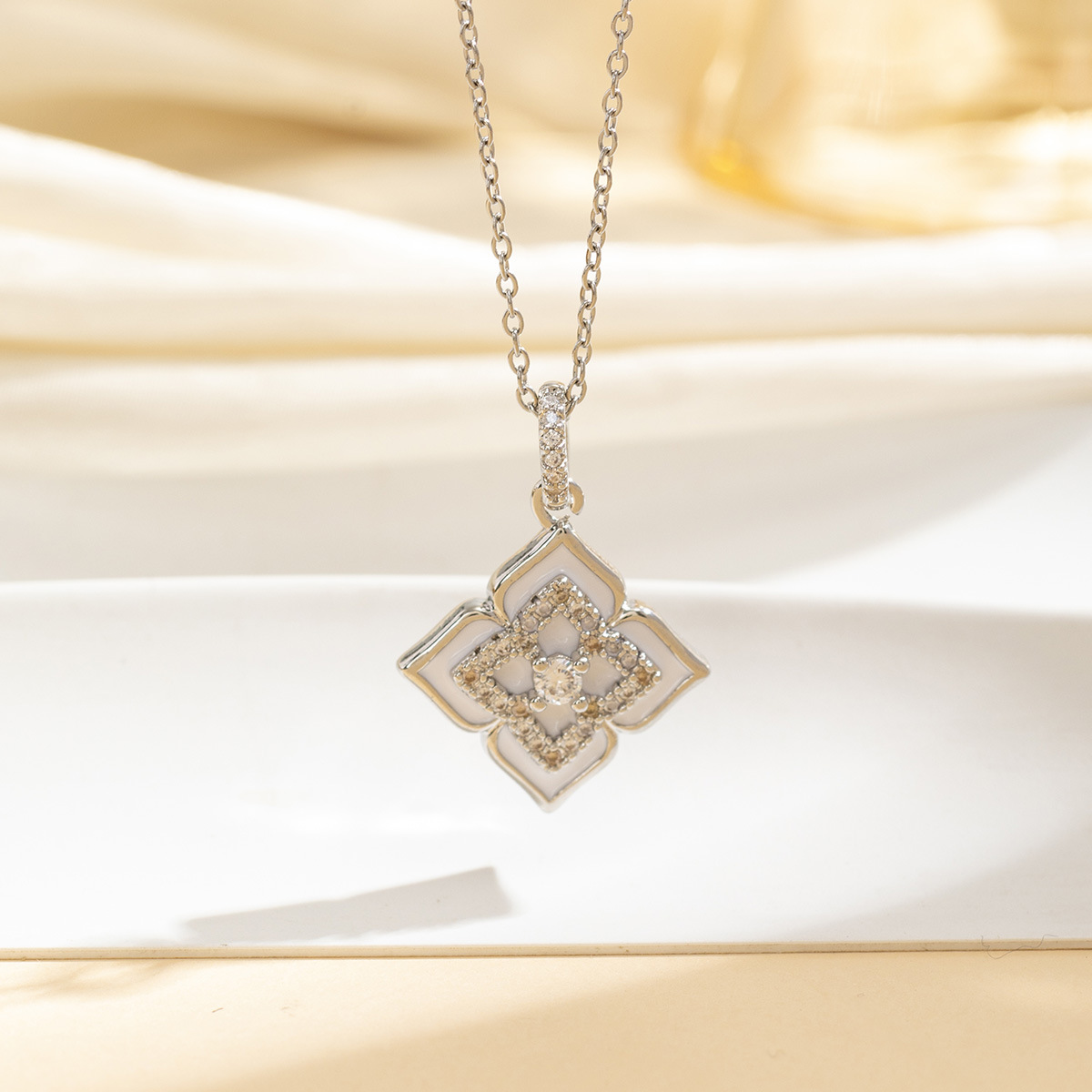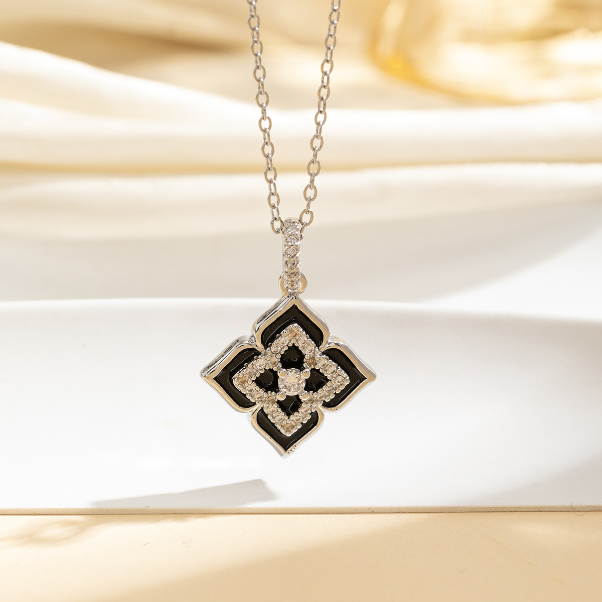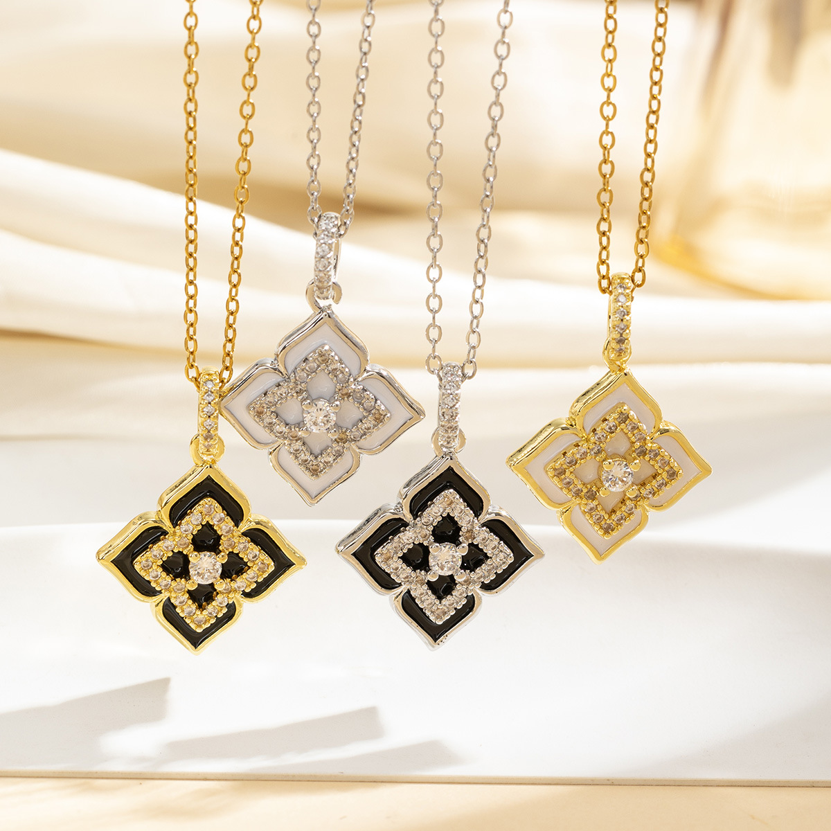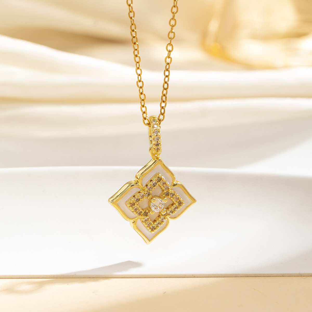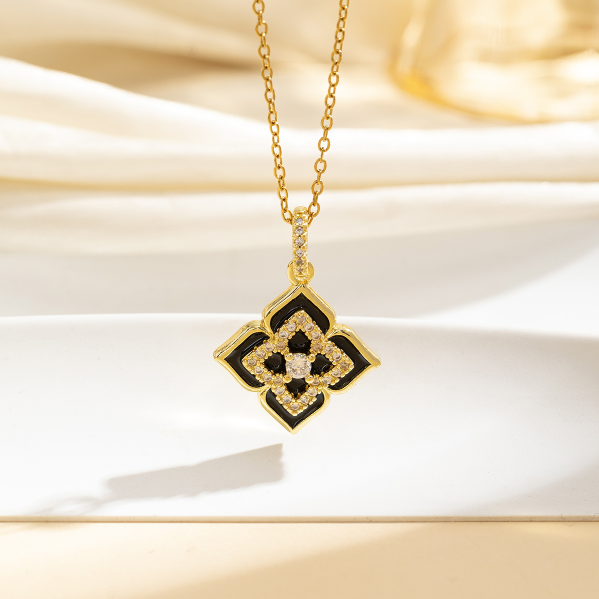 欧美时尚小花四叶草项链镀金菱形小清新简约百搭女士锁骨链饰品