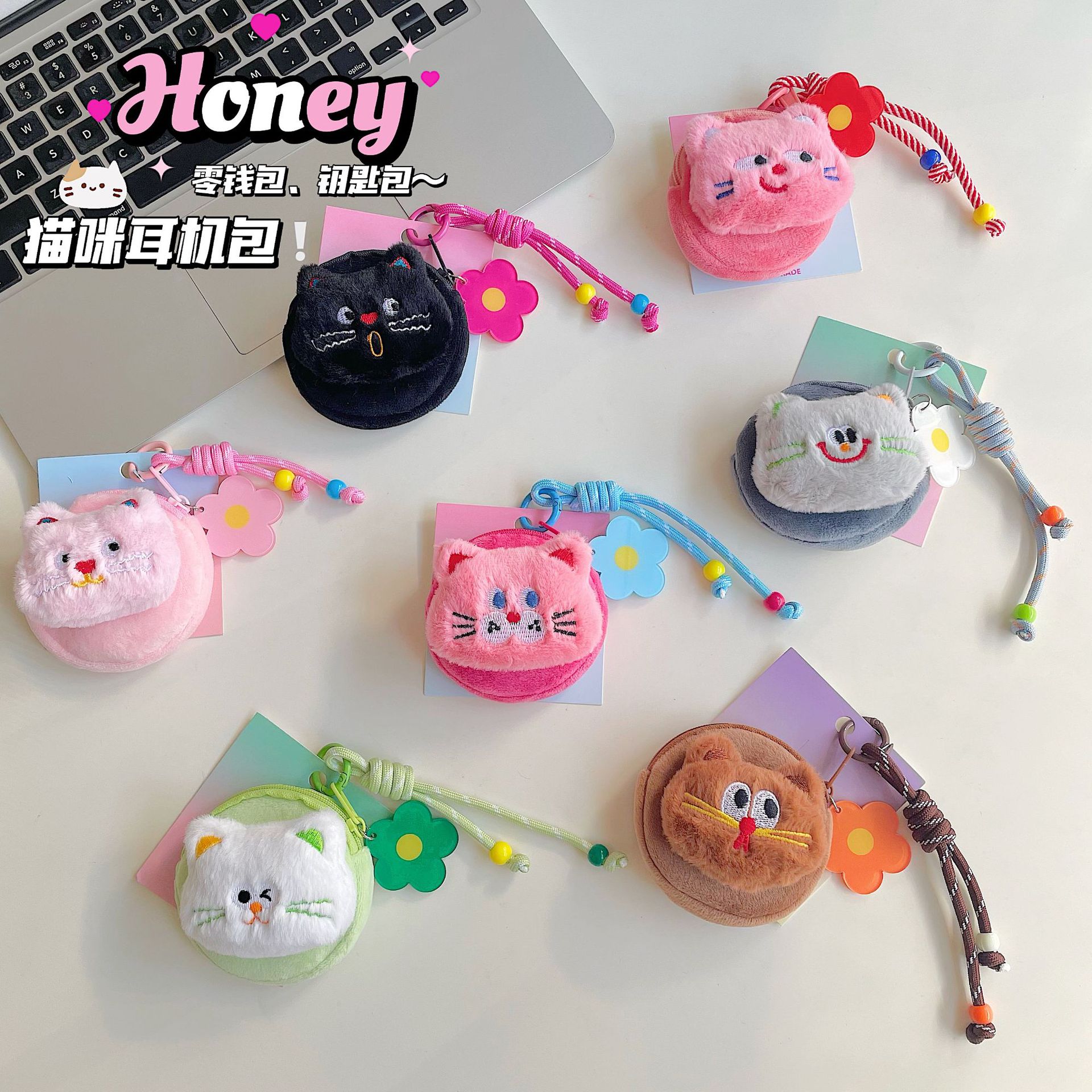 创意萌趣猫咪零钱包少女可爱毛绒包包挂饰挂件可收纳耳机包批发
