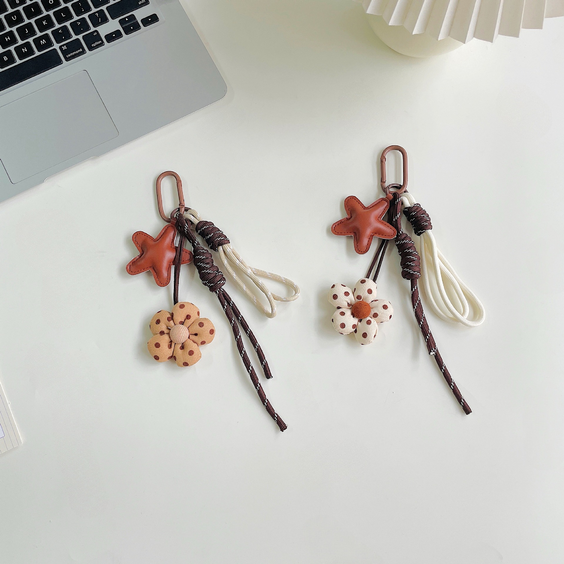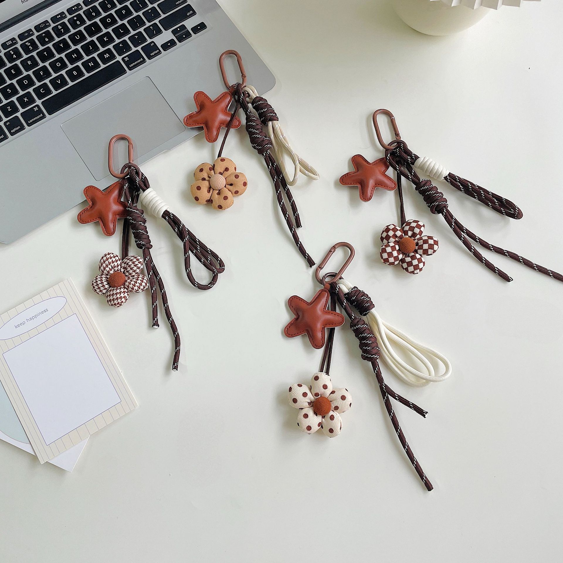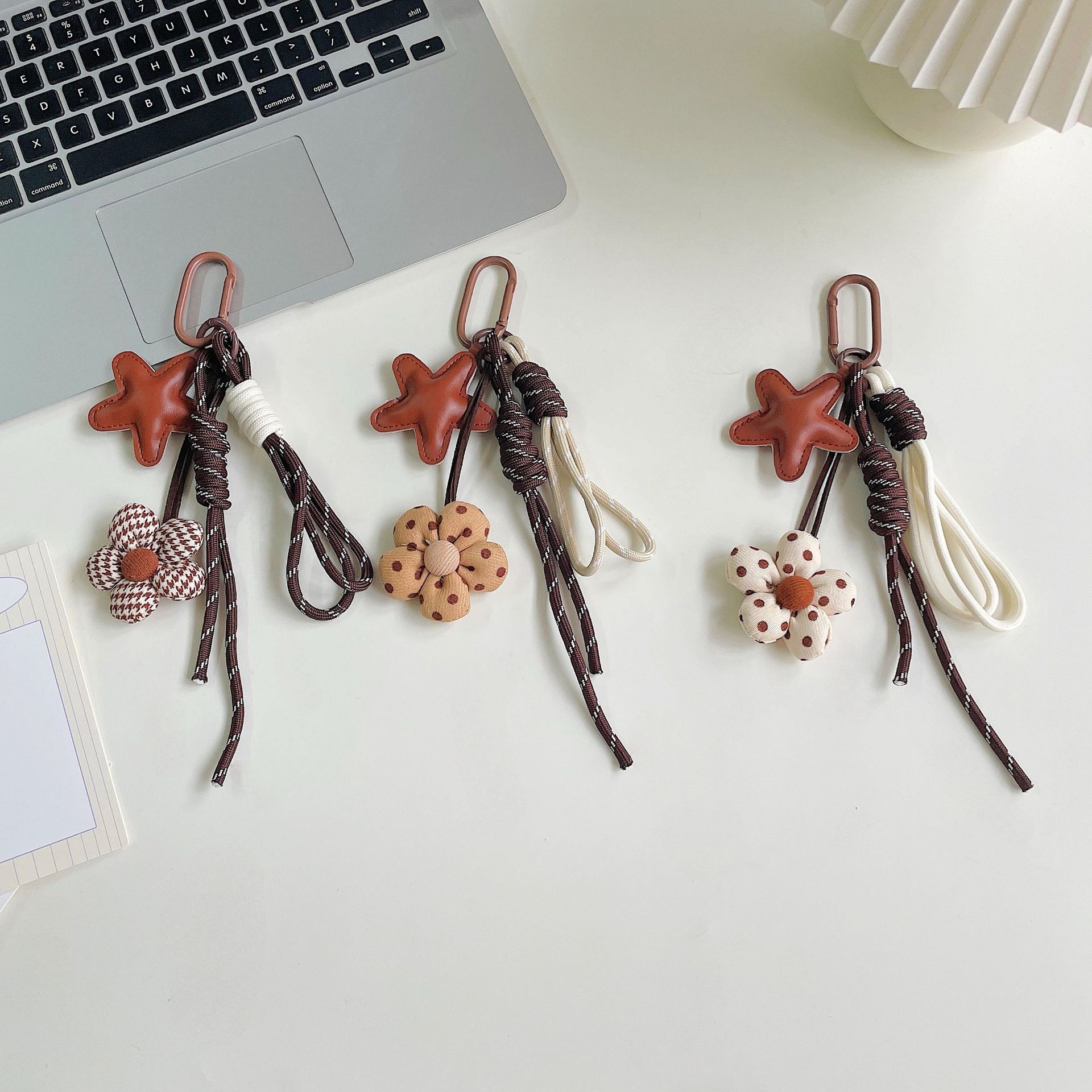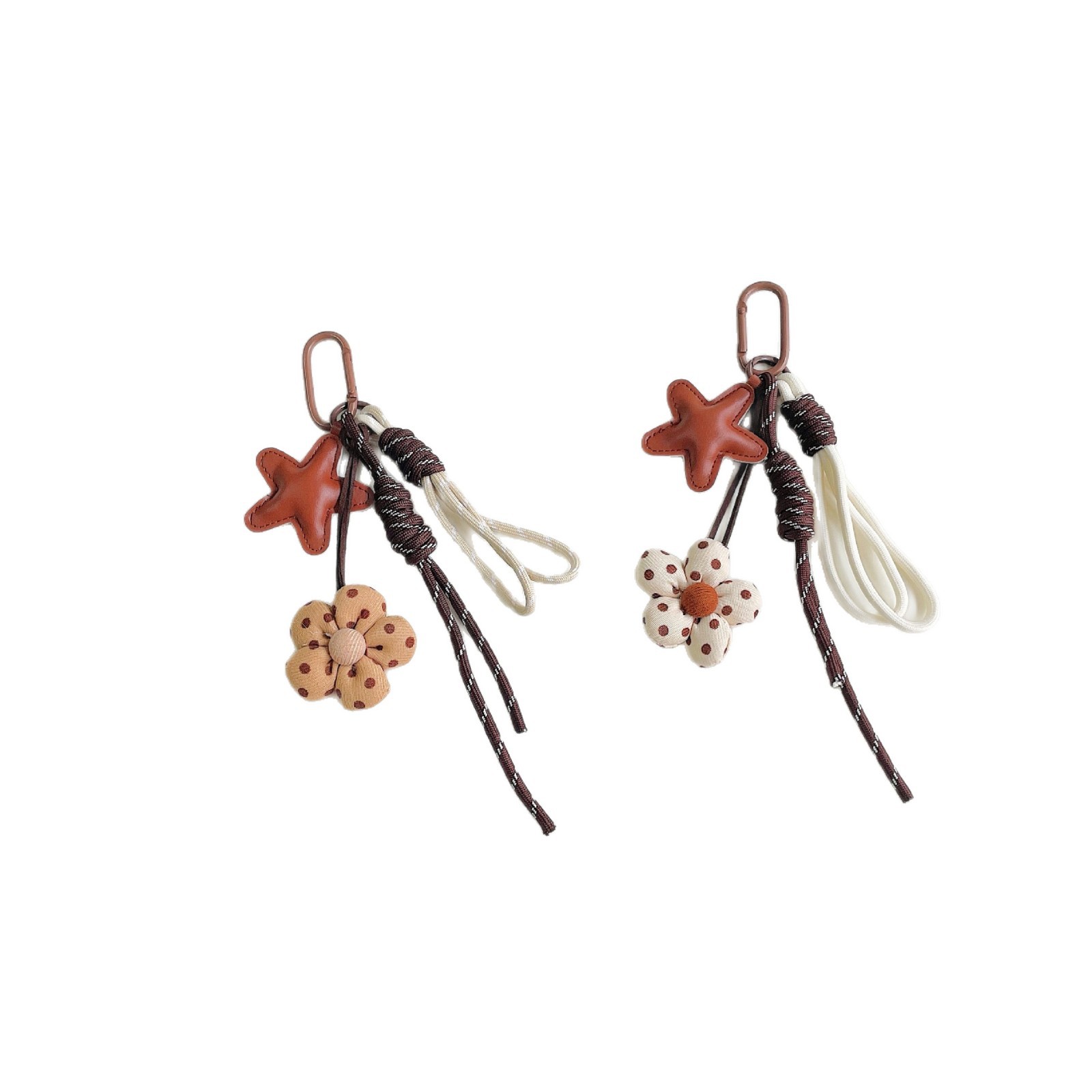 miu系包包挂件美拉德咖色系充棉布艺小花挂绳钥匙扣装饰包包挂饰