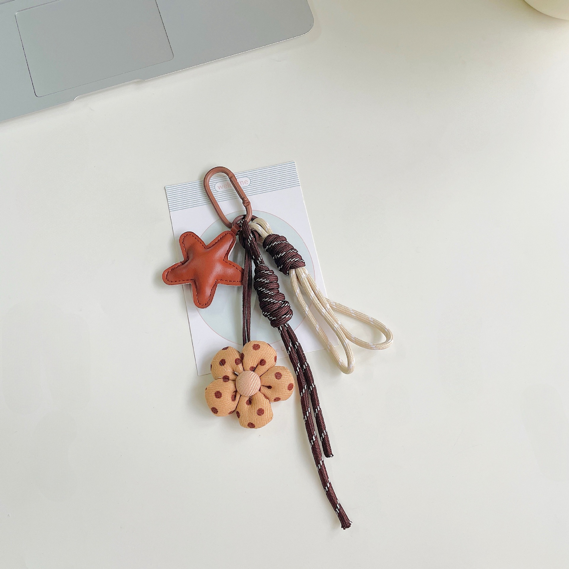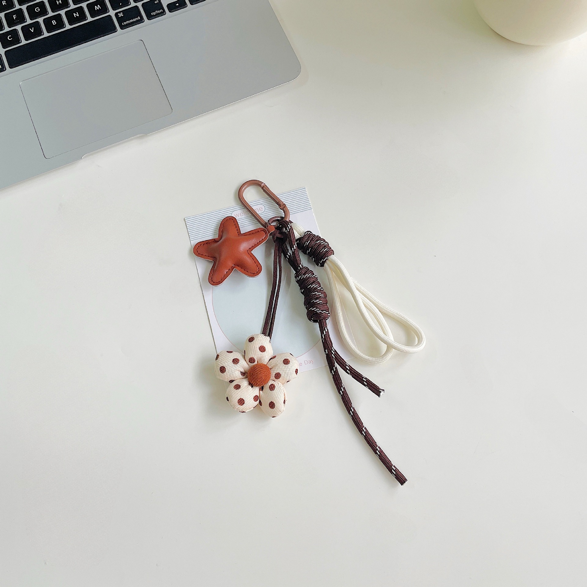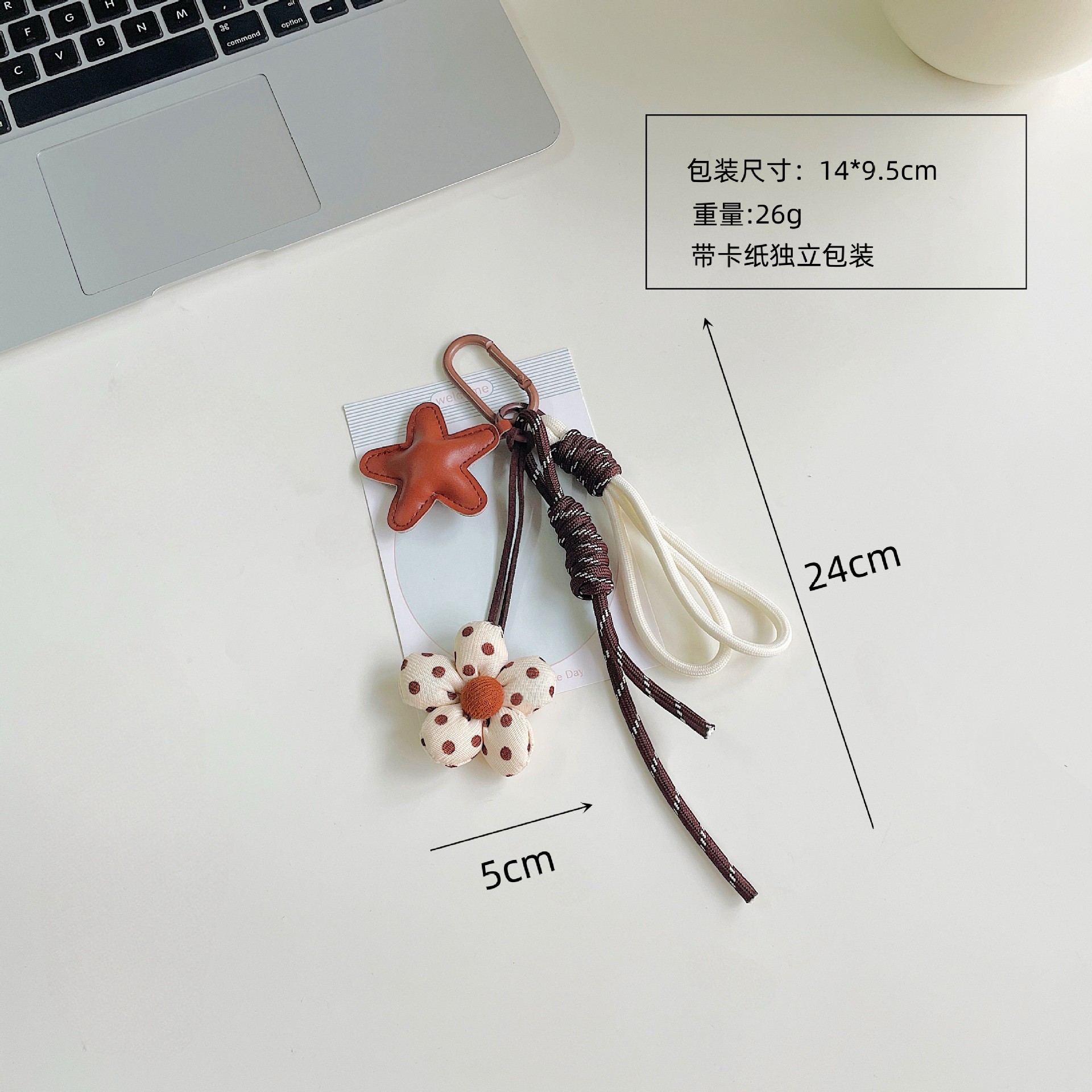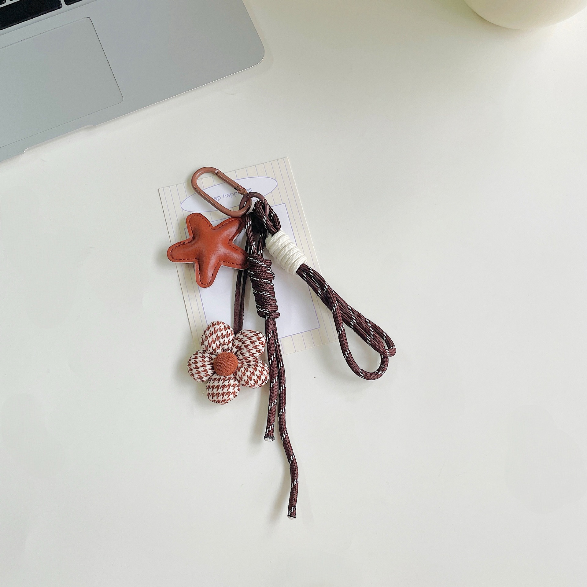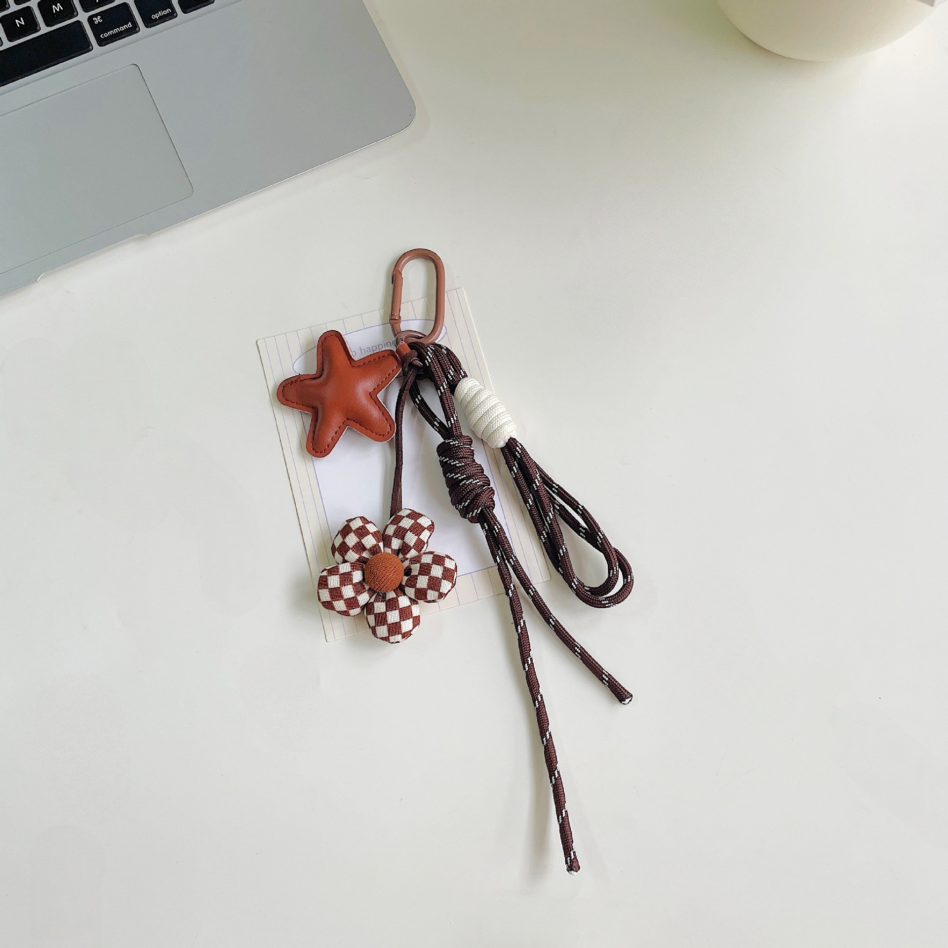miu系包包挂件美拉德咖色系充棉布艺小花挂绳钥匙扣装饰包包挂饰