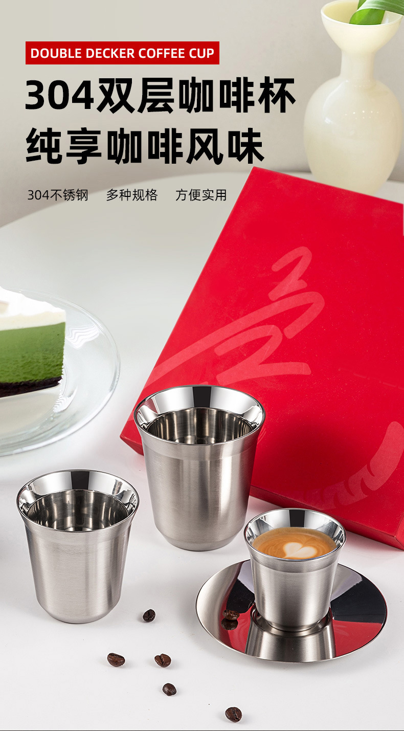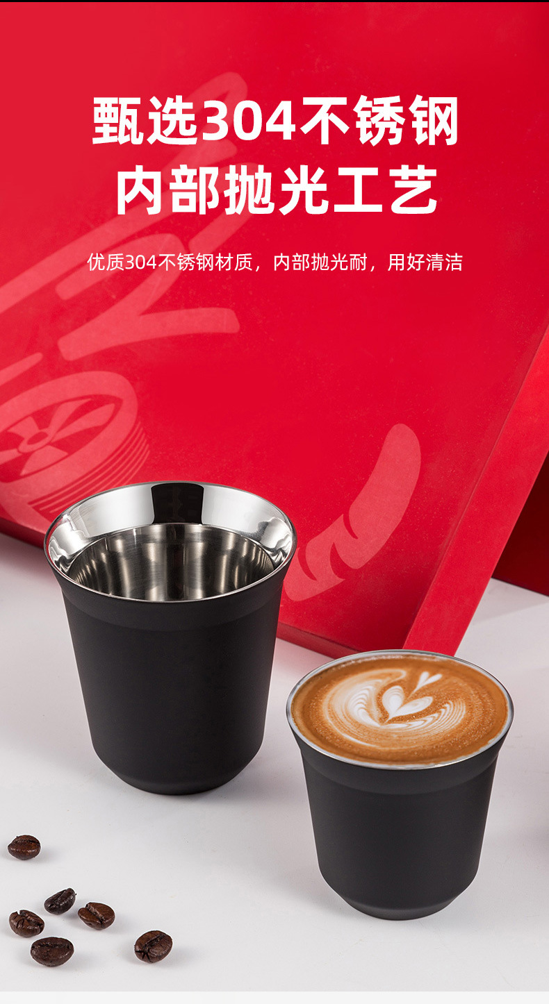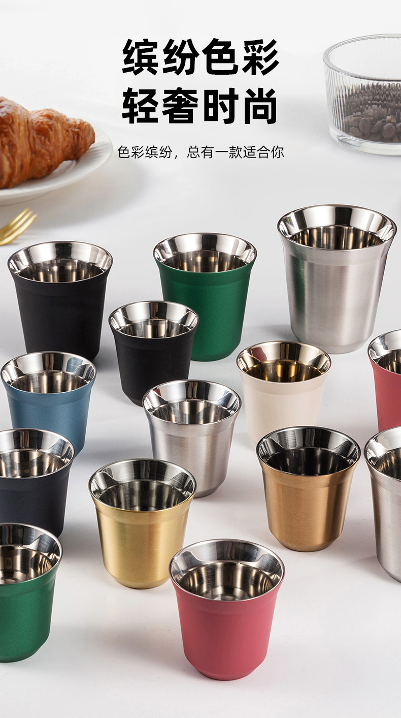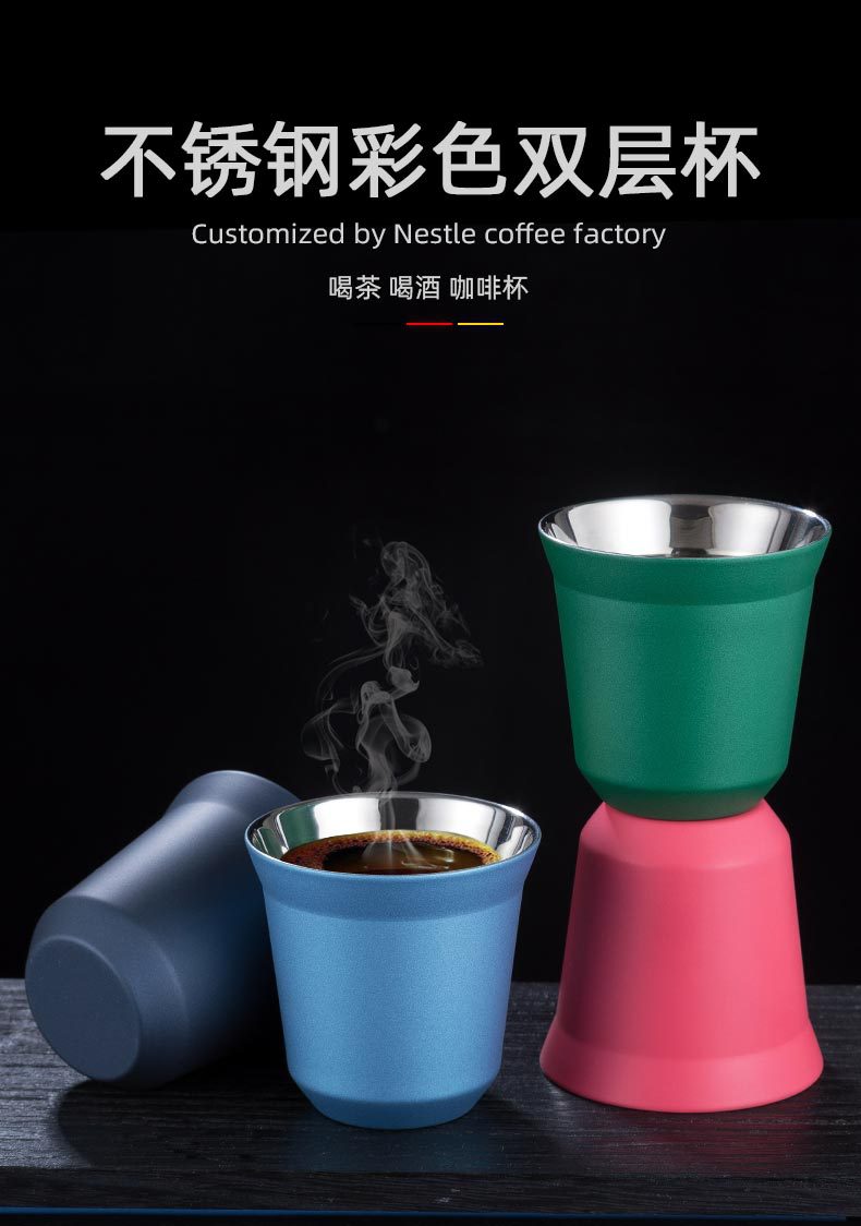 意式咖啡杯双层不锈钢彩色304隔热80ML儿童杯【新品】隔热保冷