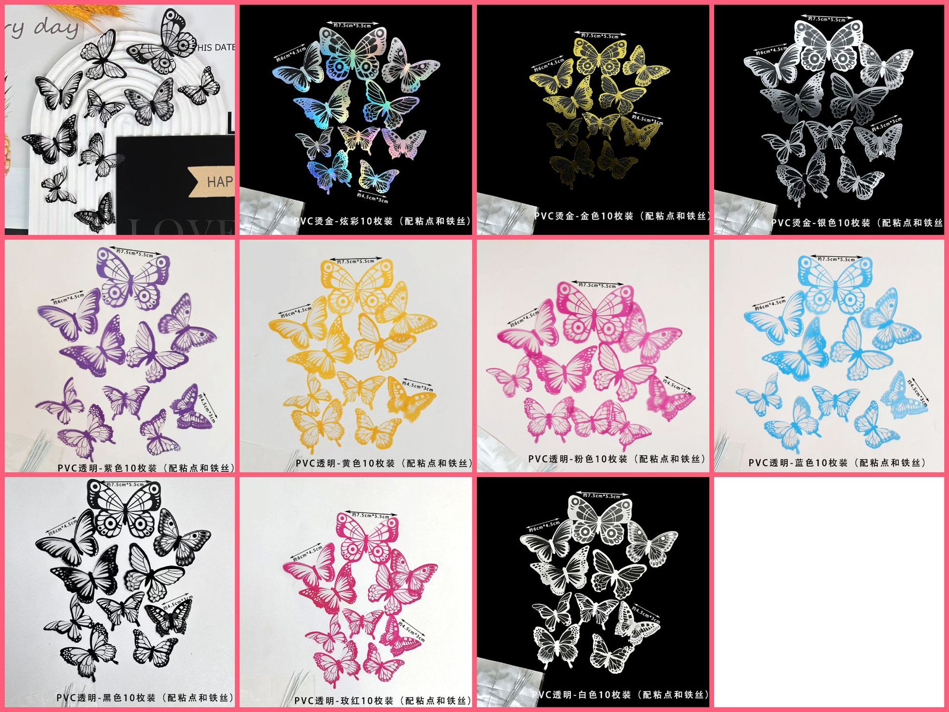 烘焙蛋糕装饰PVC蝴蝶套装插件插卡甜品台场景装扮系列
