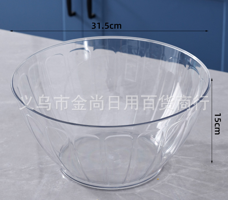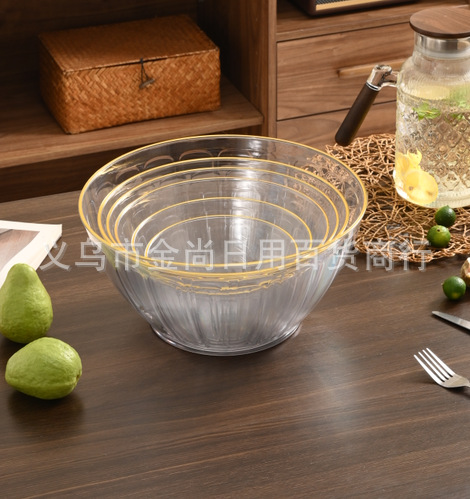 圆形金边水果沙拉碗塑料桌面幼儿园水果整理碗透明沙拉碗套装