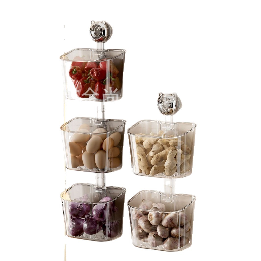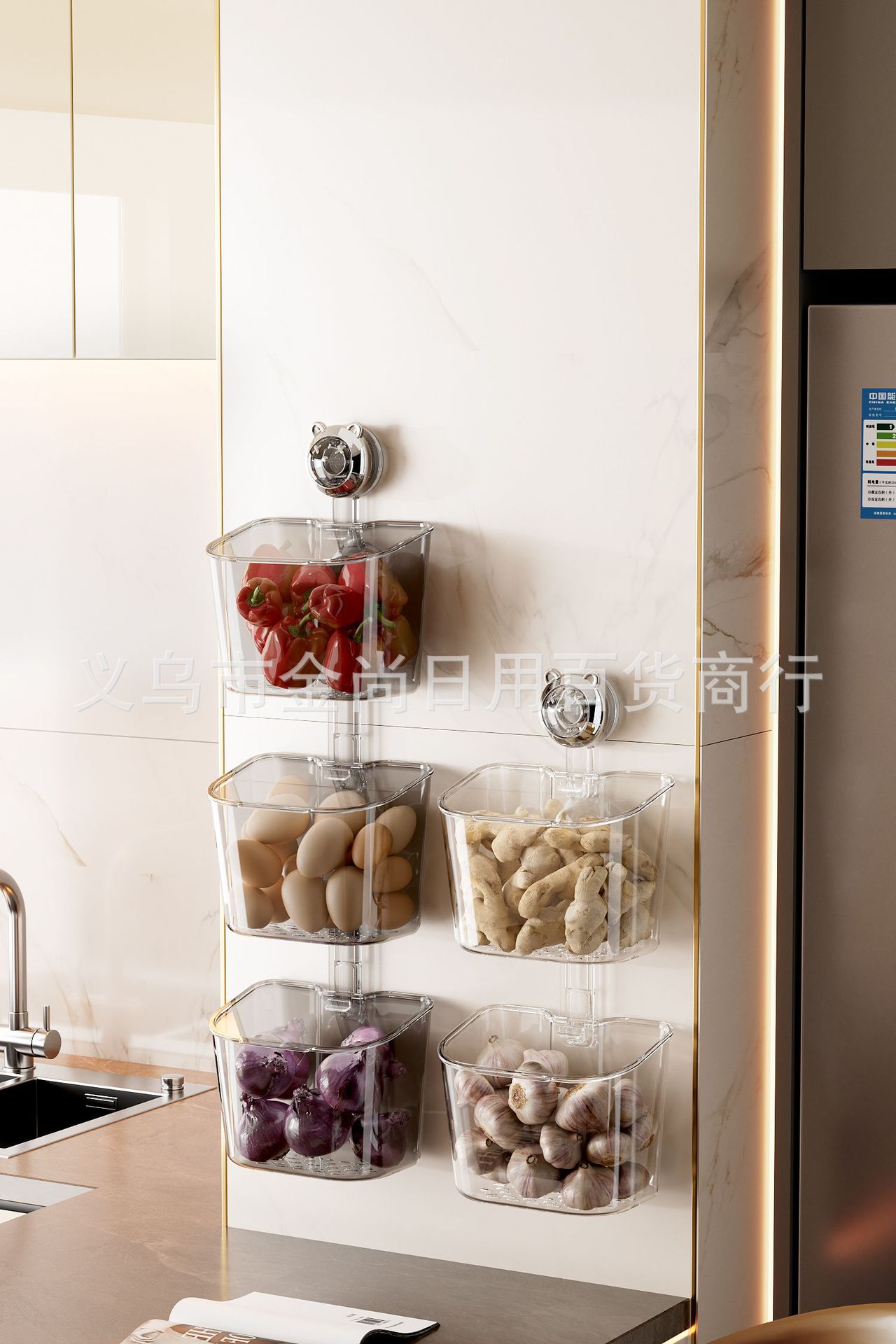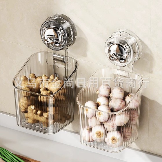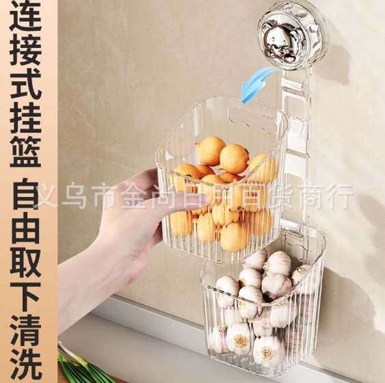 小熊款厨房葱姜蒜收纳盒生姜大蒜调料壁挂收纳篮多功能墙上挂篮