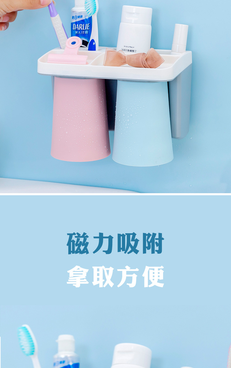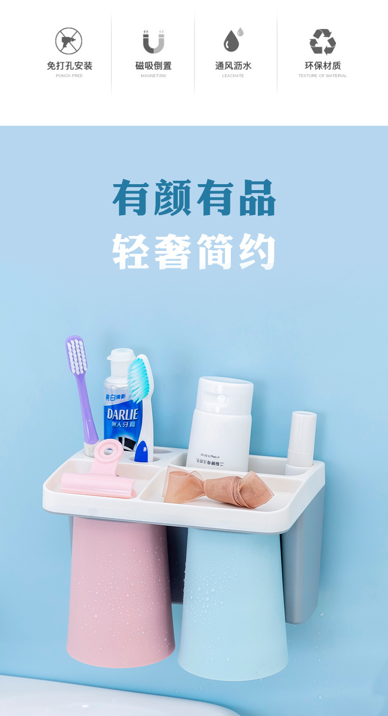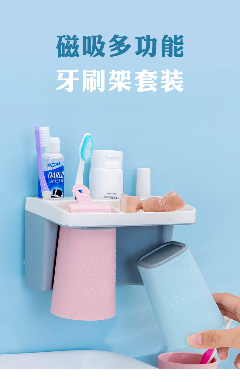 架免打孔卫生间壁挂式牙刷架挂墙多功能架子套装磁吸漱口杯置物架