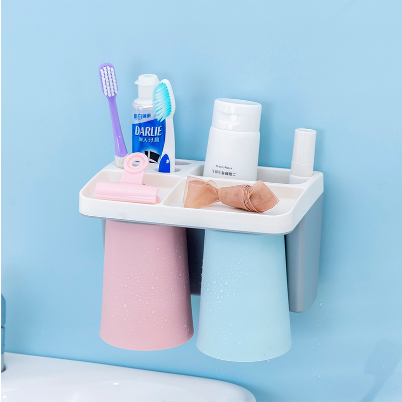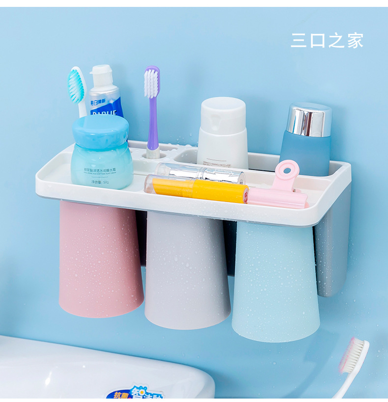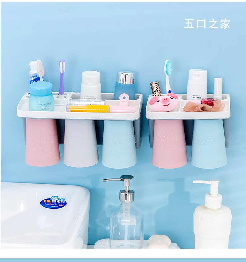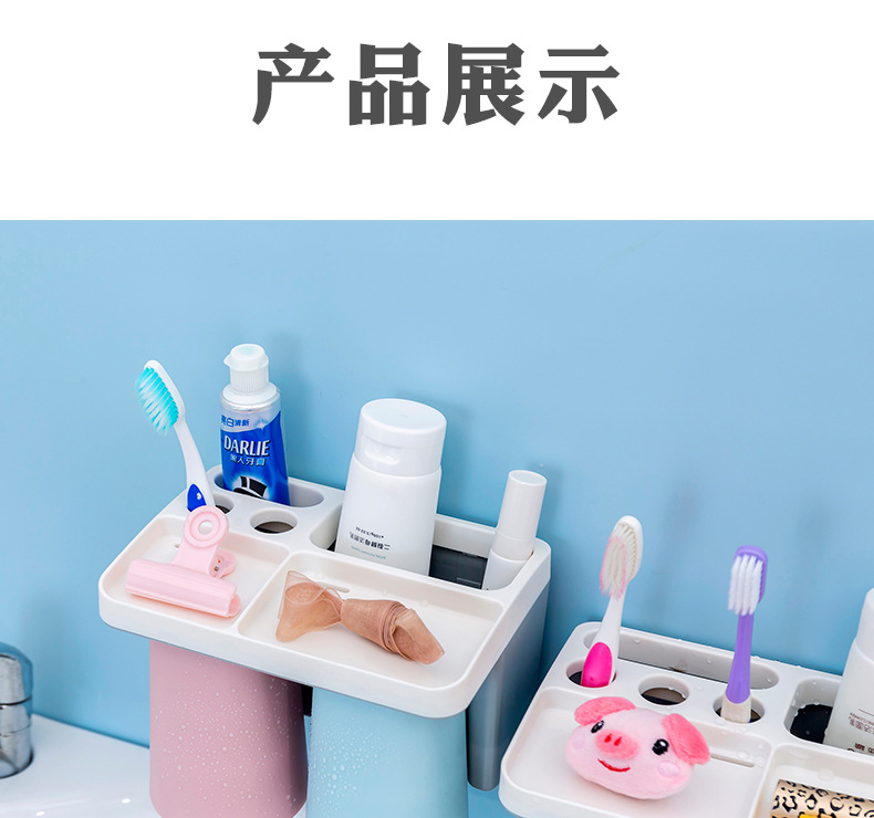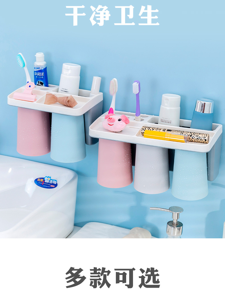 架免打孔卫生间壁挂式牙刷架挂墙多功能架子套装磁吸漱口杯置物架