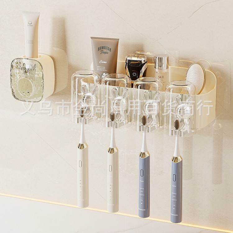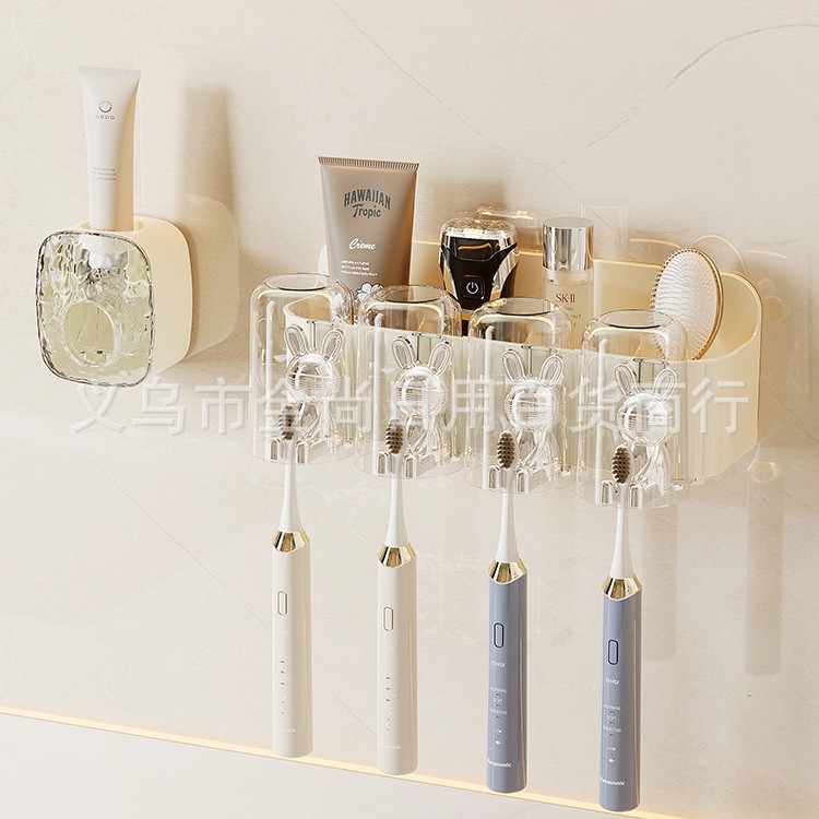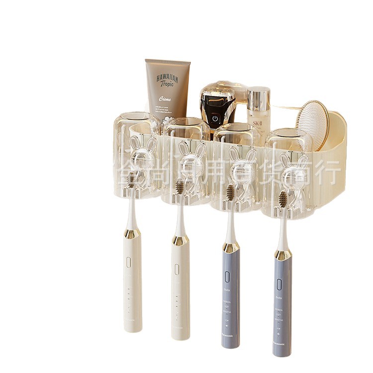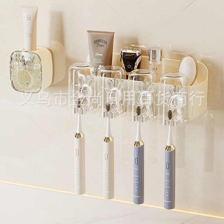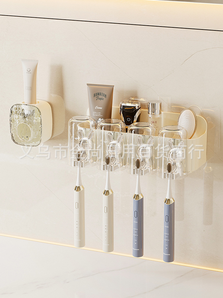 卫生间无痕壁挂牙刷架牙杯置物架免打孔浴室洗漱台漱口杯收纳架
