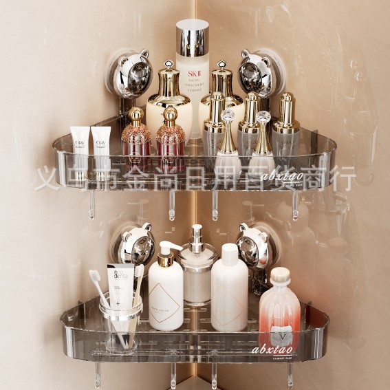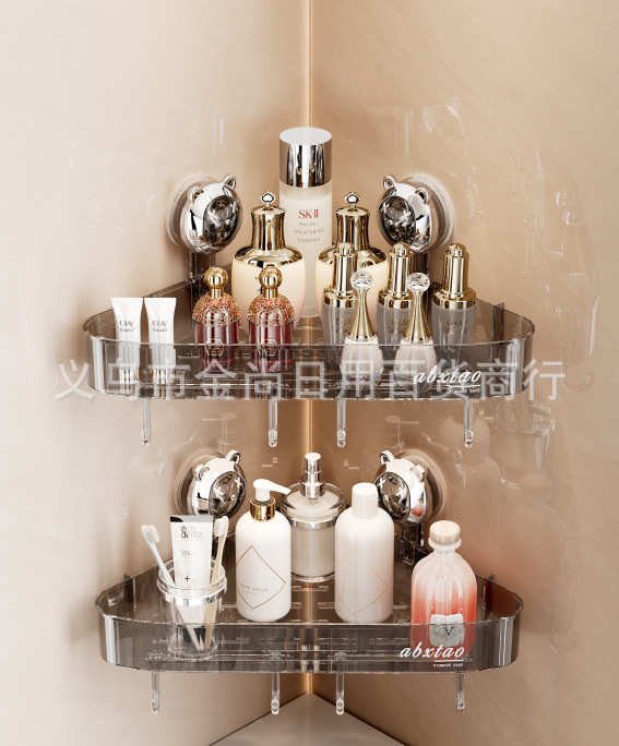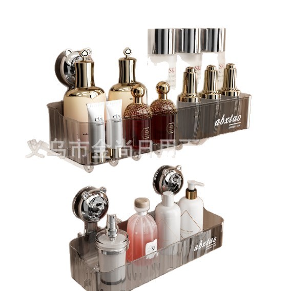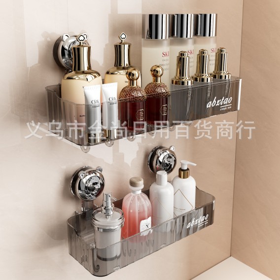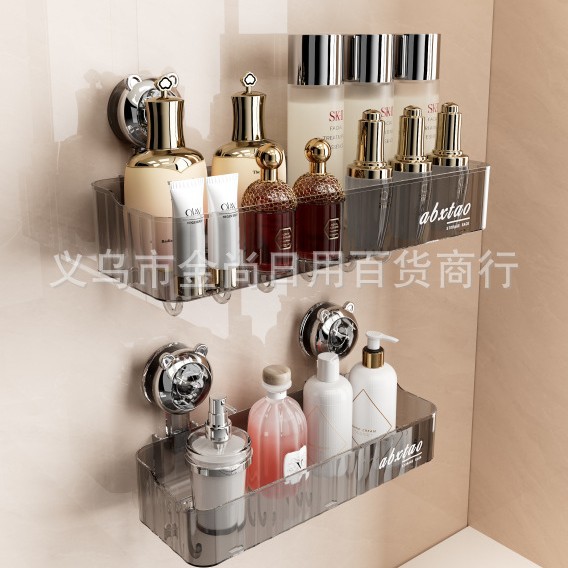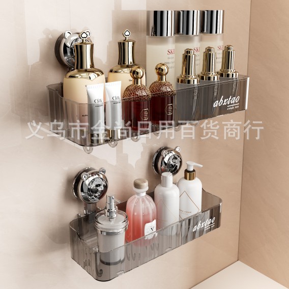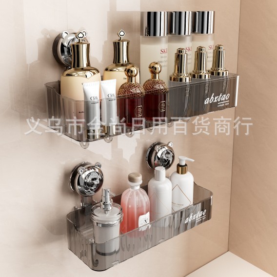 高颜值浴室置物架家用吸盘壁挂式免打孔卫生间淋浴区墙上收纳篮