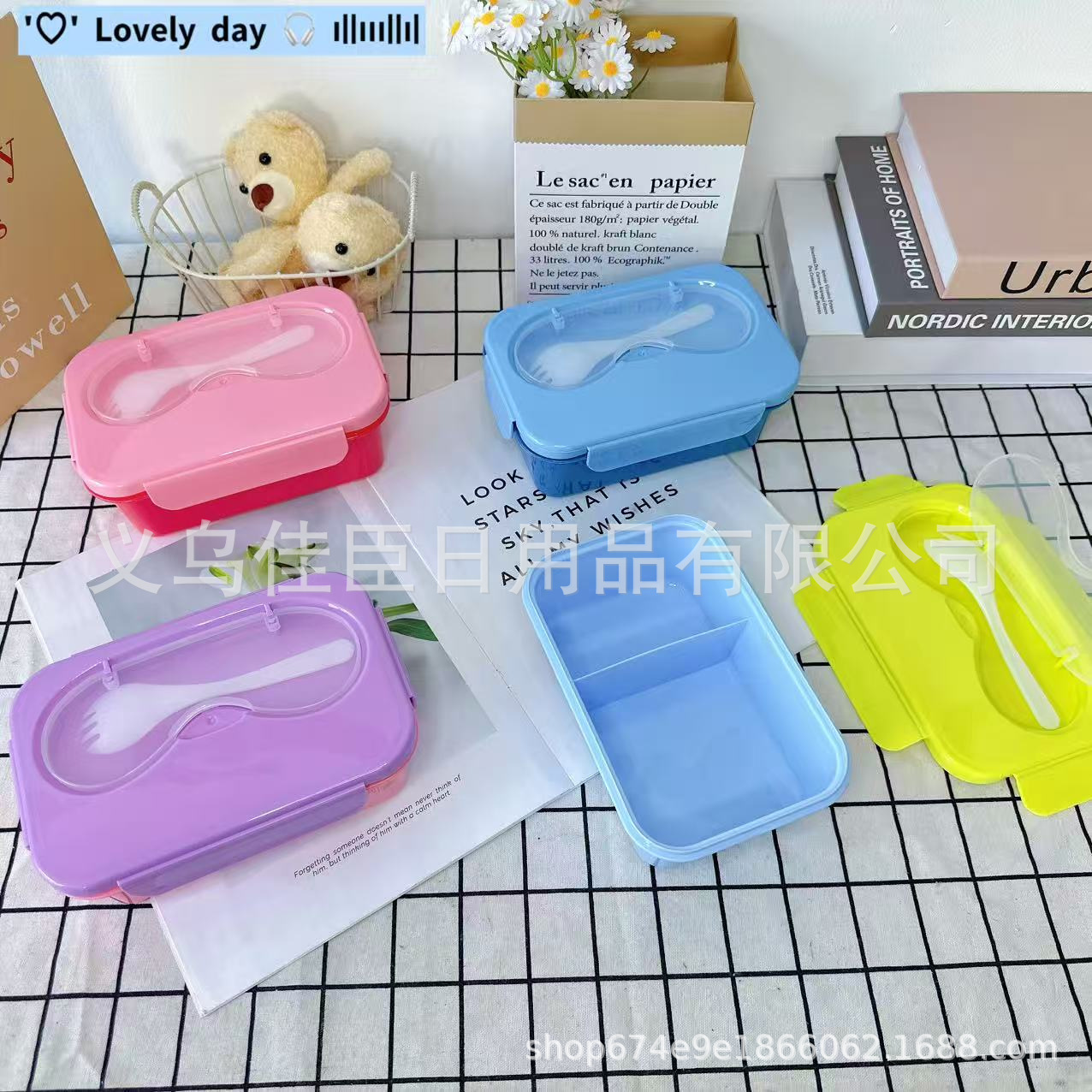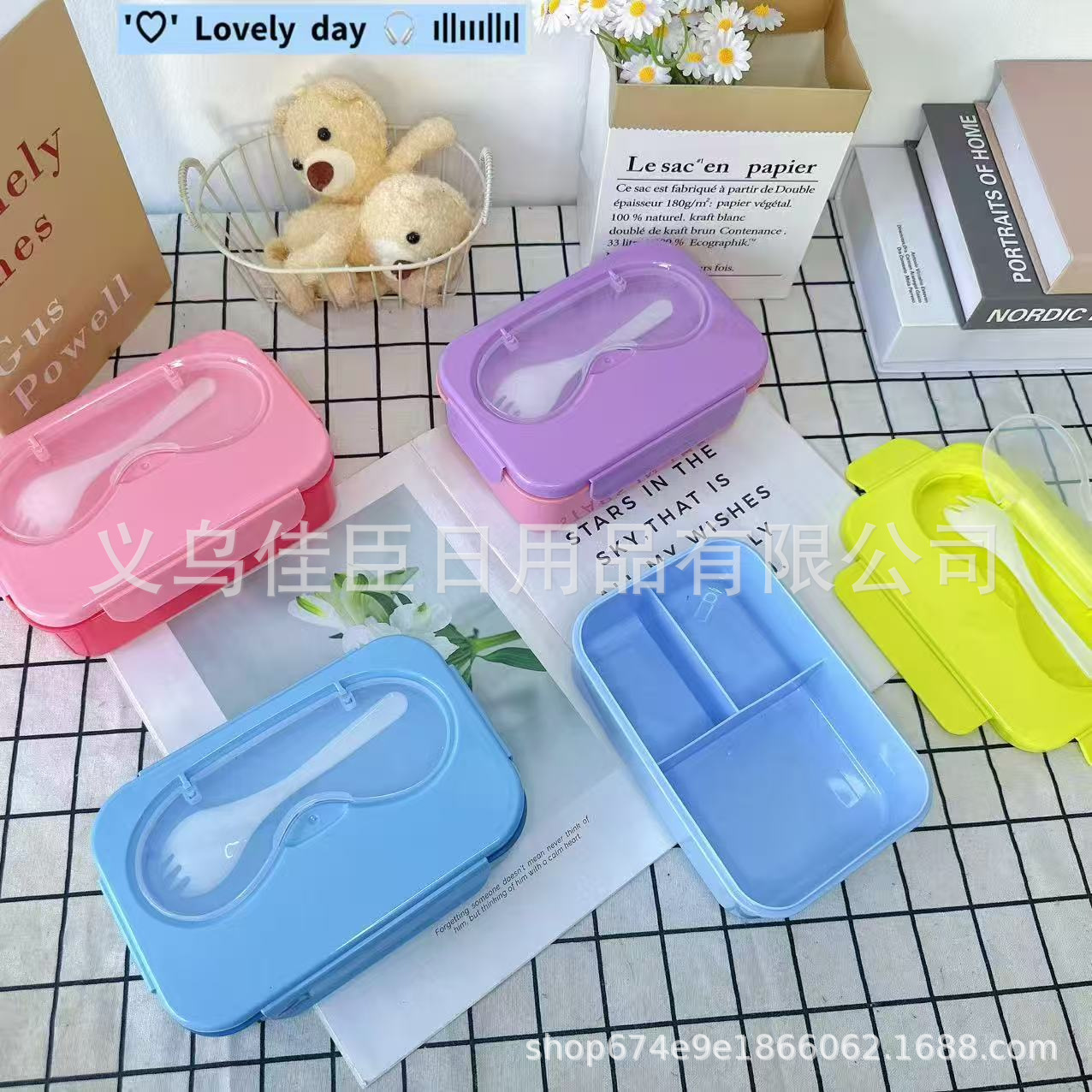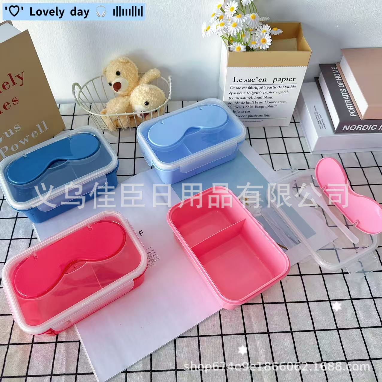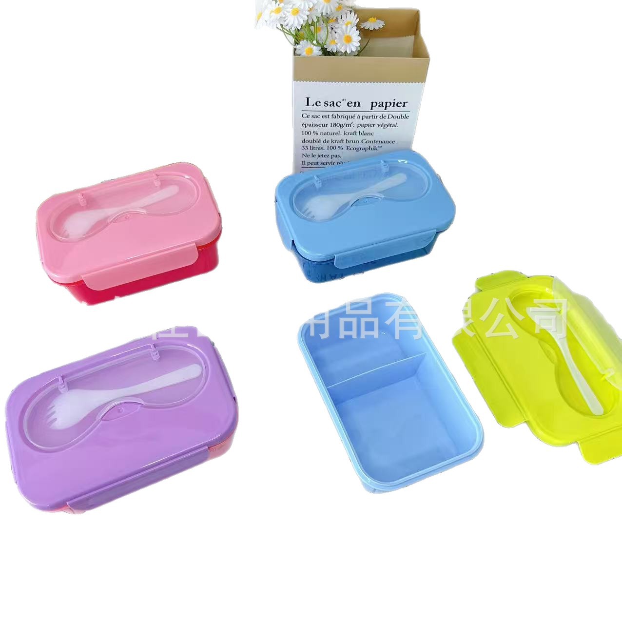 带盖饭盒纯色无图案分格式双层可微波小学生上班族带饭便当盒保鲜