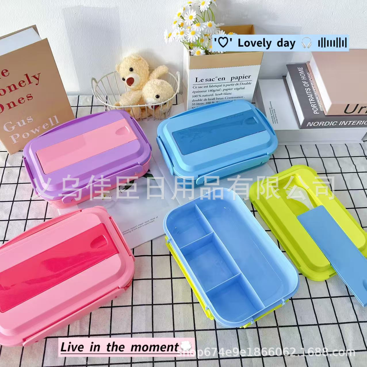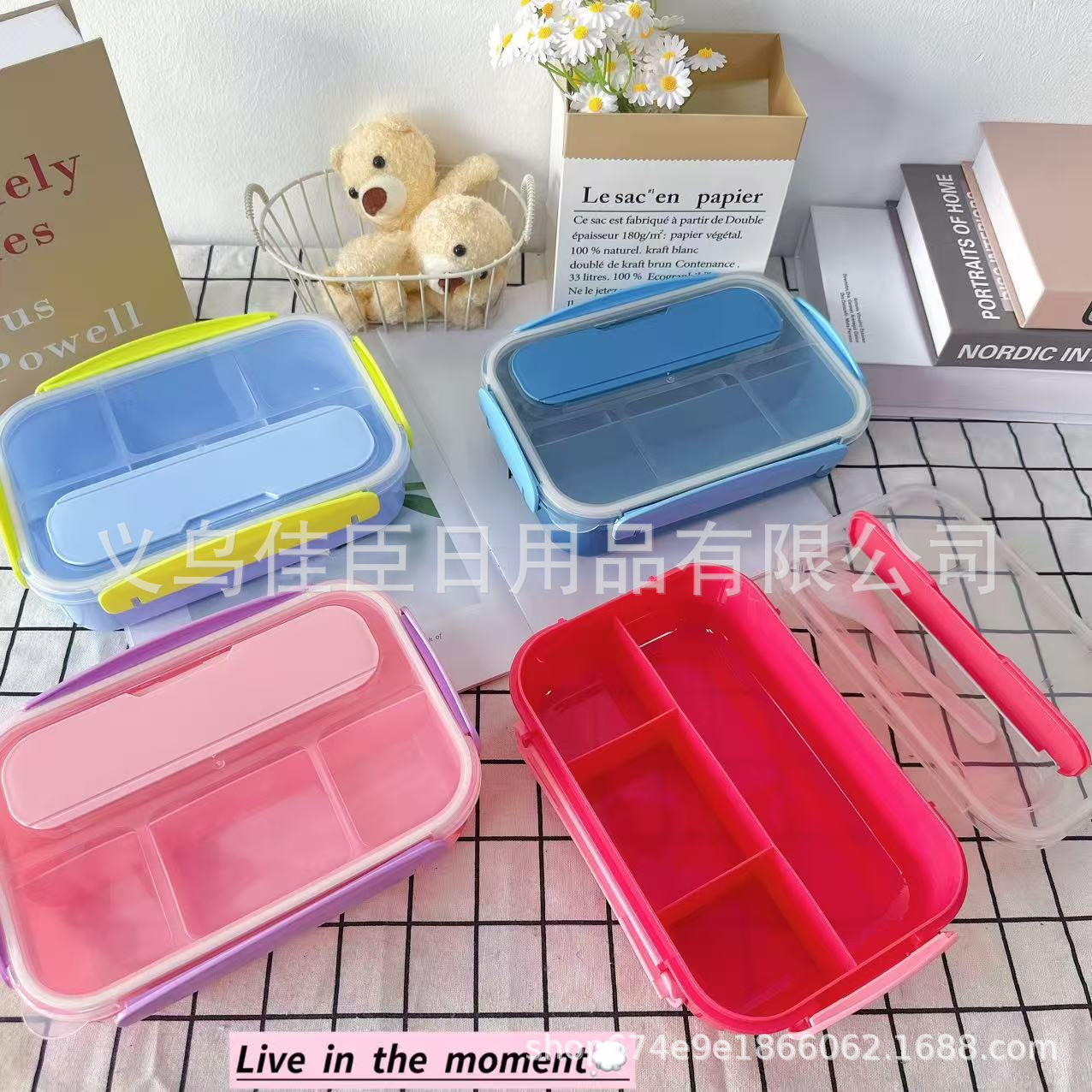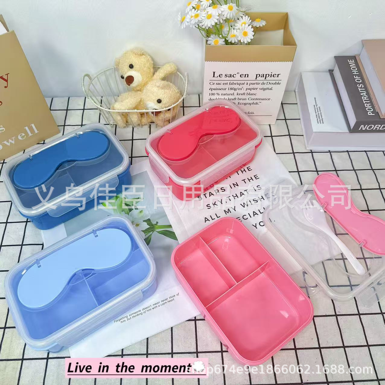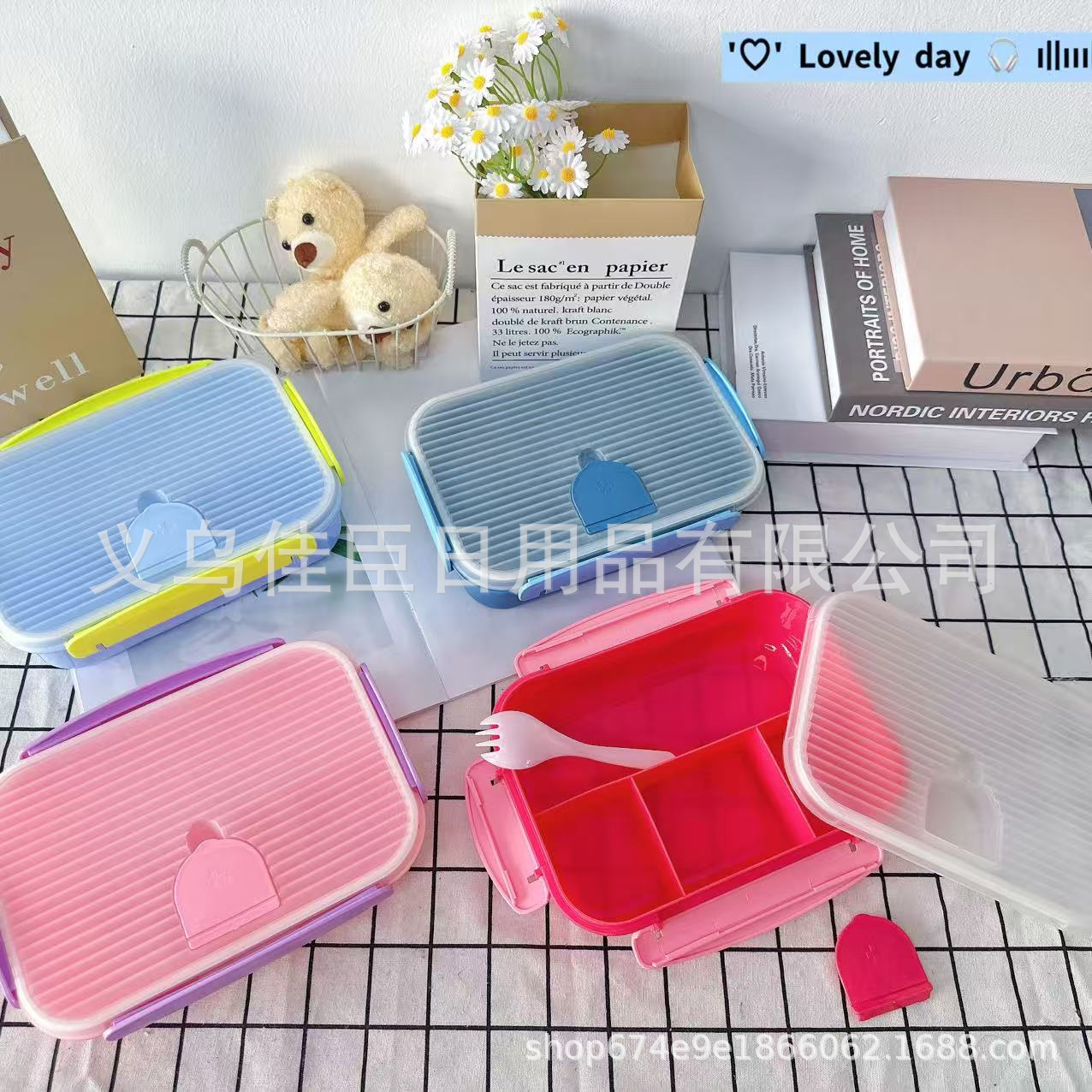 带盖饭盒纯色无图案分格式双层可微波小学生上班族带饭便当盒保鲜