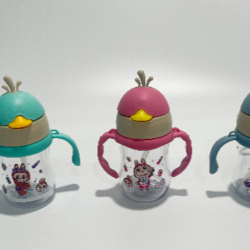 带柄弹盖儿童水壶卡通鸭子猫头鹰火苗盖儿童吸管杯批发RS-201326