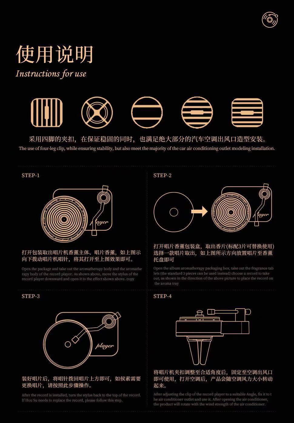 车载唱片机香薰汽车出风口香薰爆款汽车用品香膏固体车香摆件现货