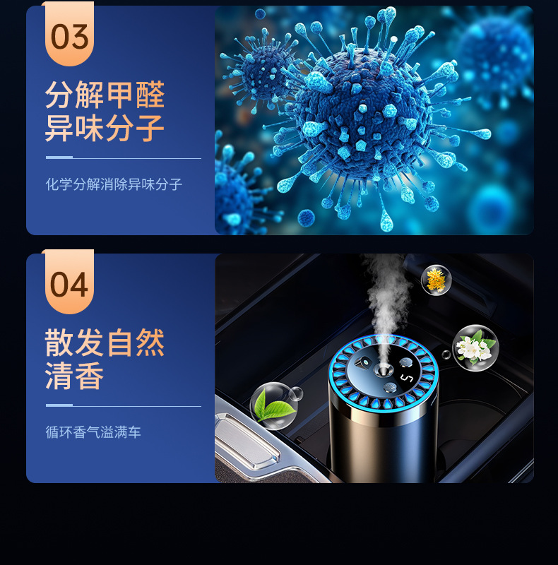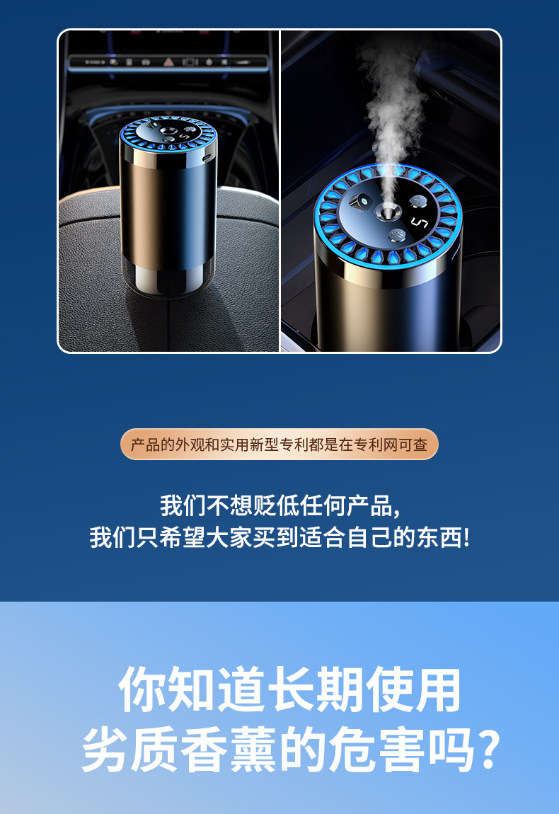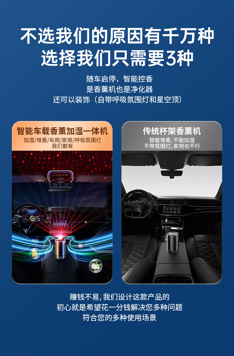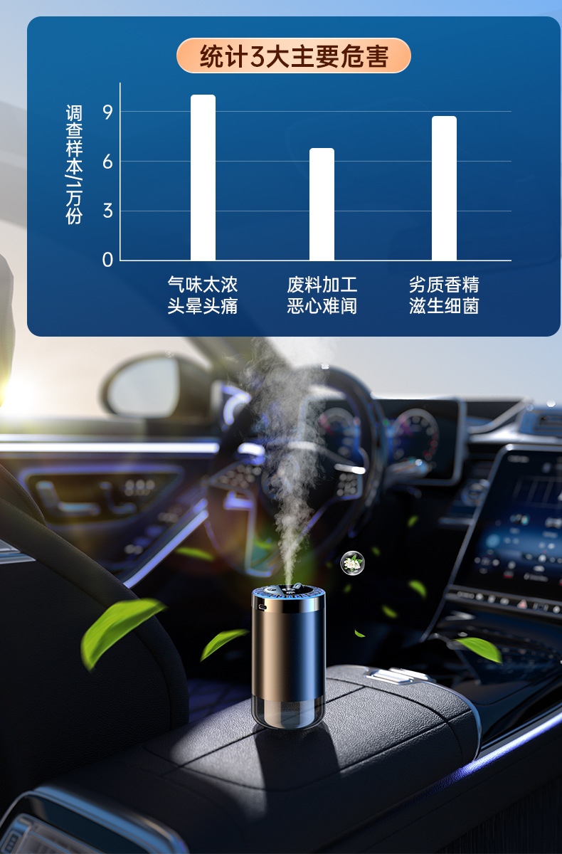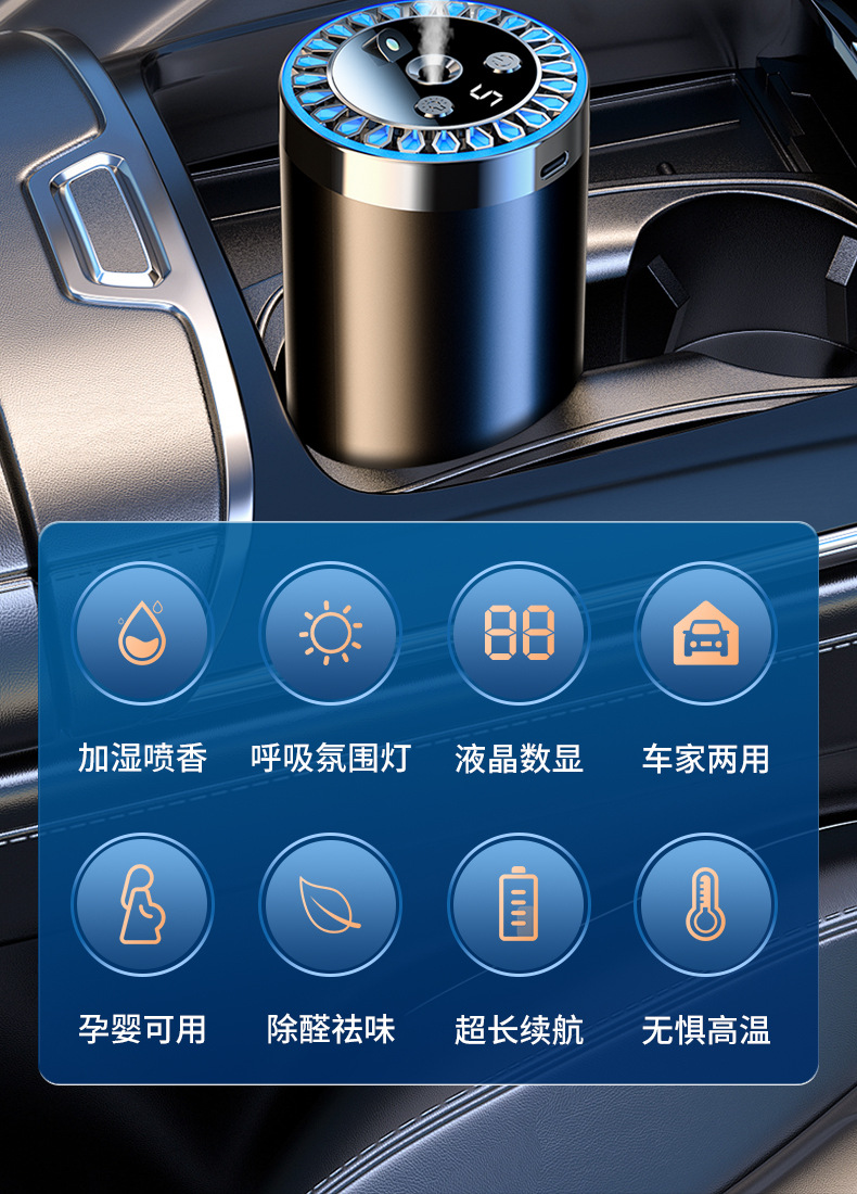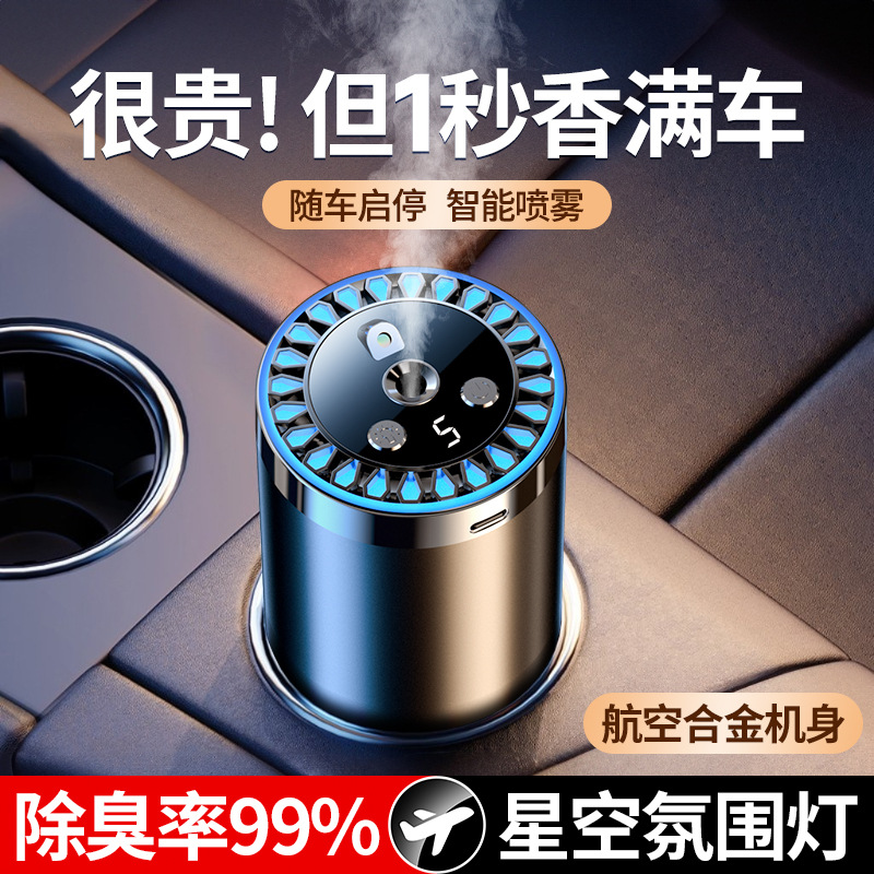 智能车载香薰器加湿器高档摆件浪漫星空顶车载香水氛围灯香薰代发