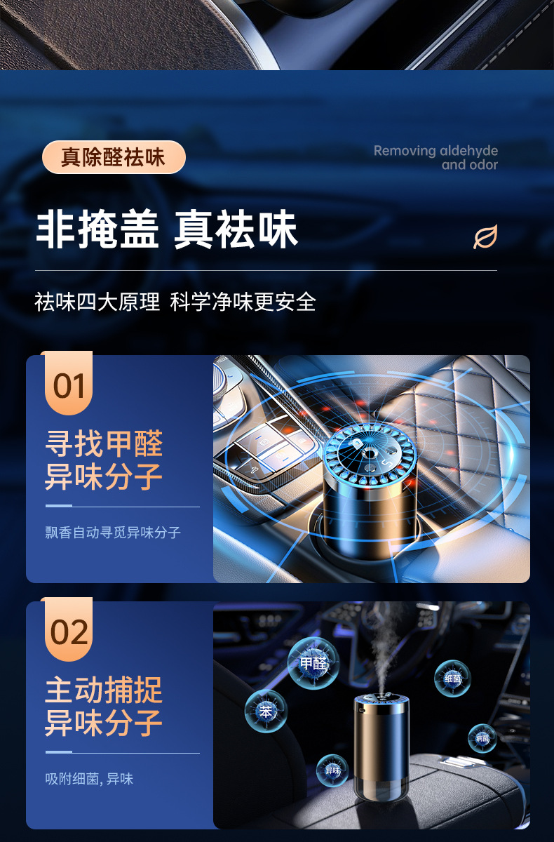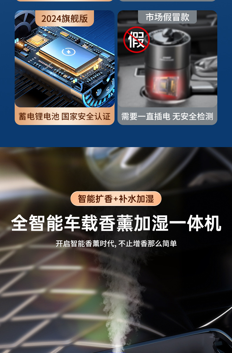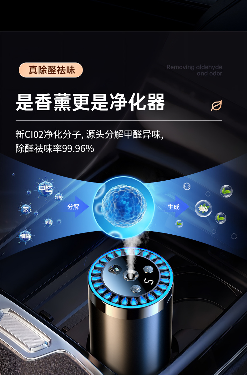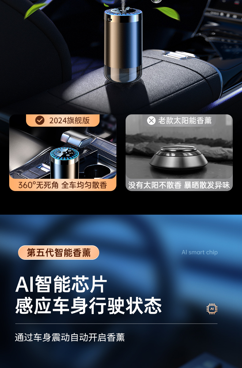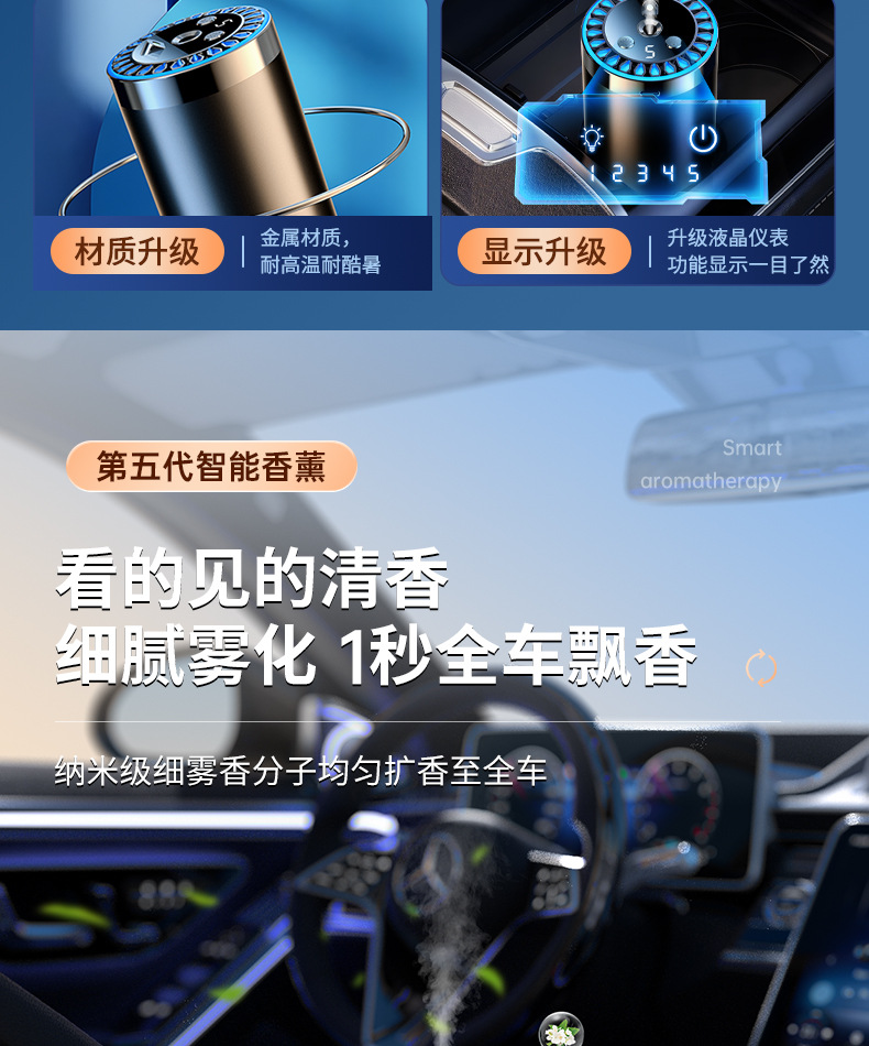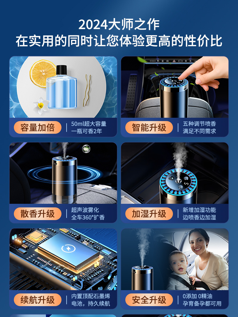 智能车载香薰器加湿器高档摆件浪漫星空顶车载香水氛围灯香薰代发