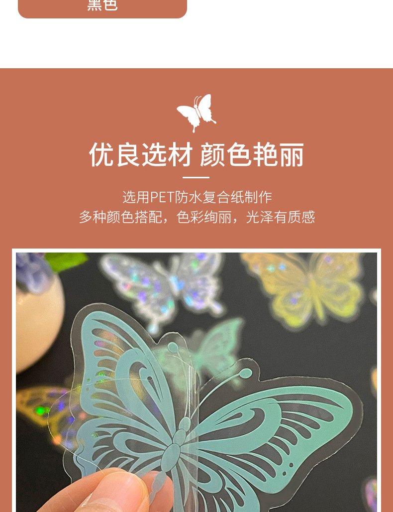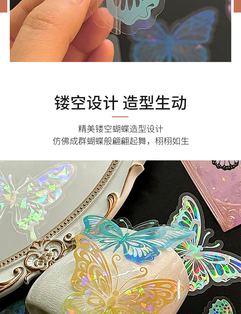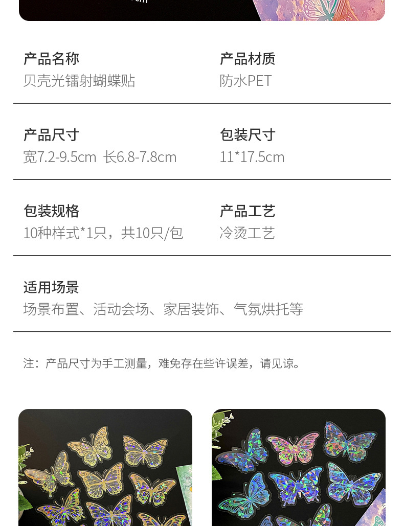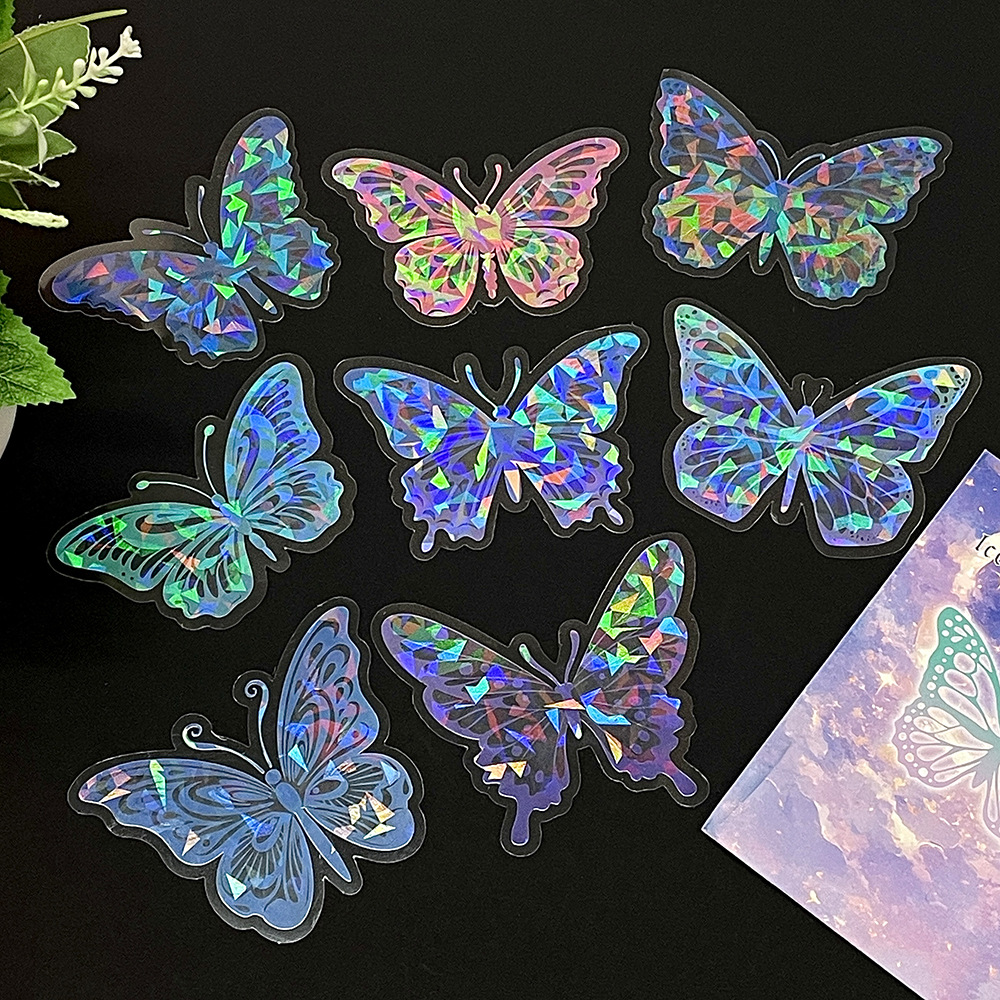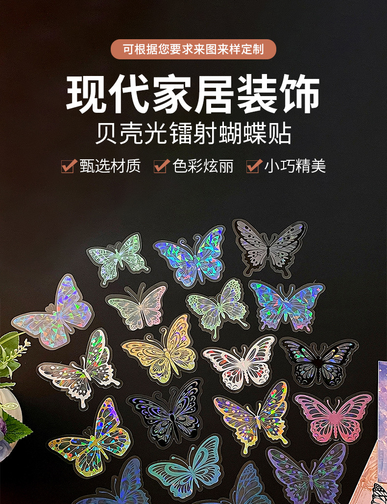 热销贝壳光蝴蝶墙贴自粘卧室客厅装饰创意贴纸炫彩镭射氛围墙纸