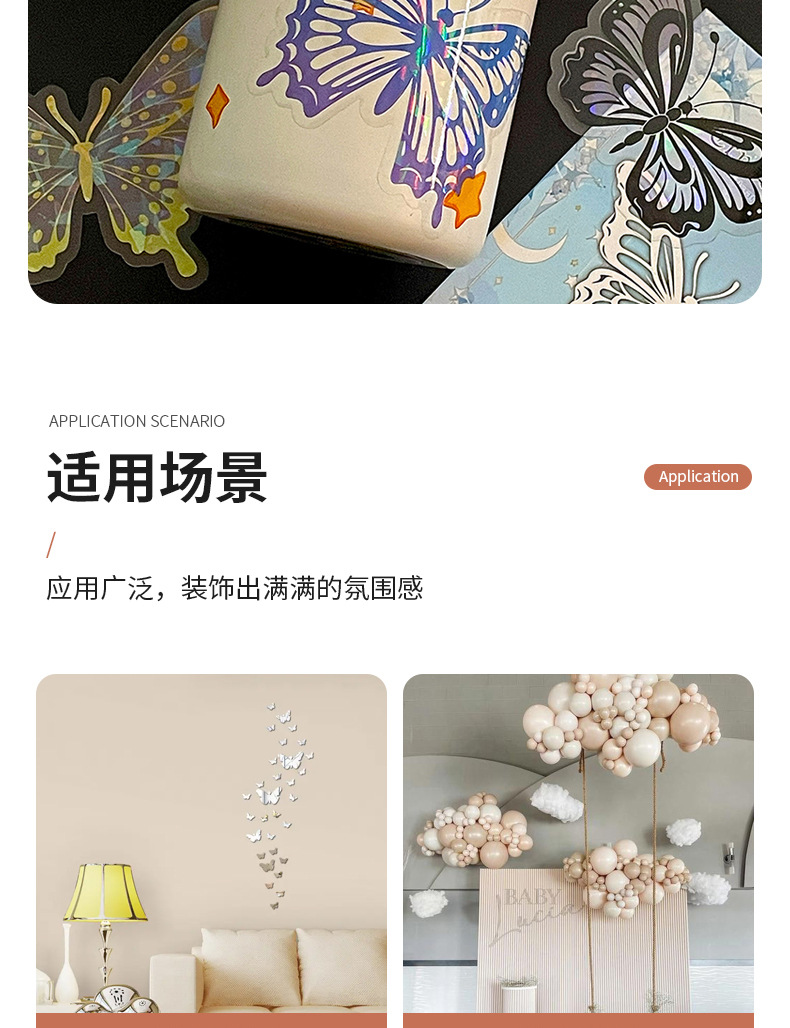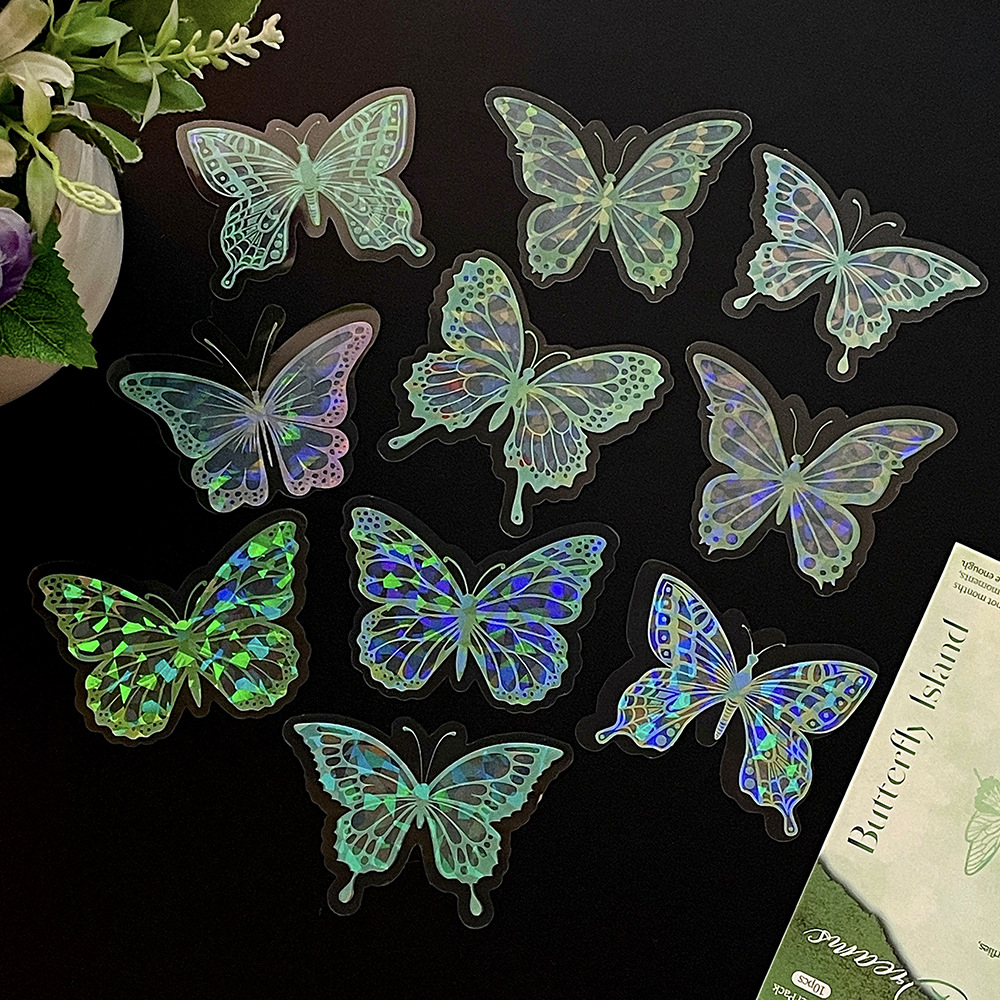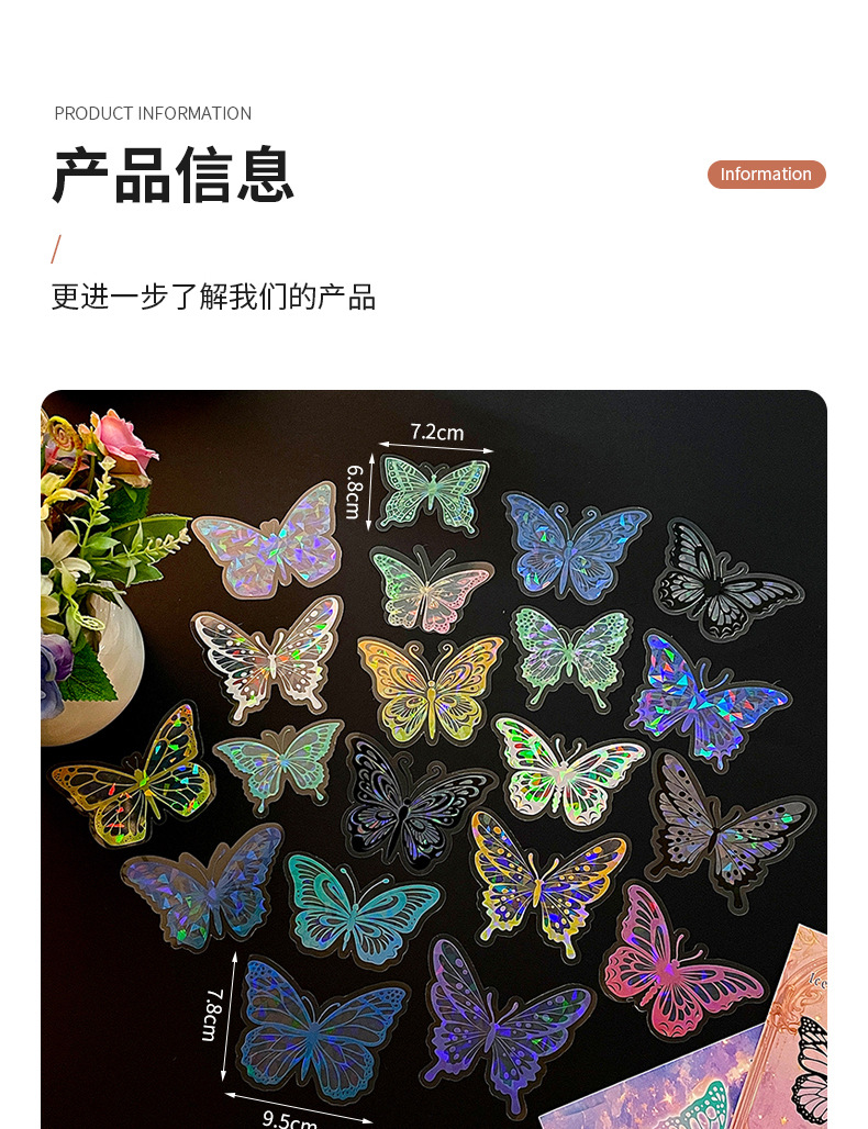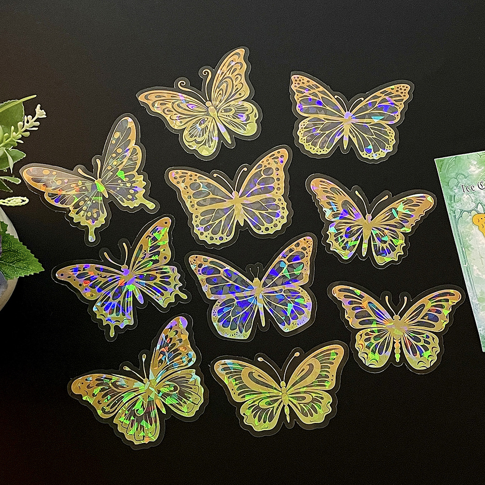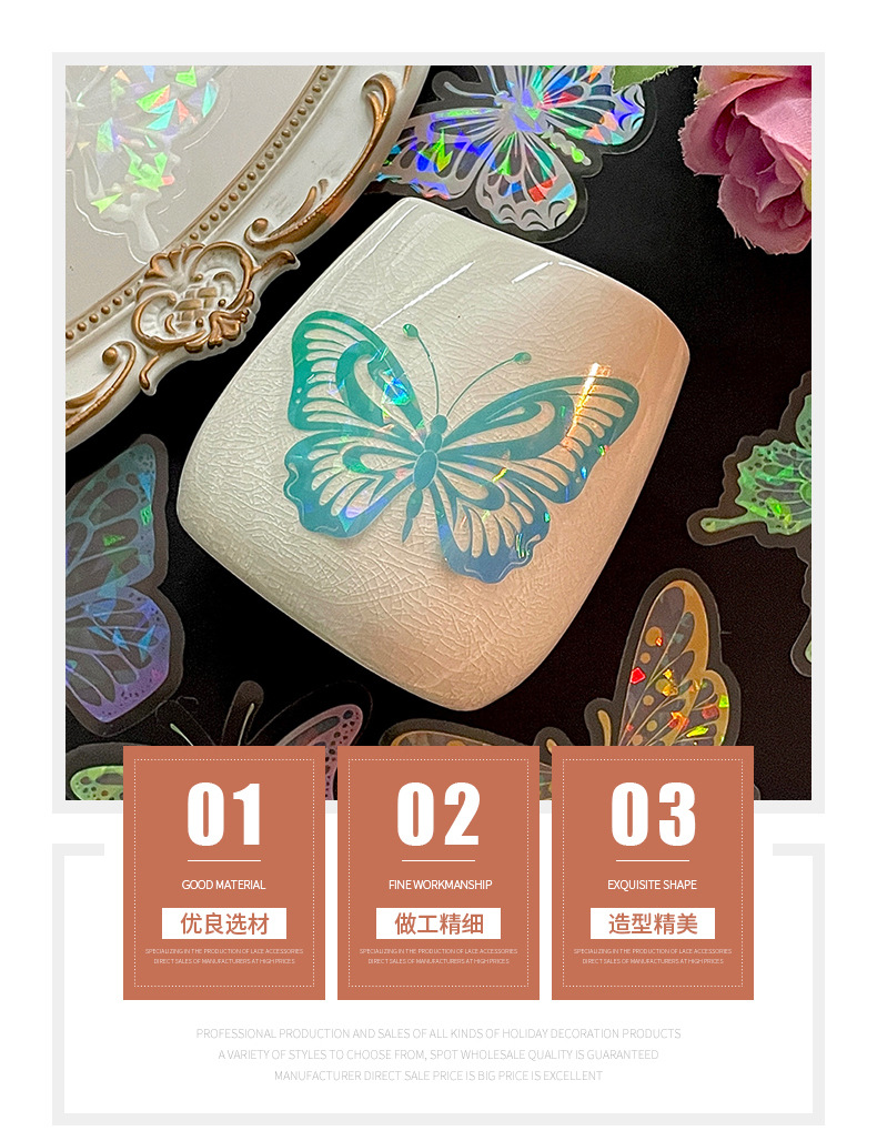 热销贝壳光蝴蝶墙贴自粘卧室客厅装饰创意贴纸炫彩镭射氛围墙纸