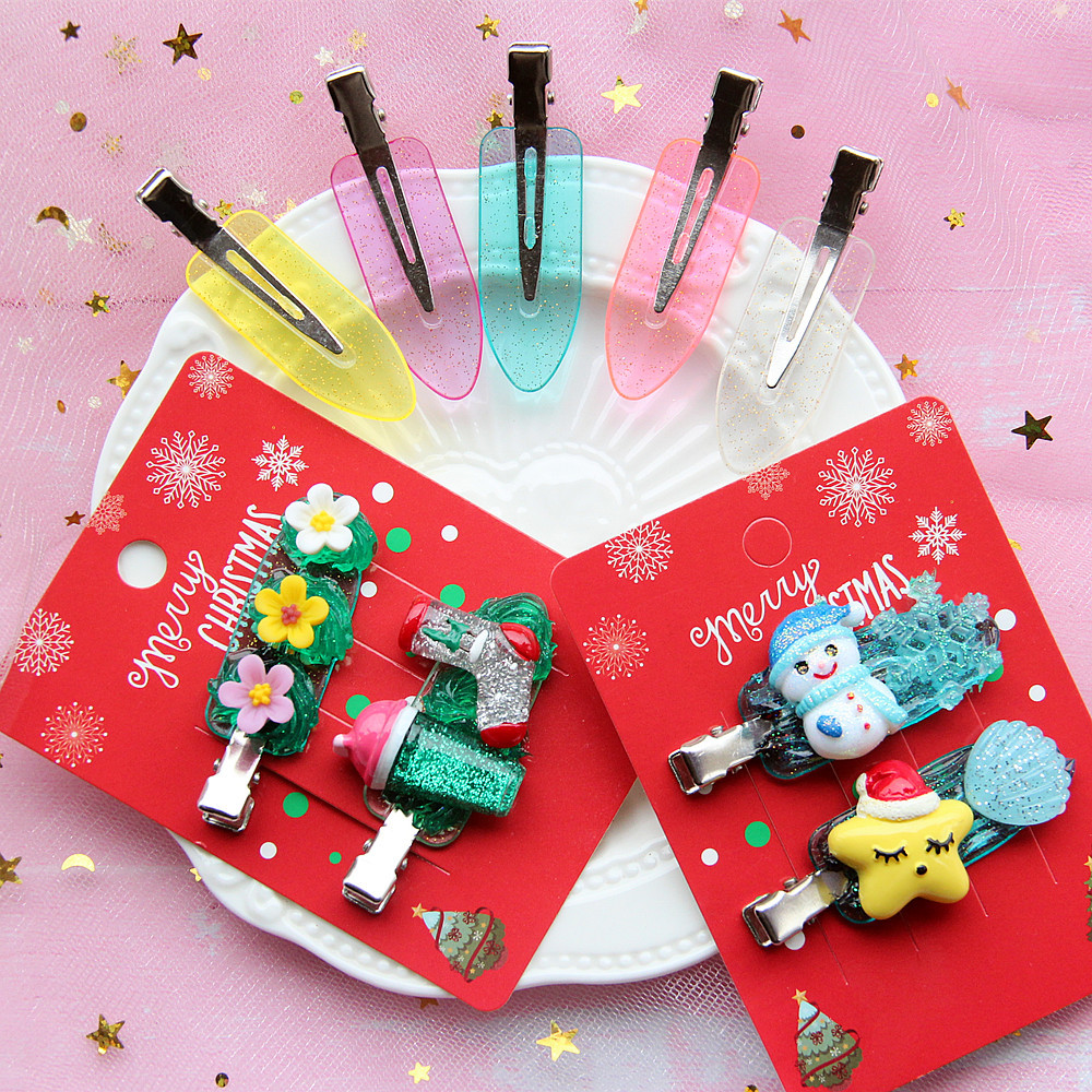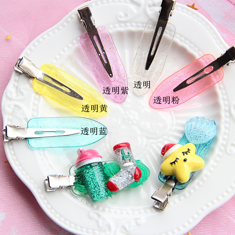 无痕发夹批发 DIY奶油胶发夹材料闪粉透明糖果色发夹素材饰品配件