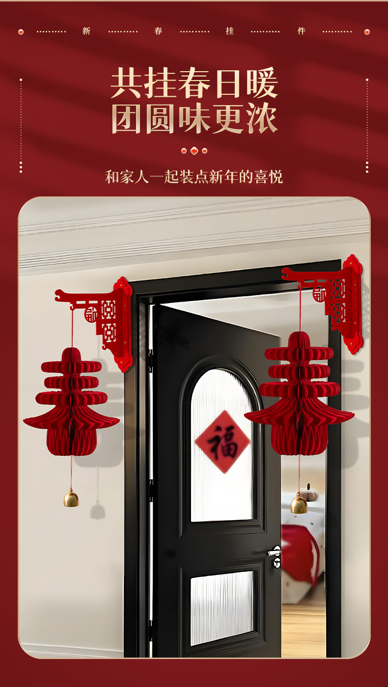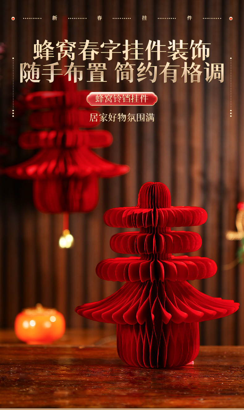 2026新款马年装饰用品新年蜂窝灯笼挂饰过年客厅场景布置春节挂件