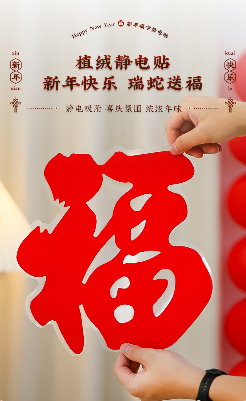 马年窗花2026年新年剪纸植绒静电贴春节过年福字玻璃门贴新年装饰