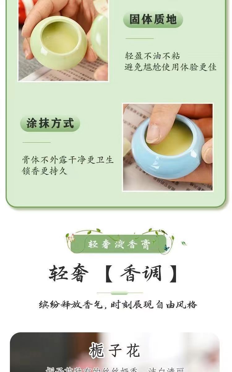 古法香膏家用花香栀子花淡香持久留香便携陶瓷固态香水固体香薰