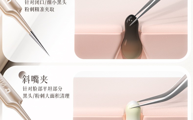 妮丽雅超细细胞夹去黑头夹镊子美容院专用刮闭口粉刺痘痘工具