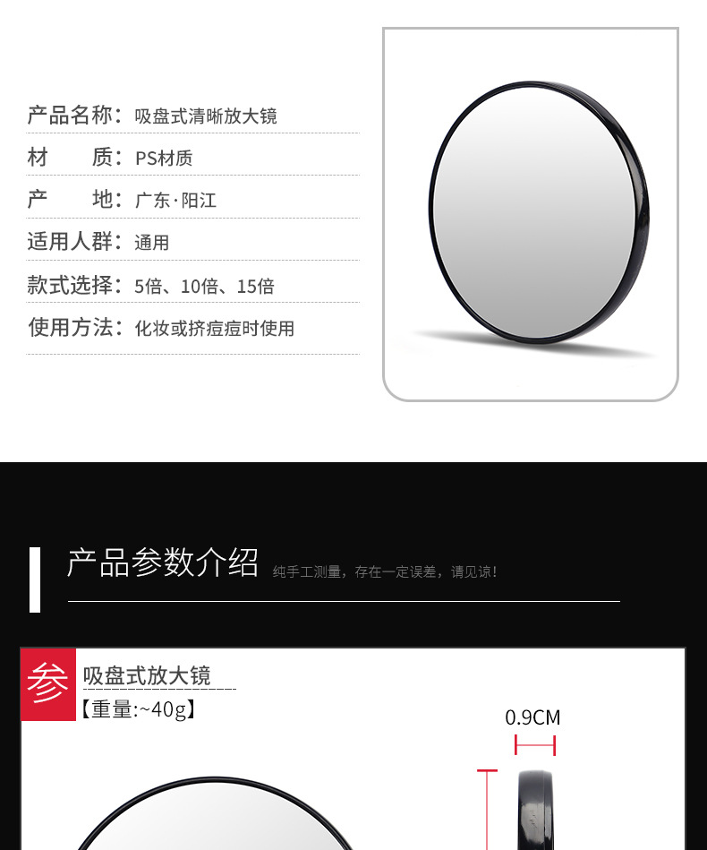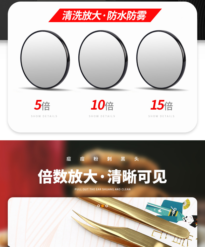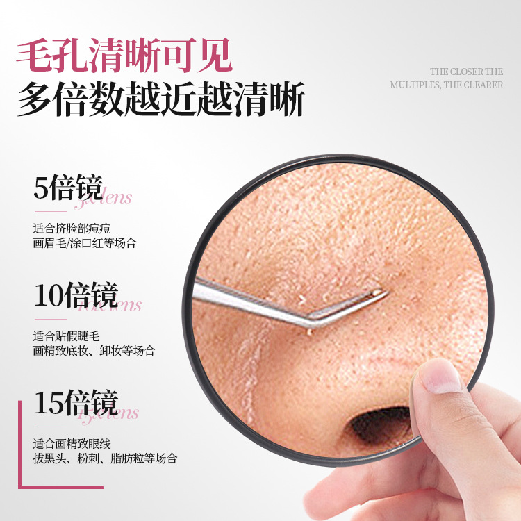 5倍10倍15倍吸盘放大化妆镜 挤痘痘黑头辅助美妆工具高清细节镜子