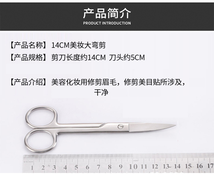 双眼皮贴美目贴剪刀化妆师用大号14cm大弯剪刀美容修眉剪美妆剪