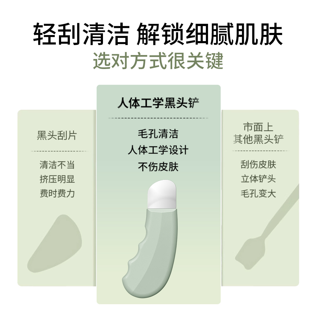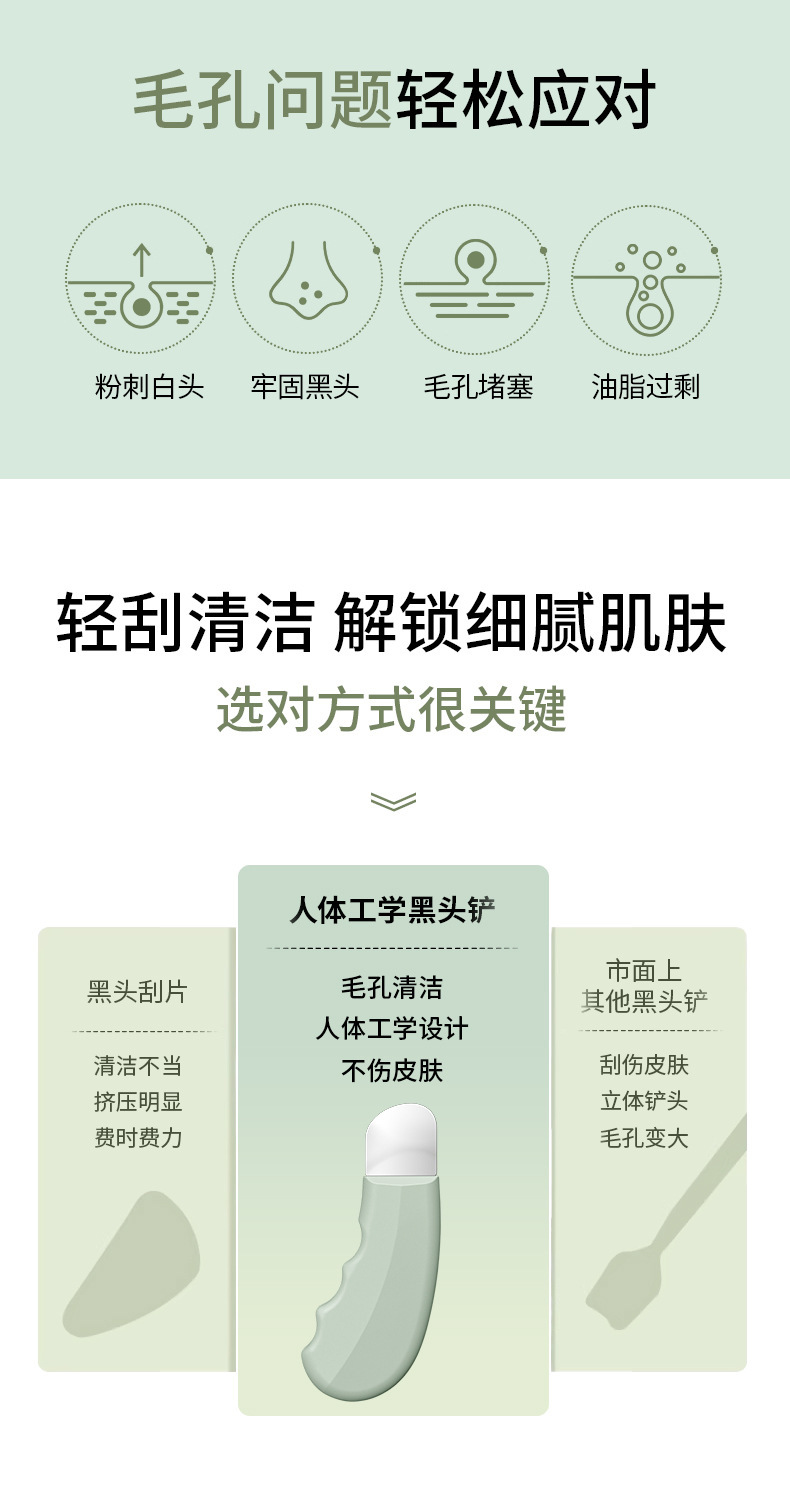 爆款黑头铲美容清洁工具人体工学设计不伤肤不扩张毛孔去黑头工具