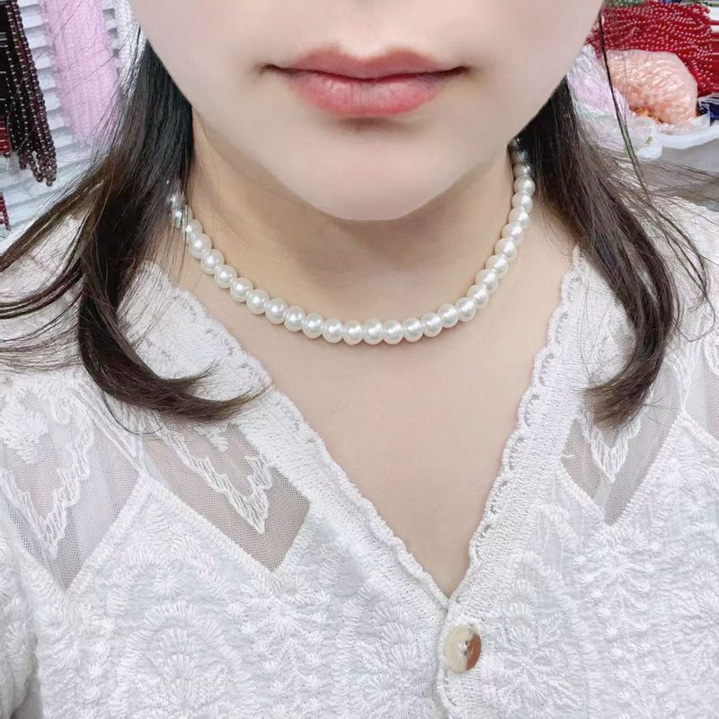 8mm玻璃仿珍珠短款项链女简约锁骨链饰品配饰淘宝2元店小礼品批发