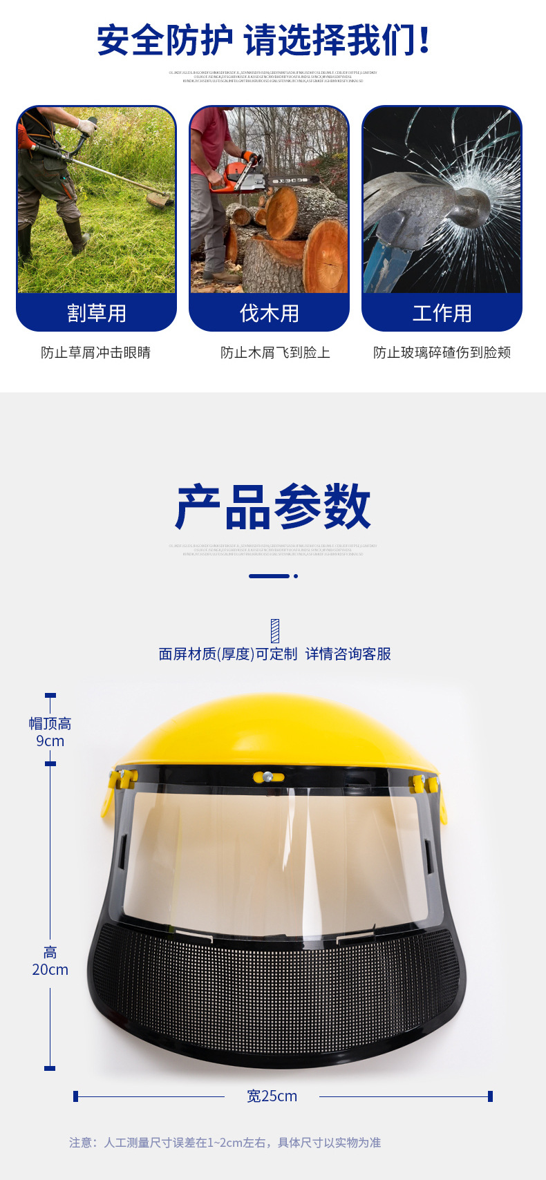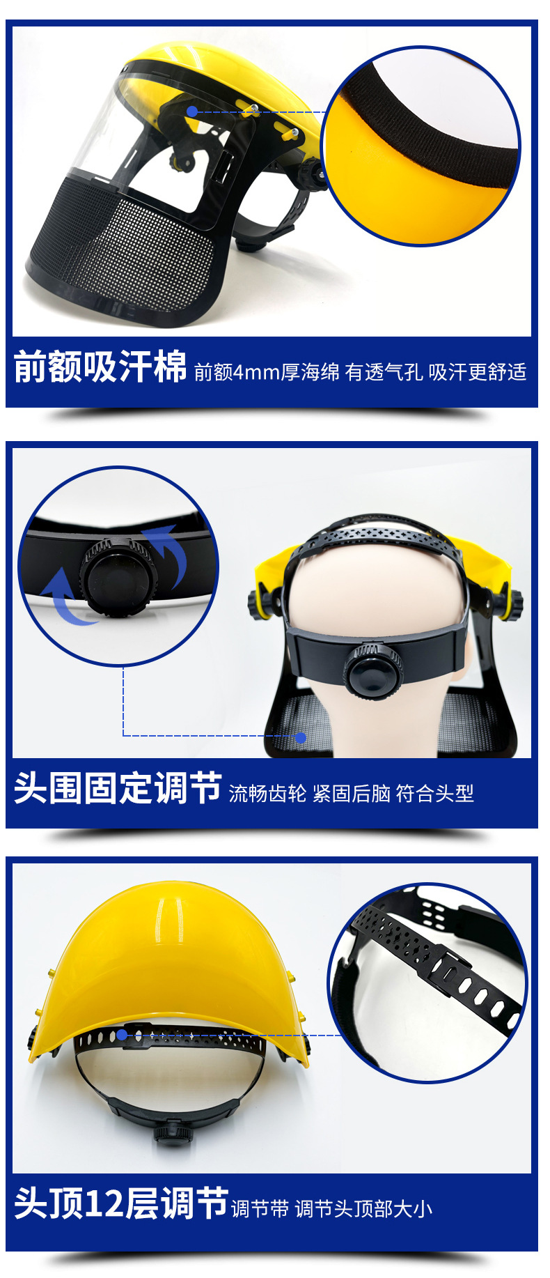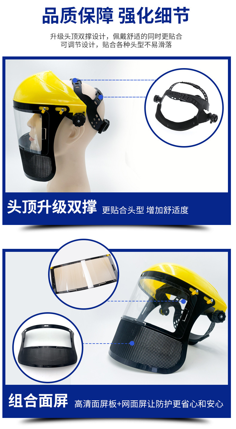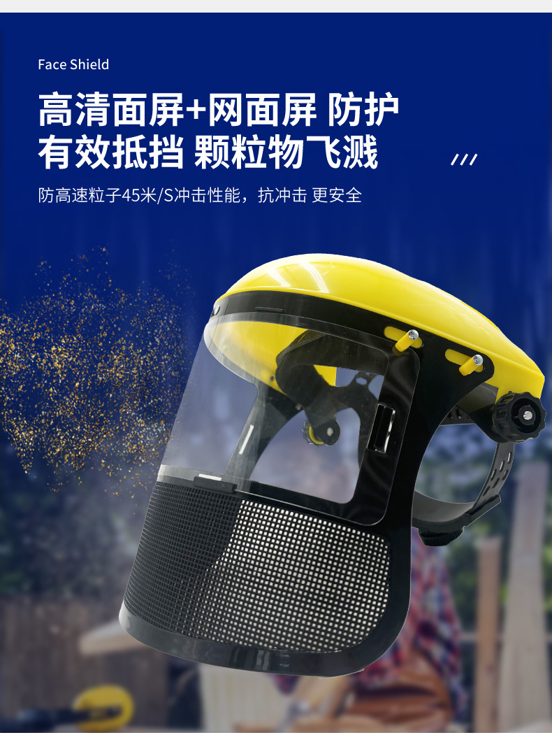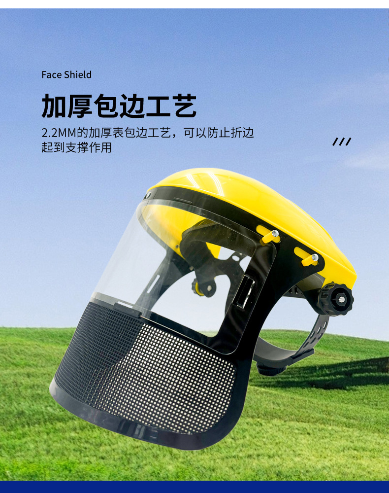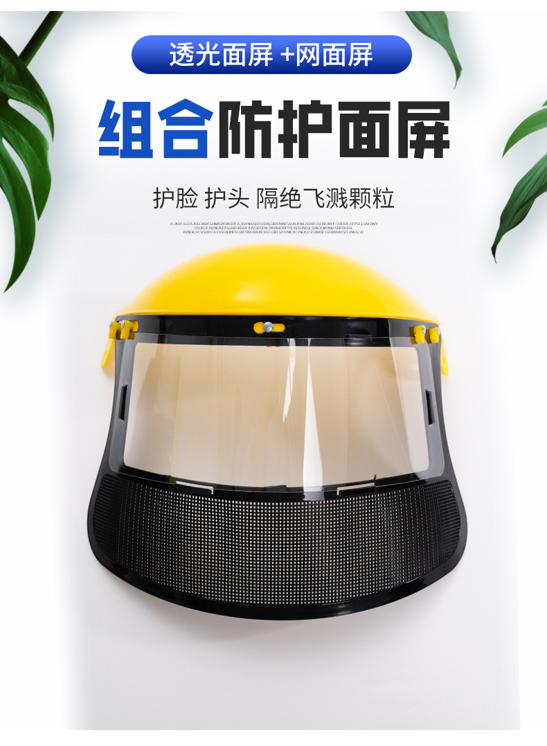 工厂头戴式割草防护面屏头戴式钢丝网面罩园林防飞溅面屏割草帽