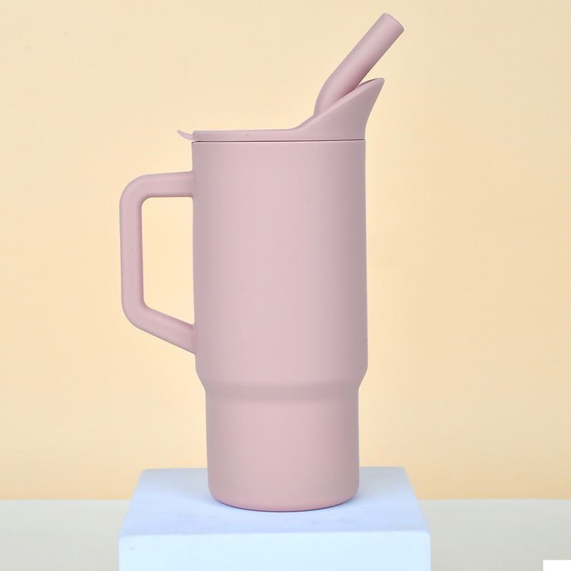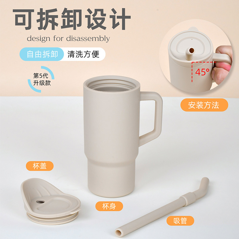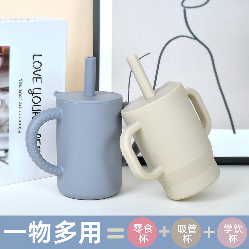 跨境婴儿学饮杯带盖吸管水杯儿童硅胶食品级宝宝耐摔有手柄喝水杯