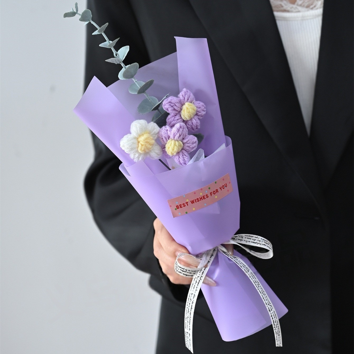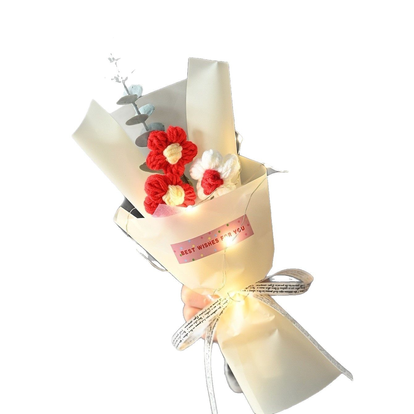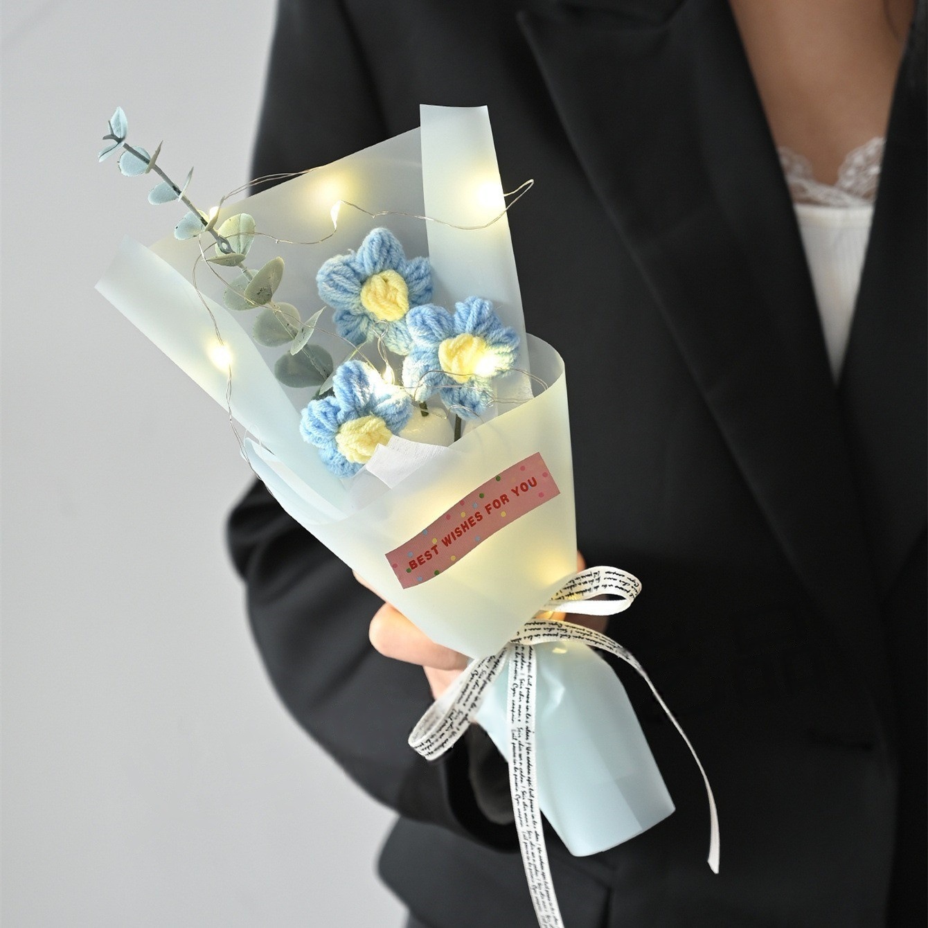 跨境国庆节迷你针织花泡芙七夕小花束毛线花束礼物女神情人节批发