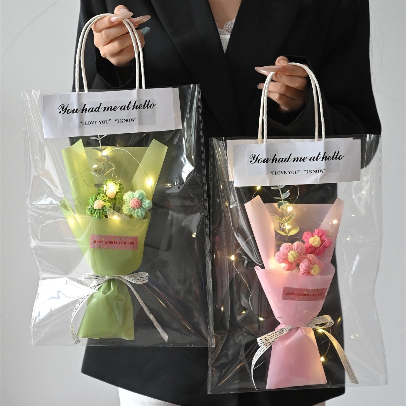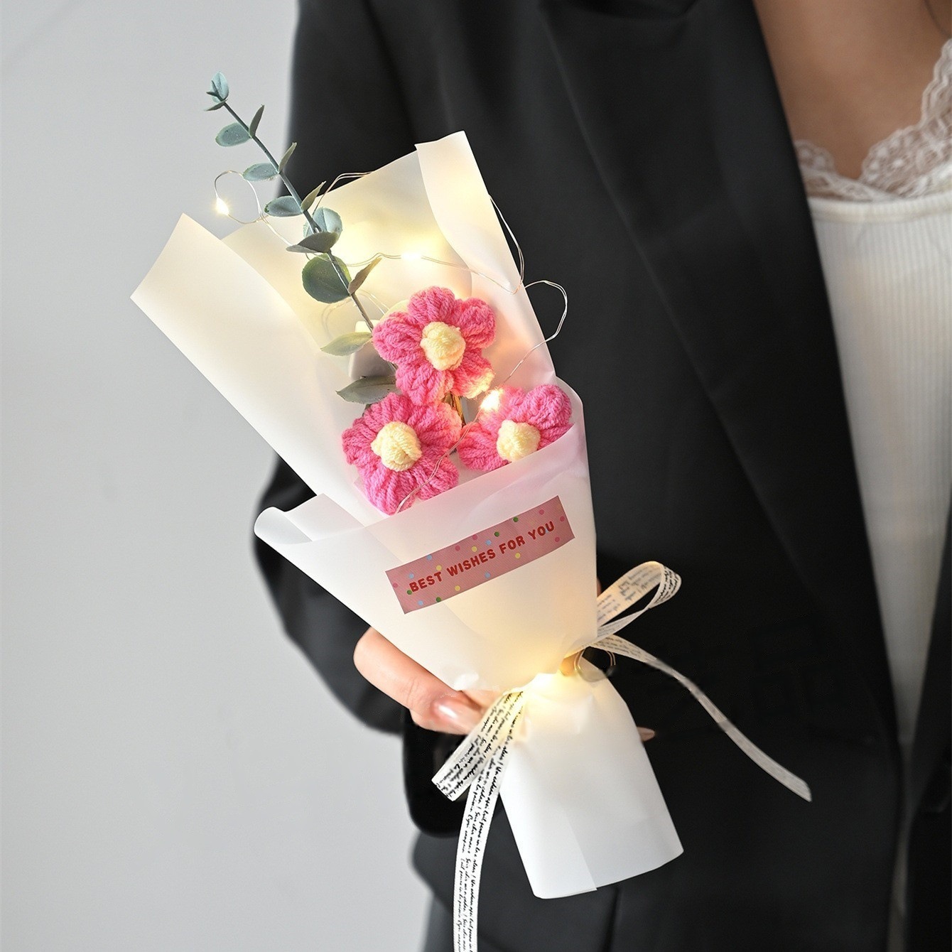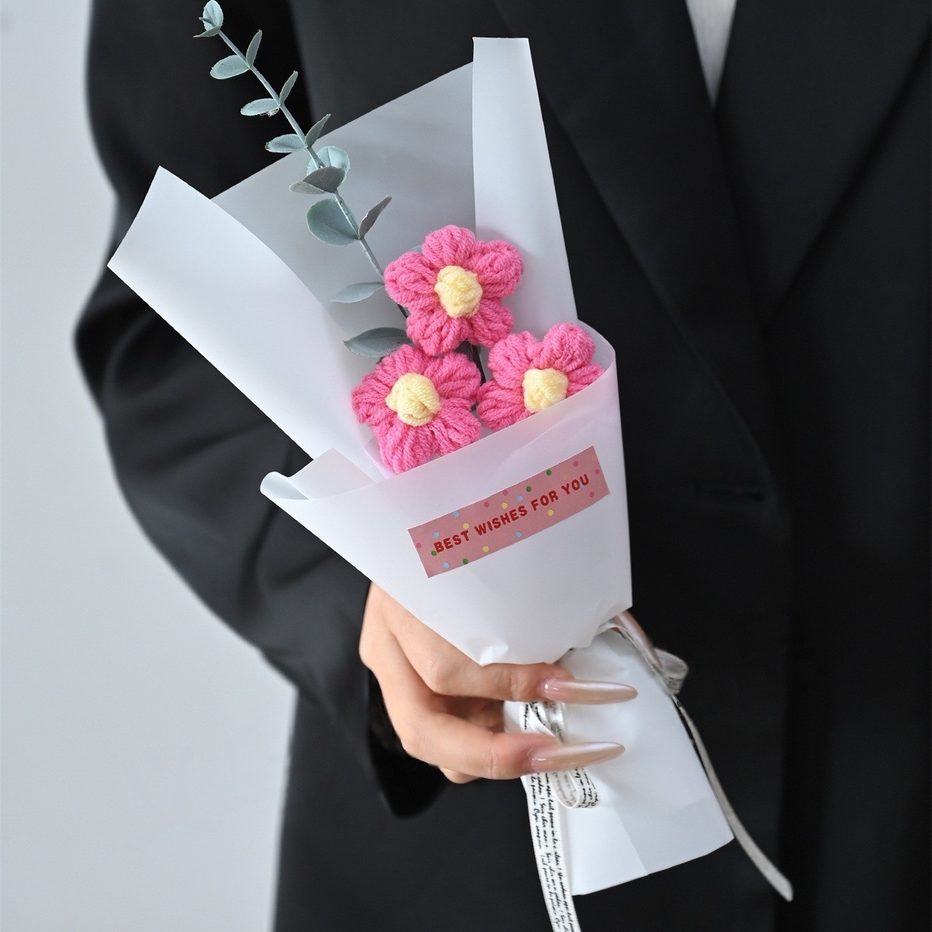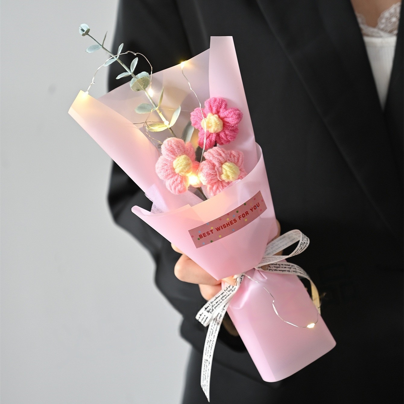 跨境国庆节迷你针织花泡芙七夕小花束毛线花束礼物女神情人节批发