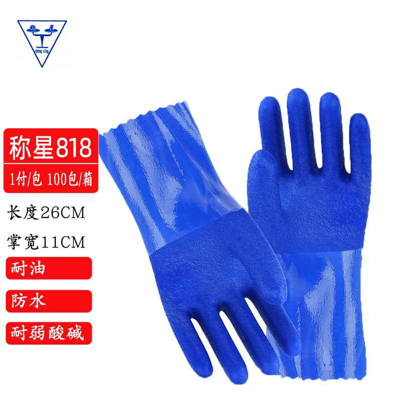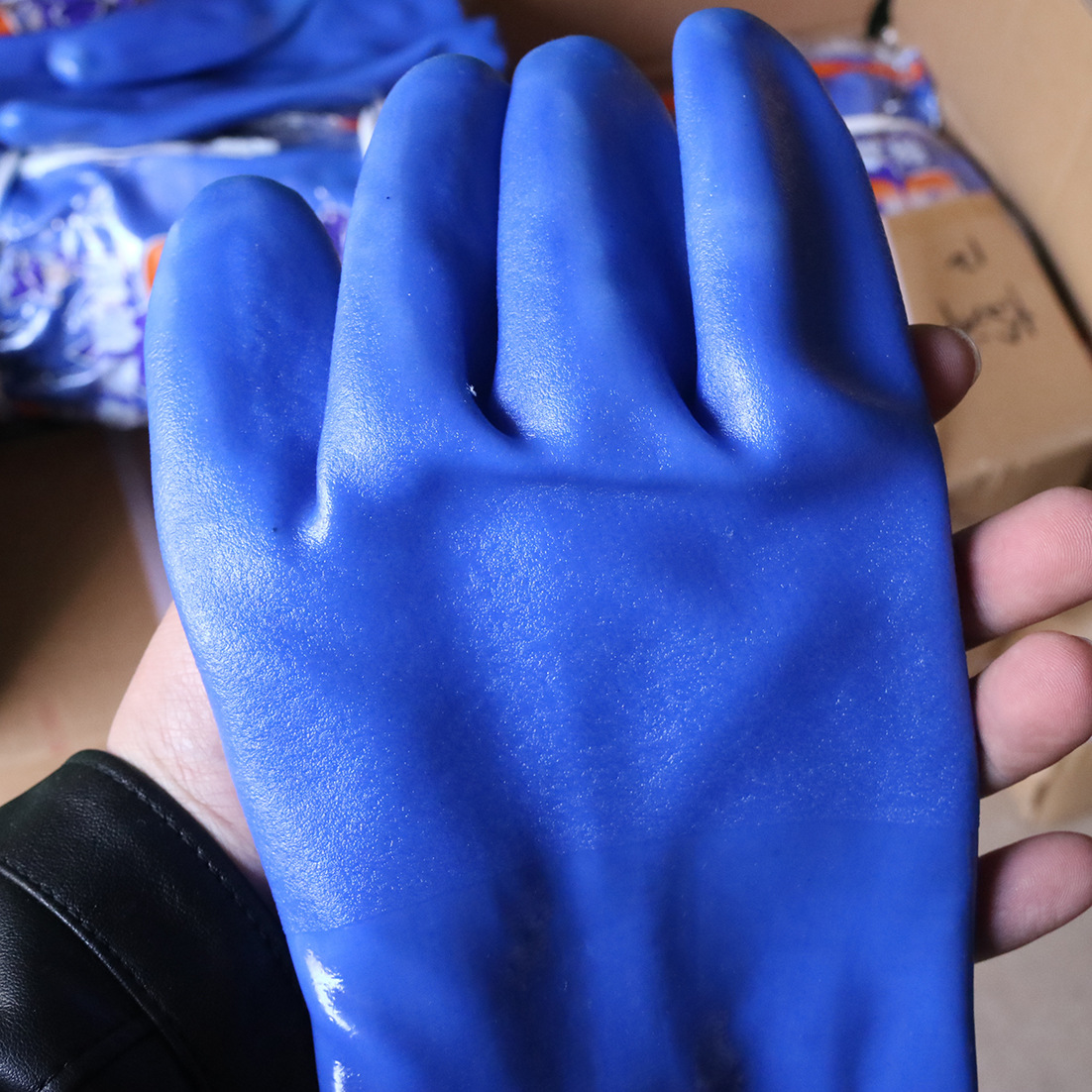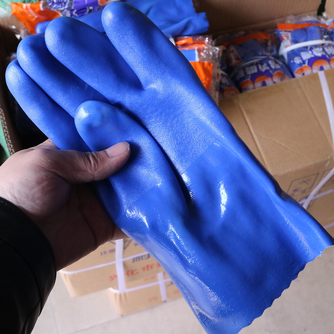 blue oil-resistant gloves industrial waterproof acid and alkali-resistant thickened plastic-coated pvc frosted fleece-lined labor protection oil-resistant gloves