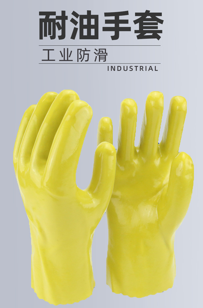 蓝耐油手套工业防水耐酸碱加厚浸塑PVC磨砂加绒劳保防护耐油手套