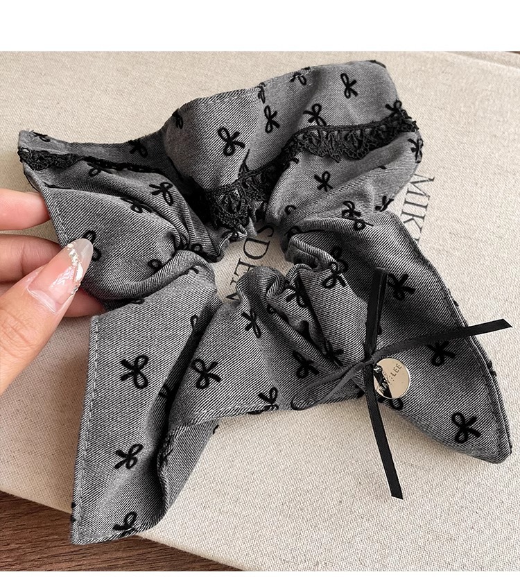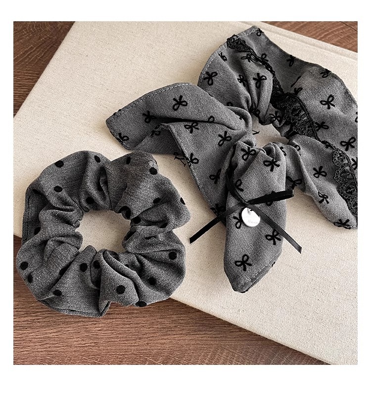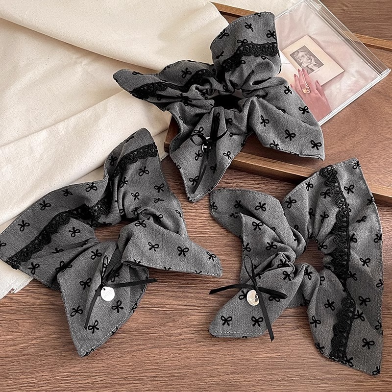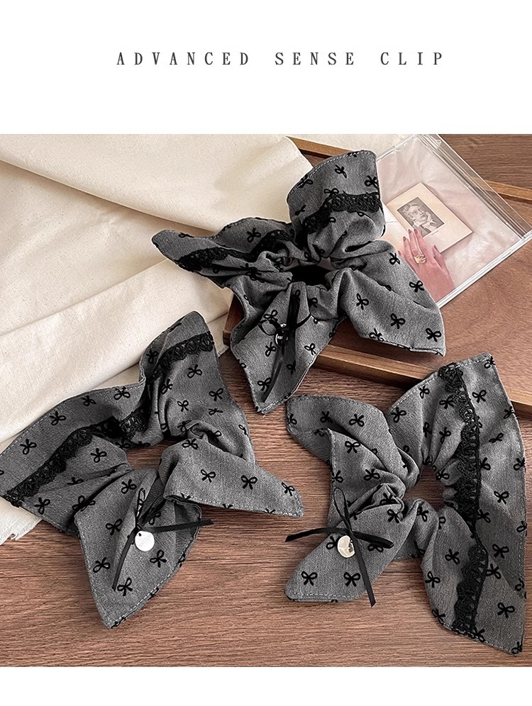 灰色格雷系蝴蝶结方形大肠发圈女头绳高级感马尾辫丸子头发绳发饰
