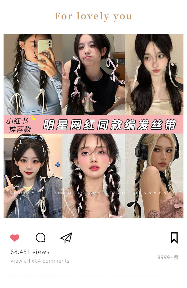 双马尾绑发丝带蝴蝶结头饰头绳编发发绳2025新款网红长条飘带发饰