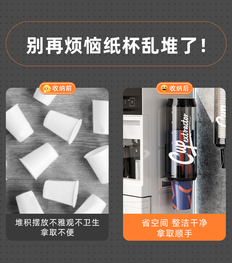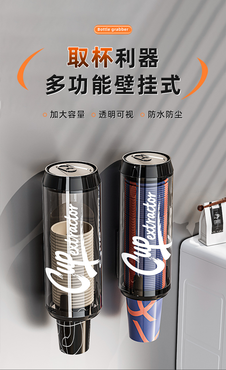 一次性杯子架自动饮水机取杯器免打孔纸杯架家用挂壁式防尘置物架