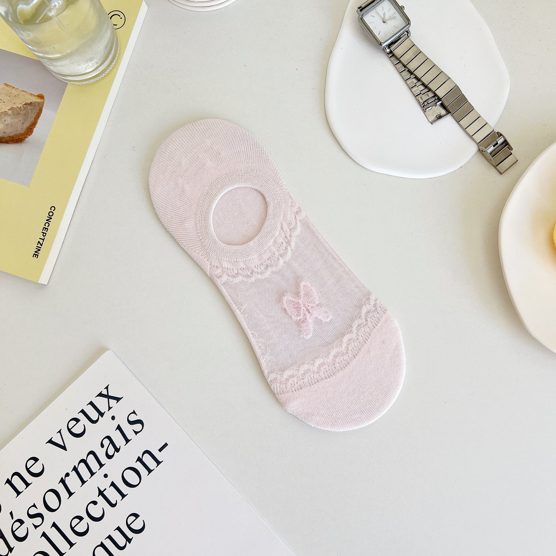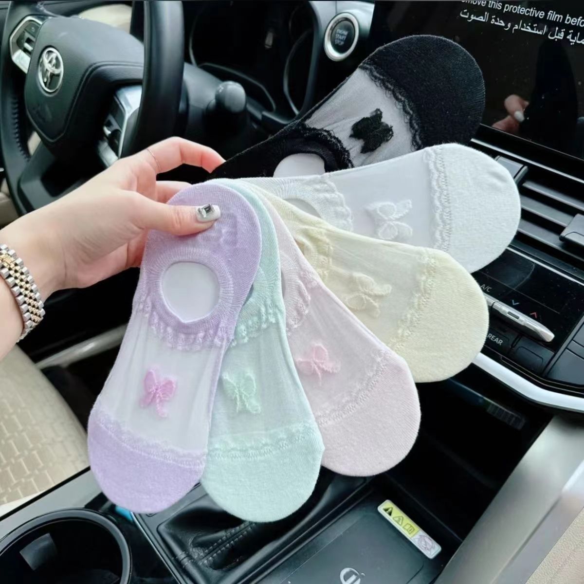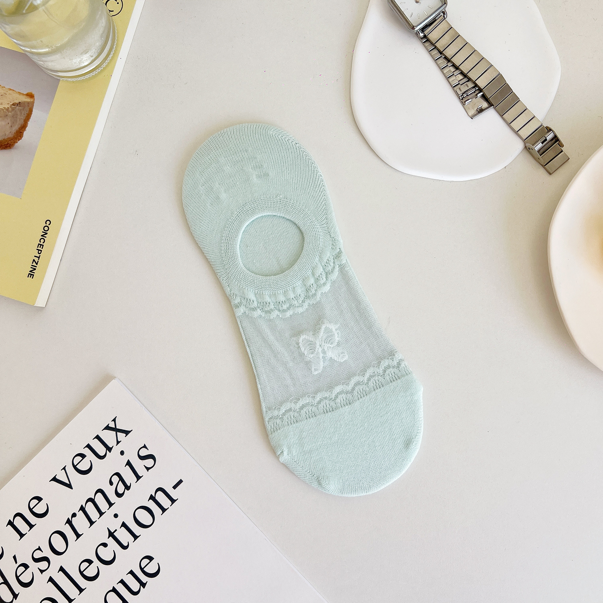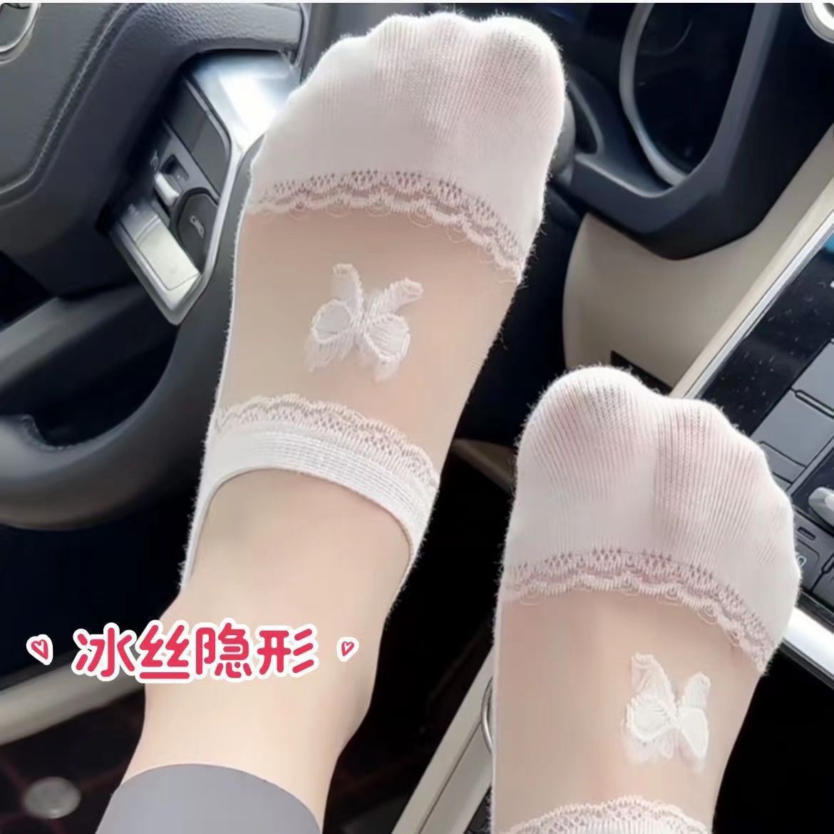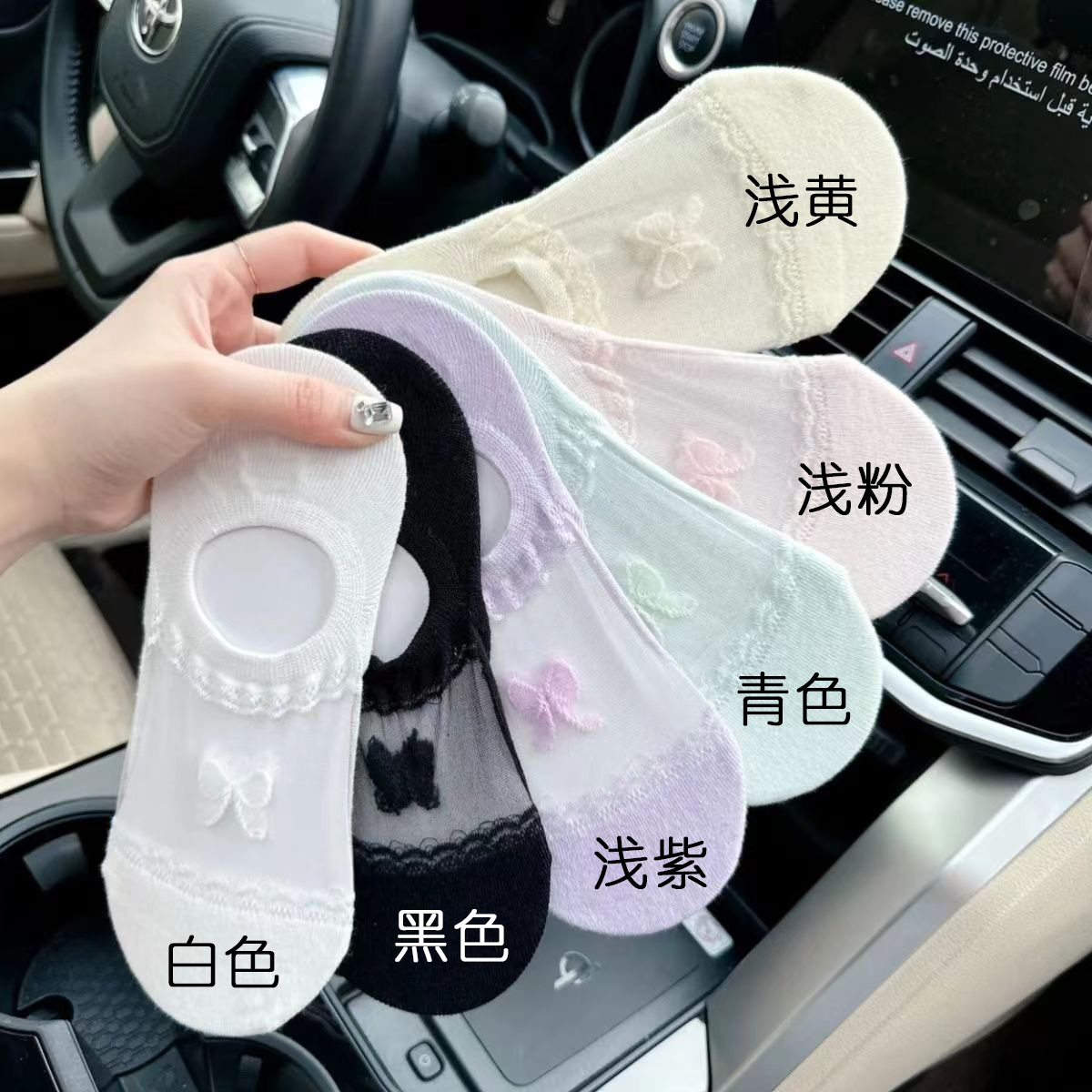 蕾丝蝴蝶结冰丝隐形袜女夏季超薄浅口透气糖果色船袜彩色袜子短女