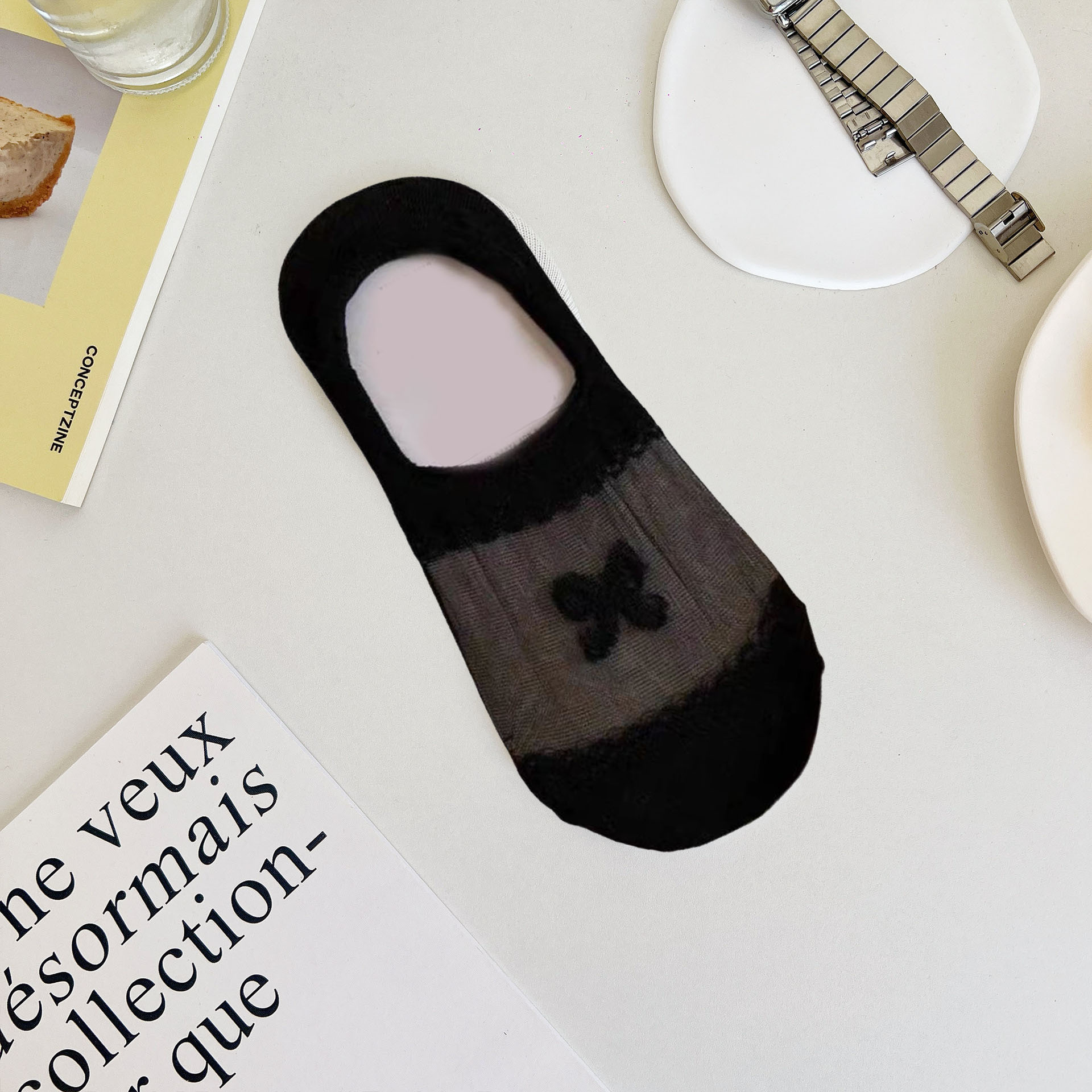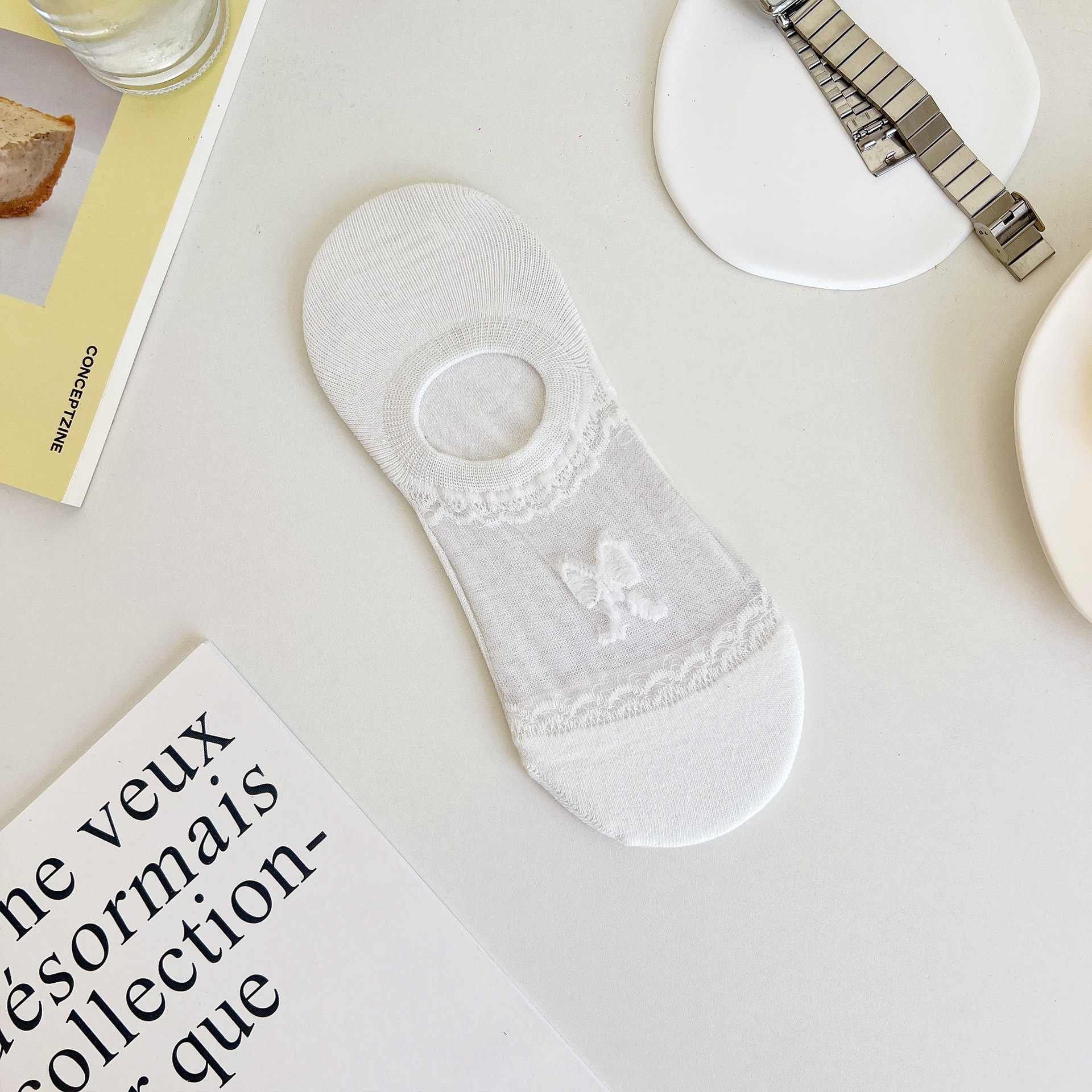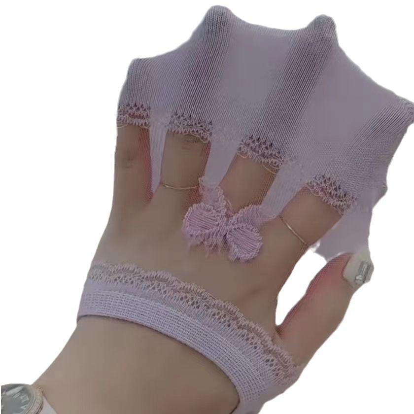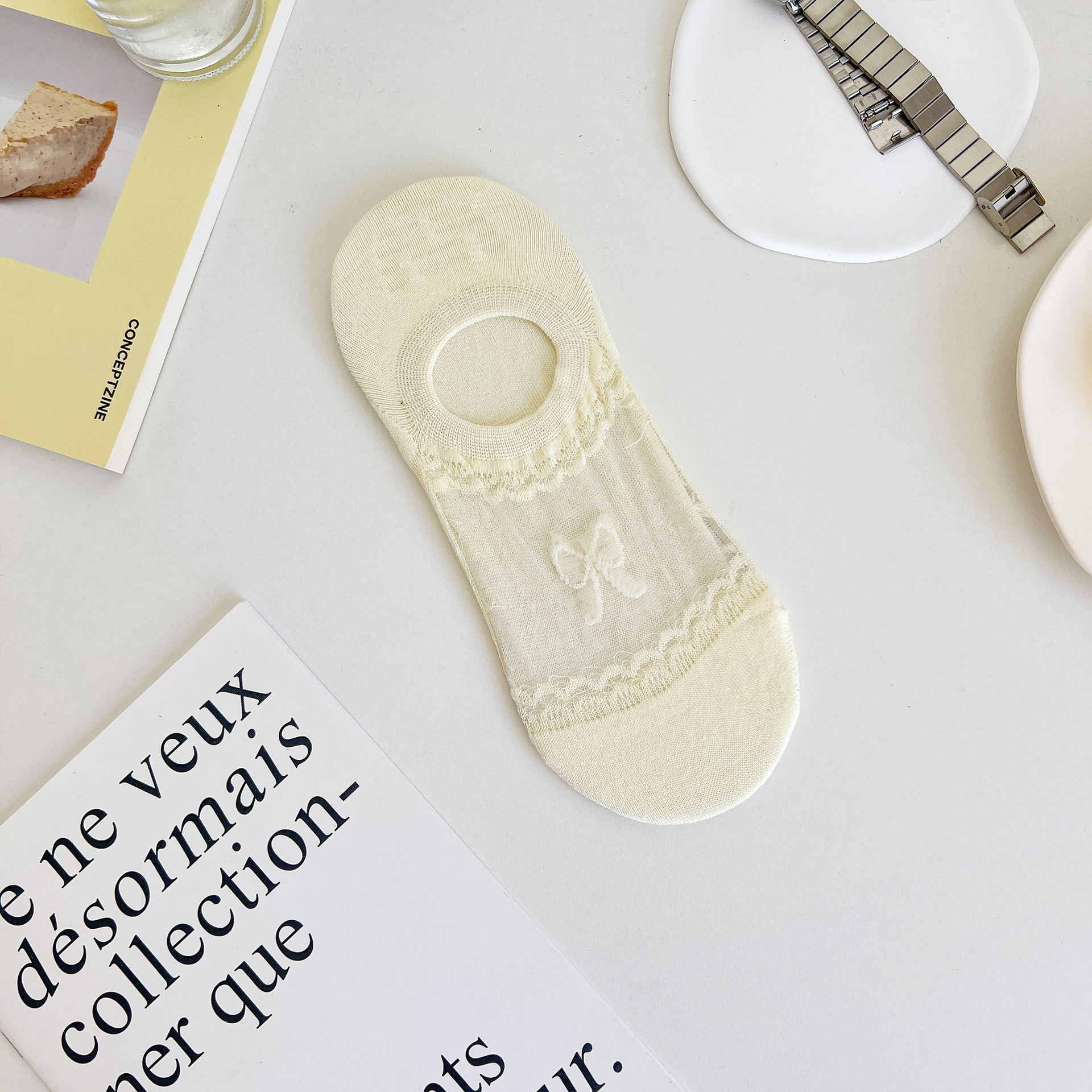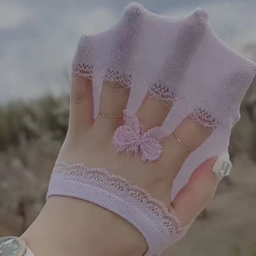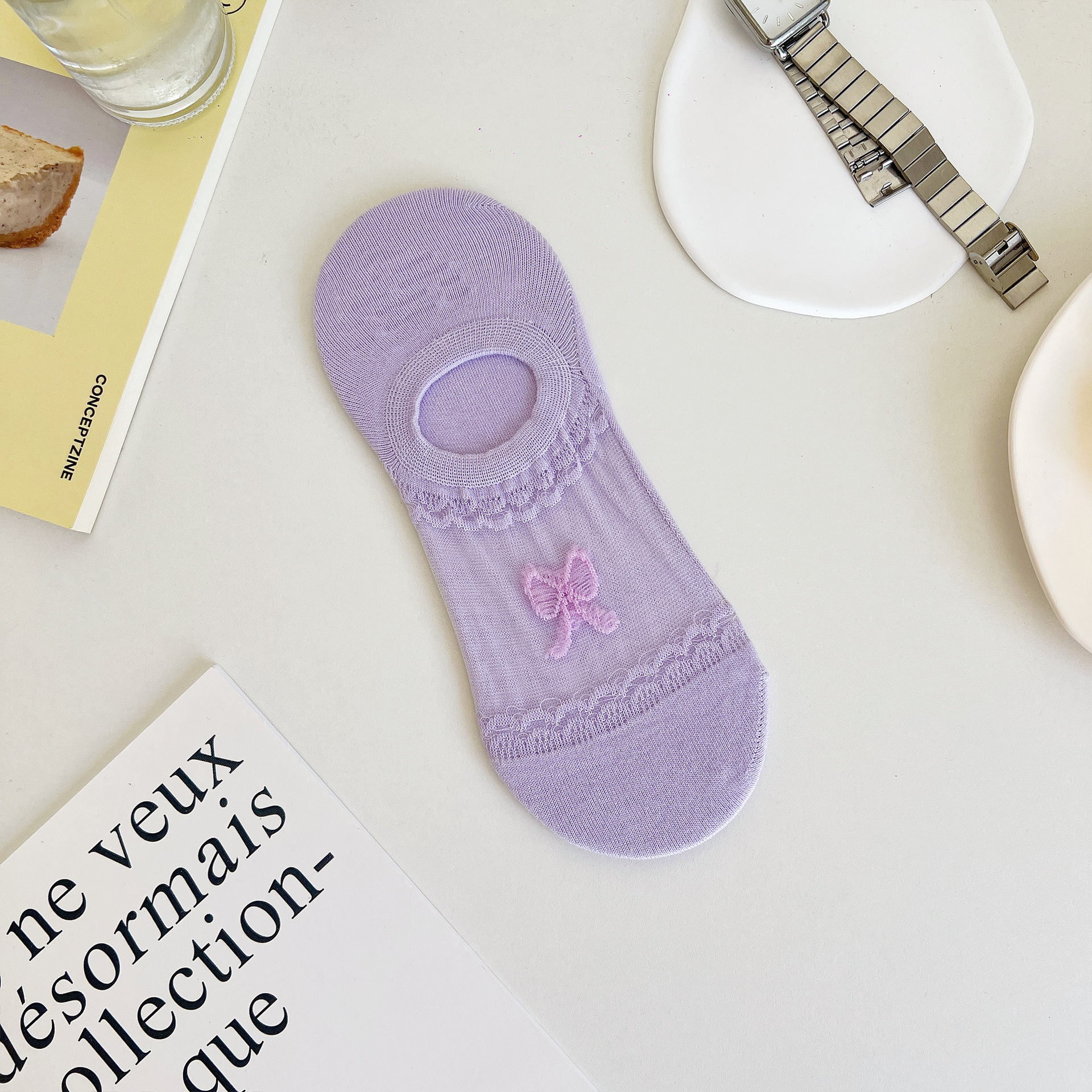 蕾丝蝴蝶结冰丝隐形袜女夏季超薄浅口透气糖果色船袜彩色袜子短女