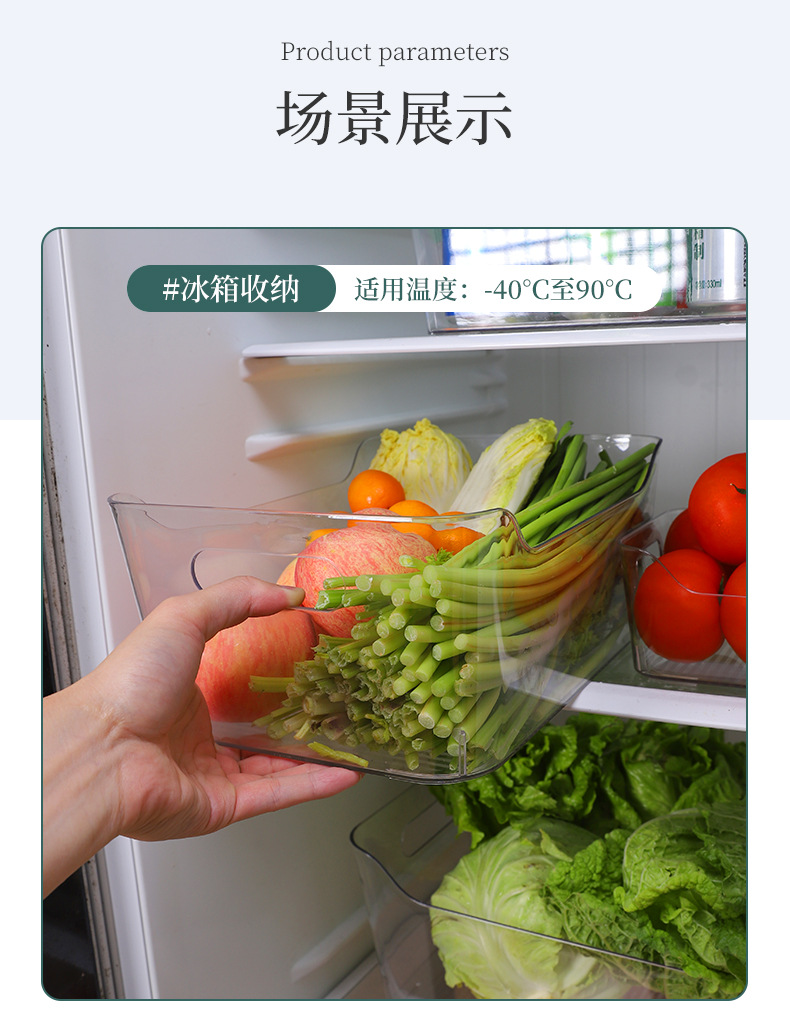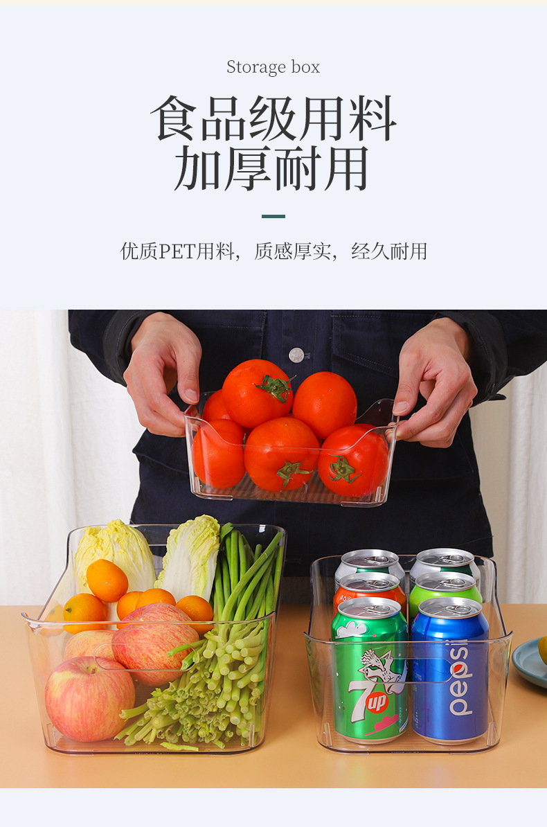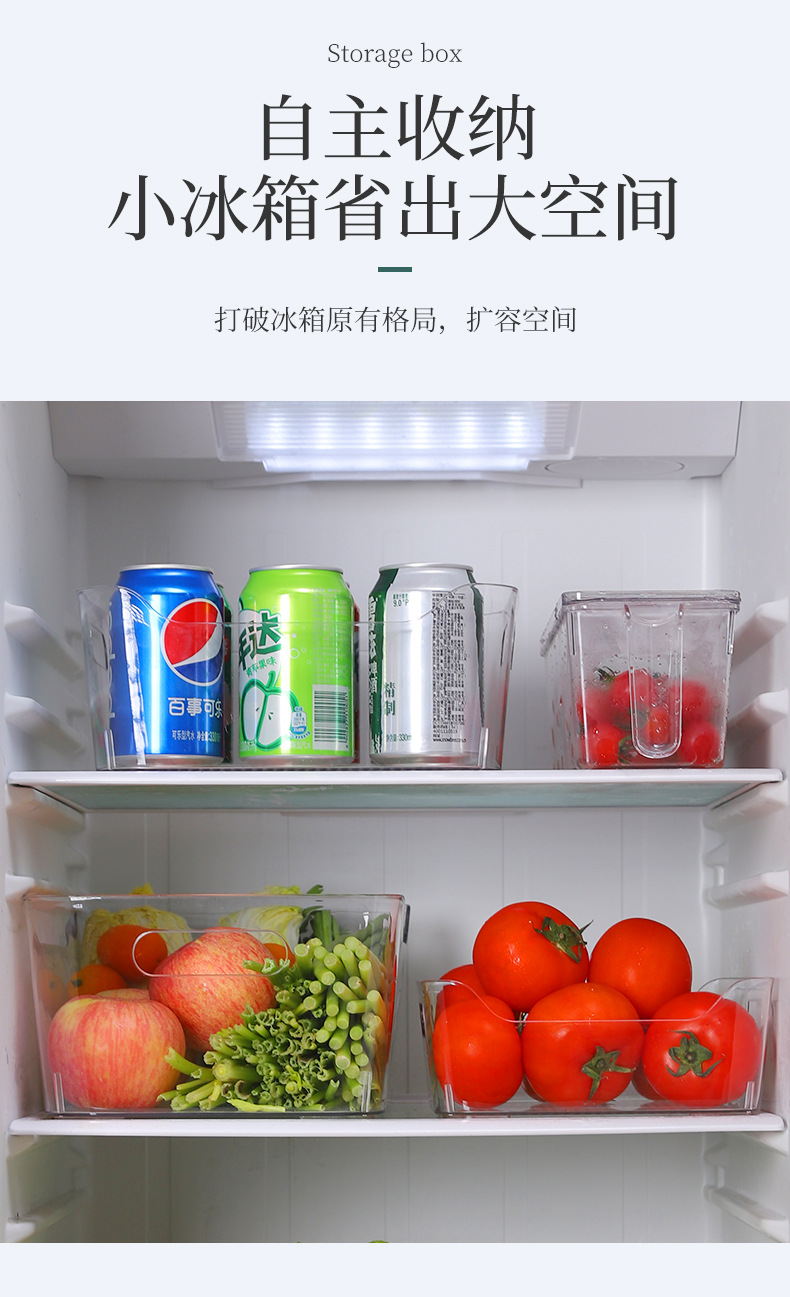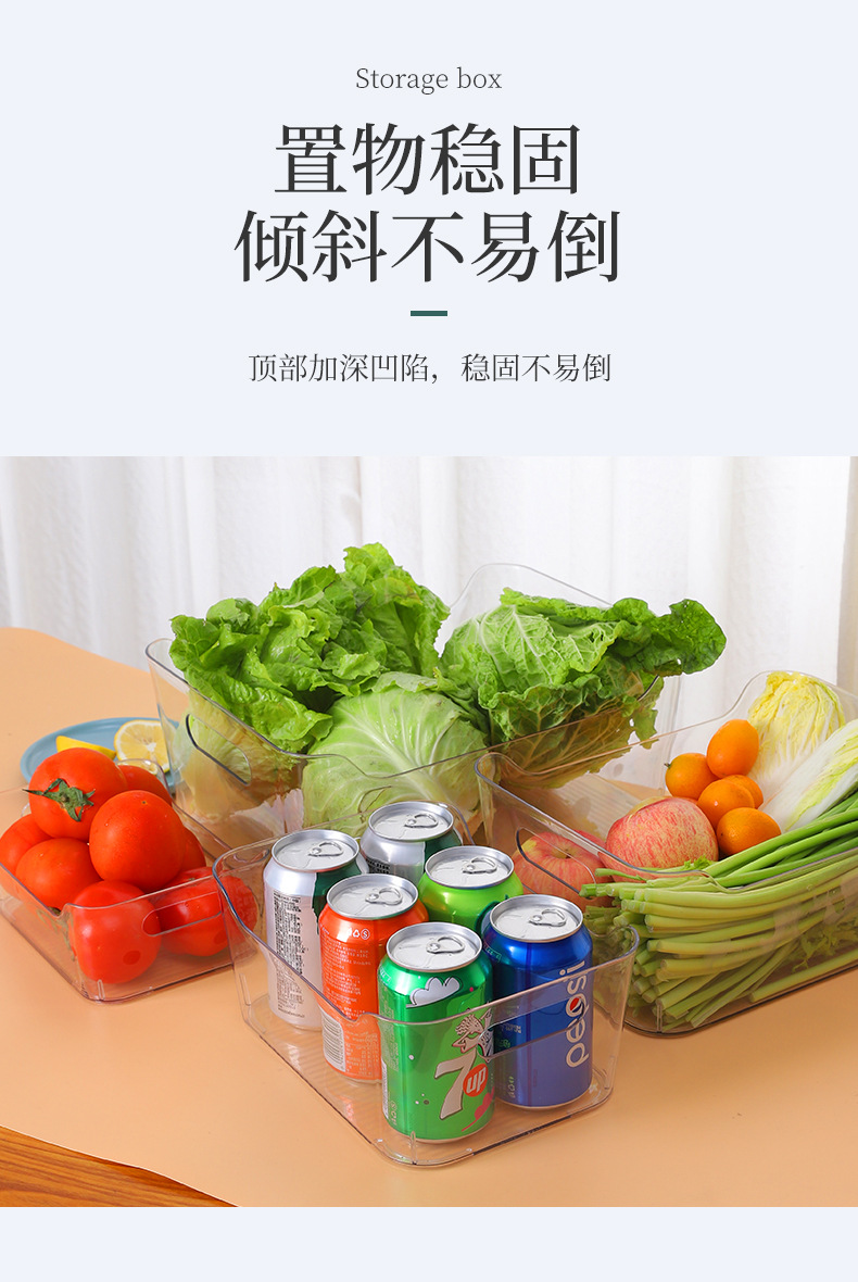冰箱食品保鲜盒多规格新款收纳箱收纳盒 双侧提手敞口收纳盒