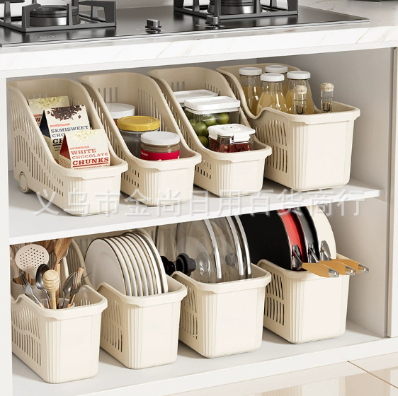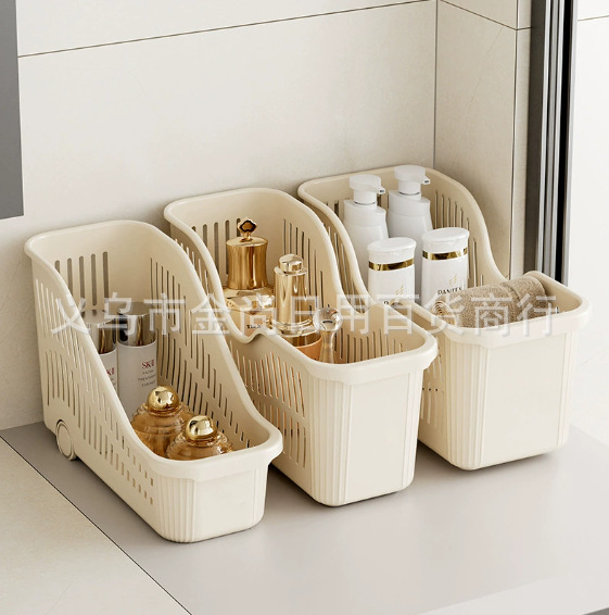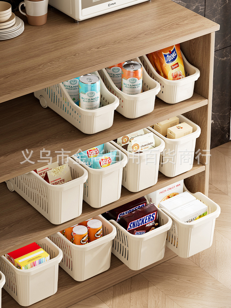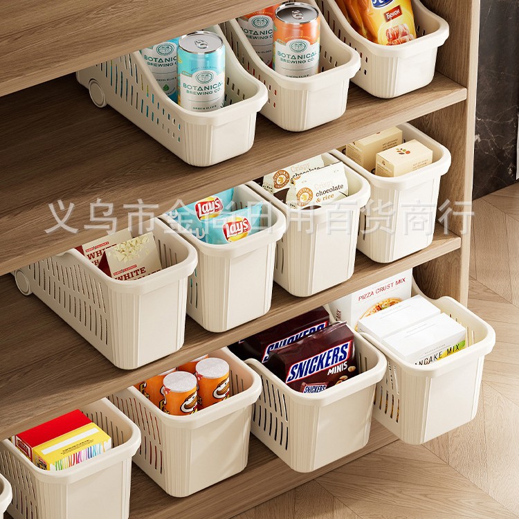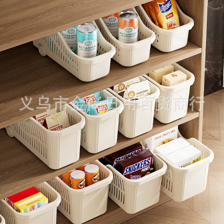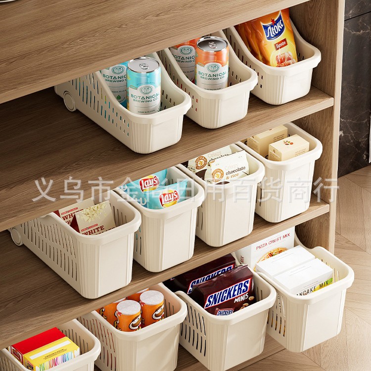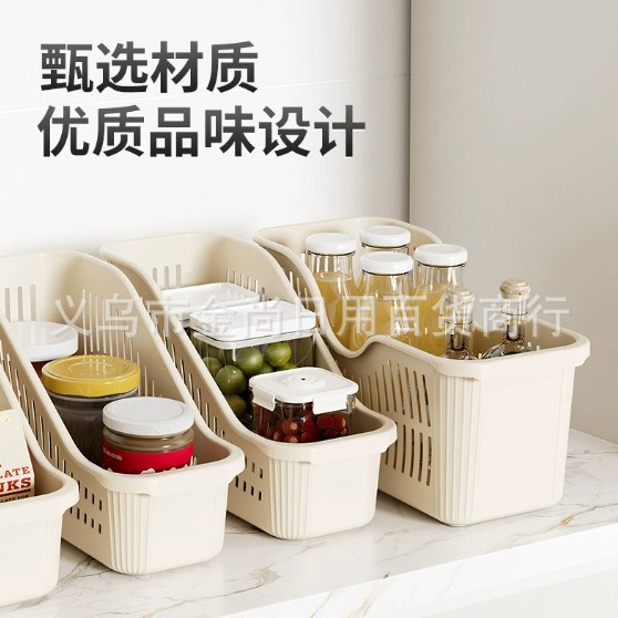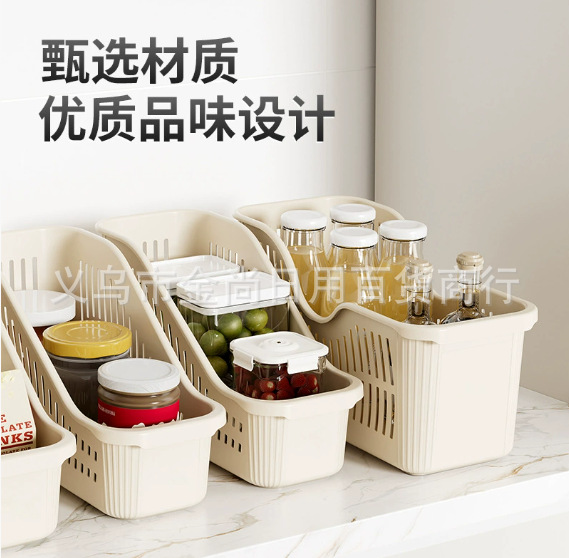 新款厨房收纳筐带轮置物盒家用塑料冰箱收纳框下水槽零食调料杂