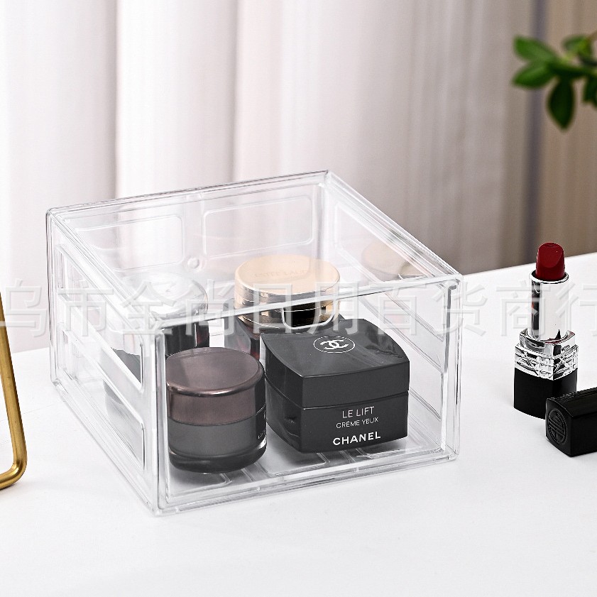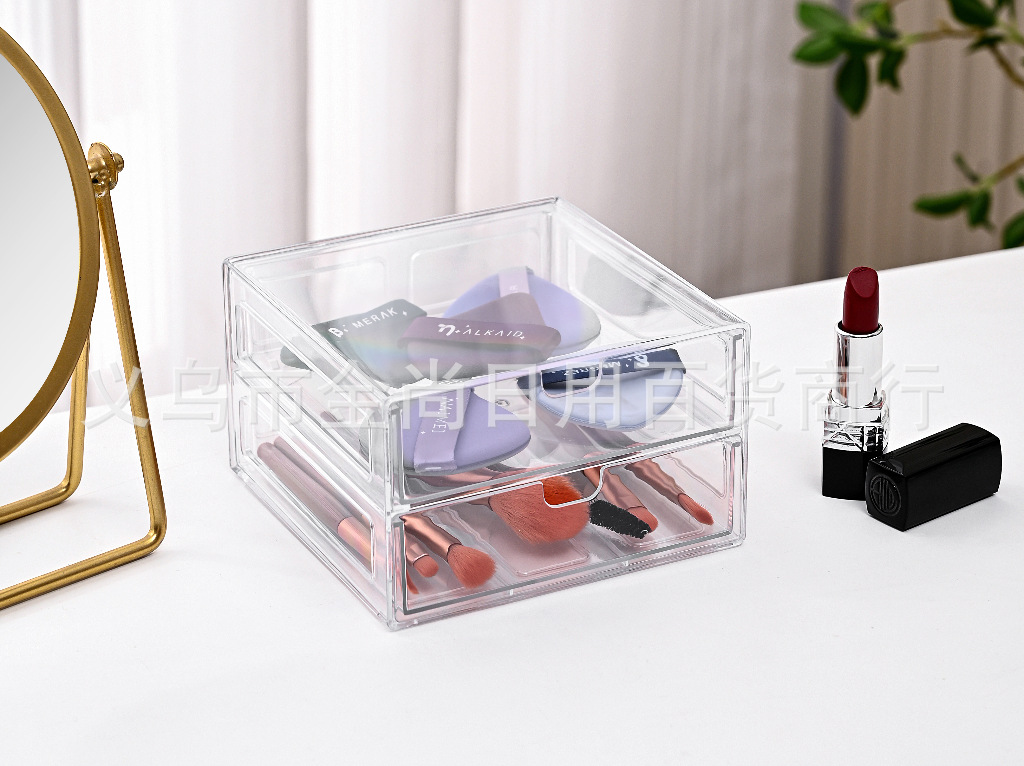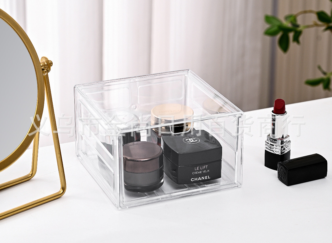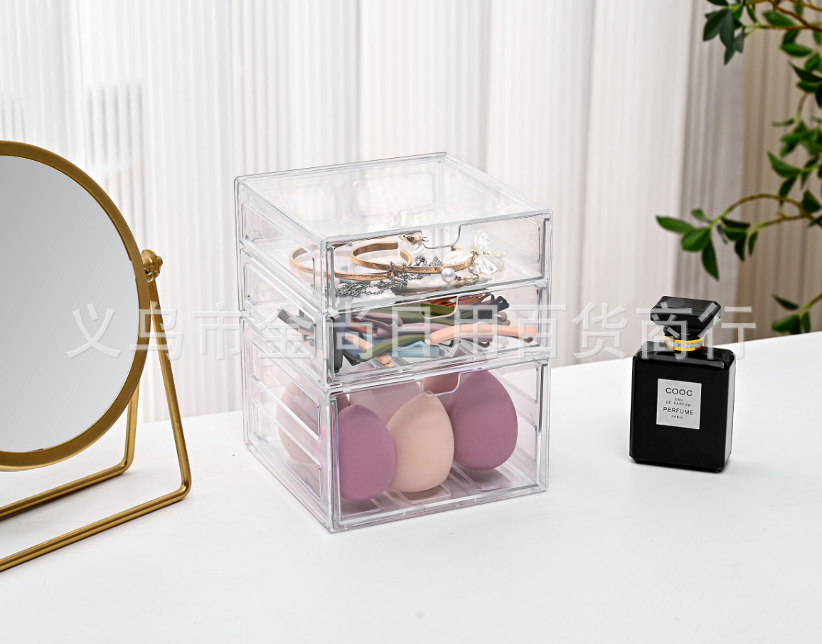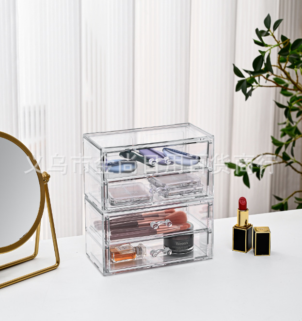 高颜值家用桌面透明化妆品收纳盒大容量多层组合抽屉式桌面整理盒