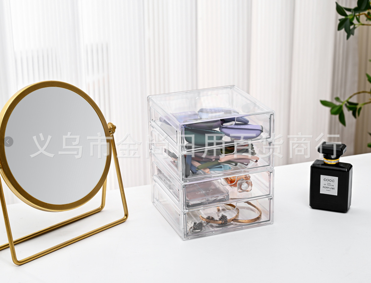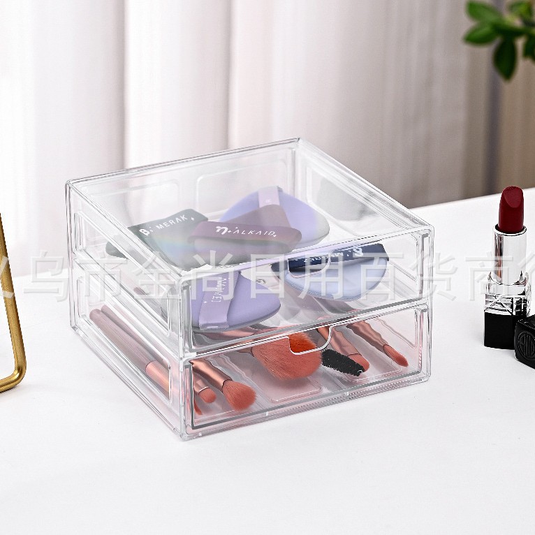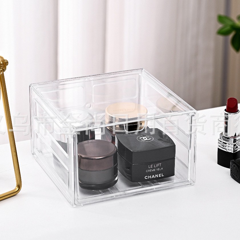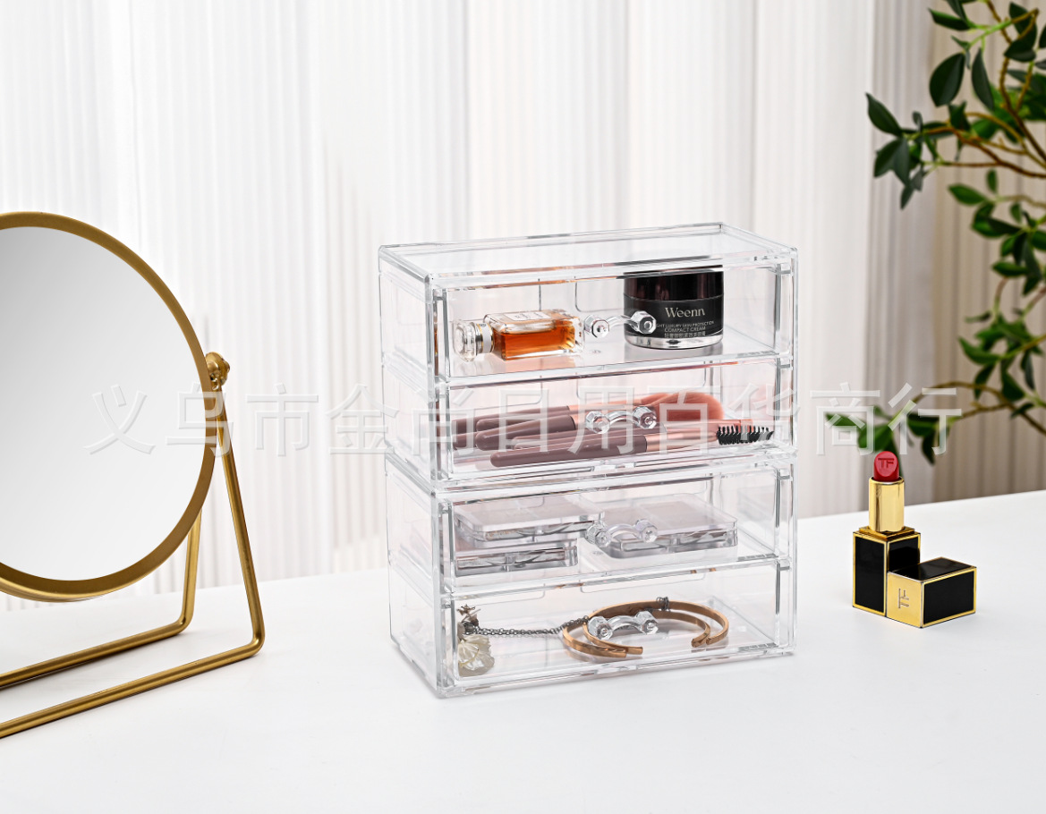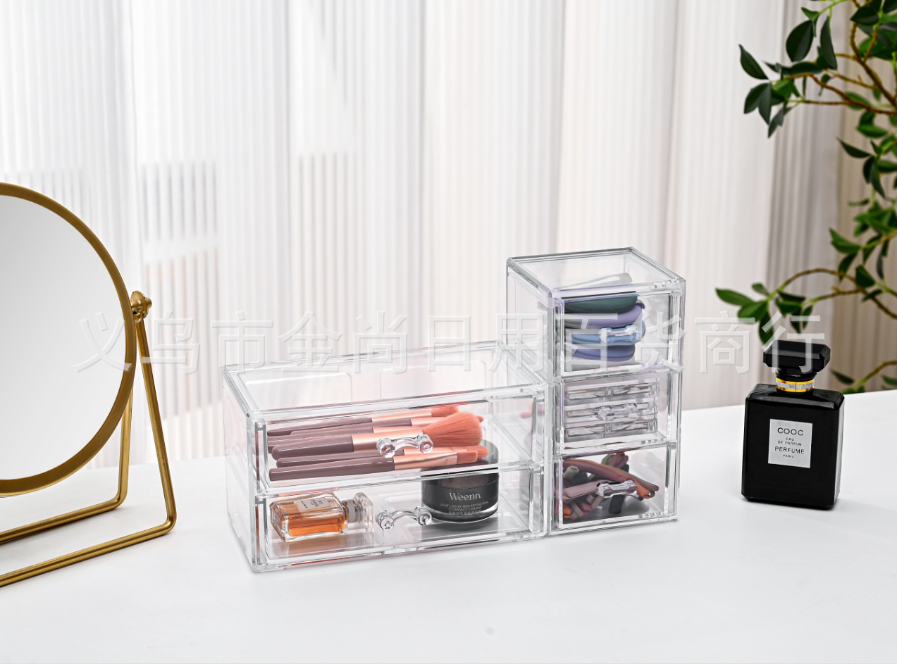 高颜值家用桌面透明化妆品收纳盒大容量多层组合抽屉式桌面整理盒