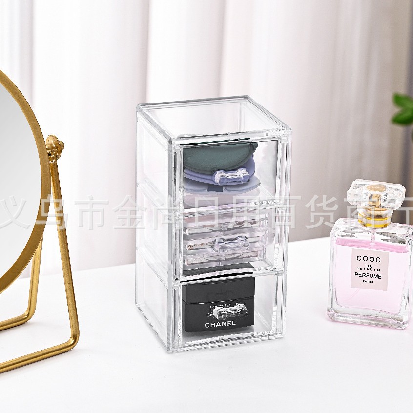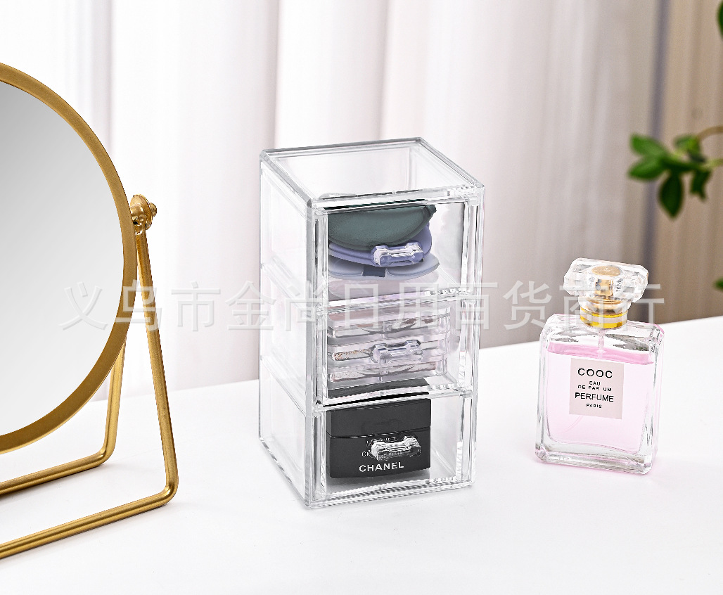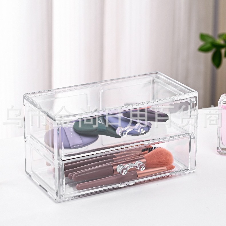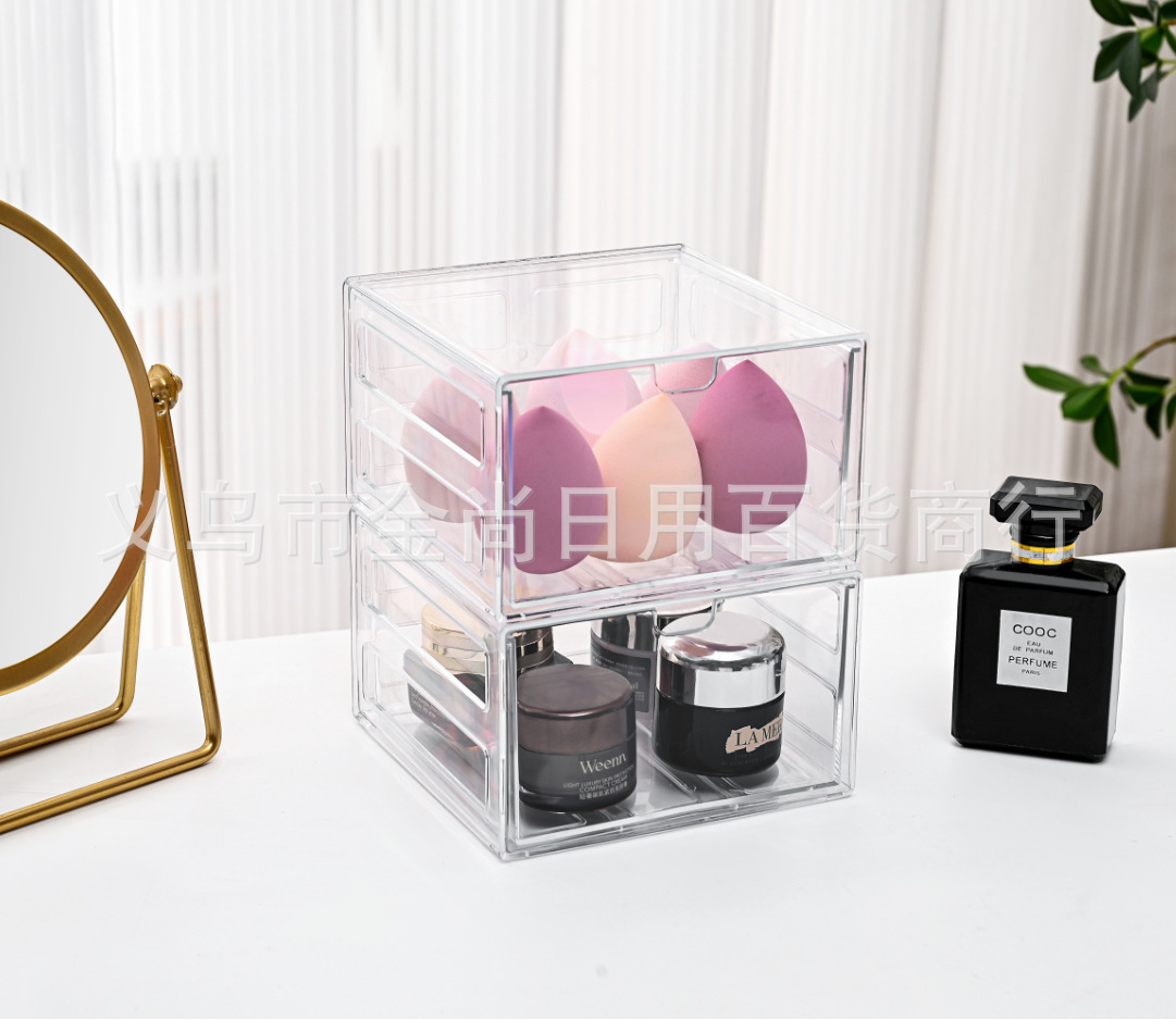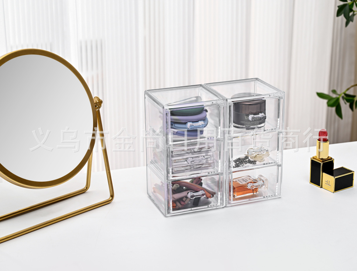 高颜值家用桌面透明化妆品收纳盒大容量多层组合抽屉式桌面整理盒