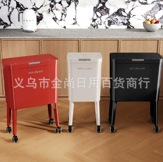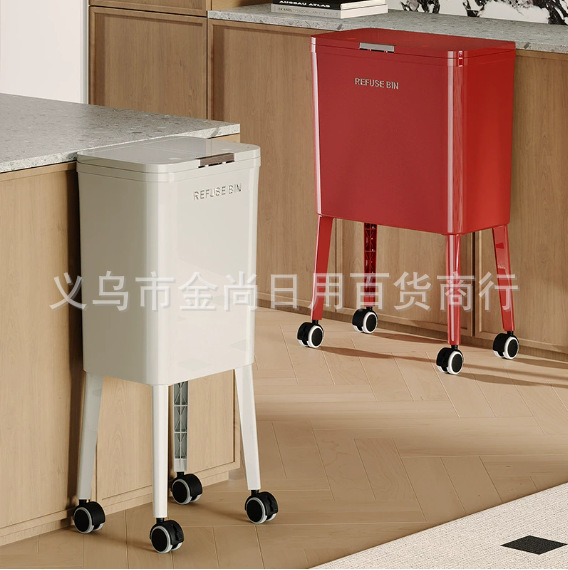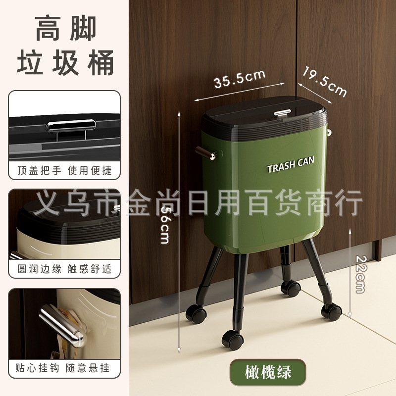高脚厨房垃圾桶家用2025新款专用免弯腰高款可移动带盖大号垃圾桶