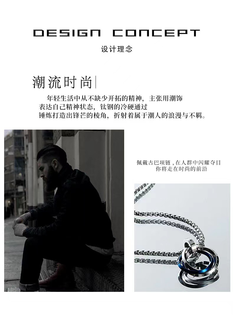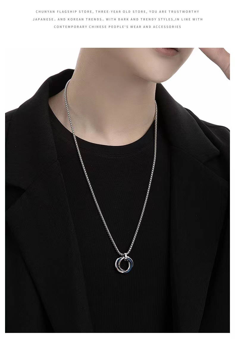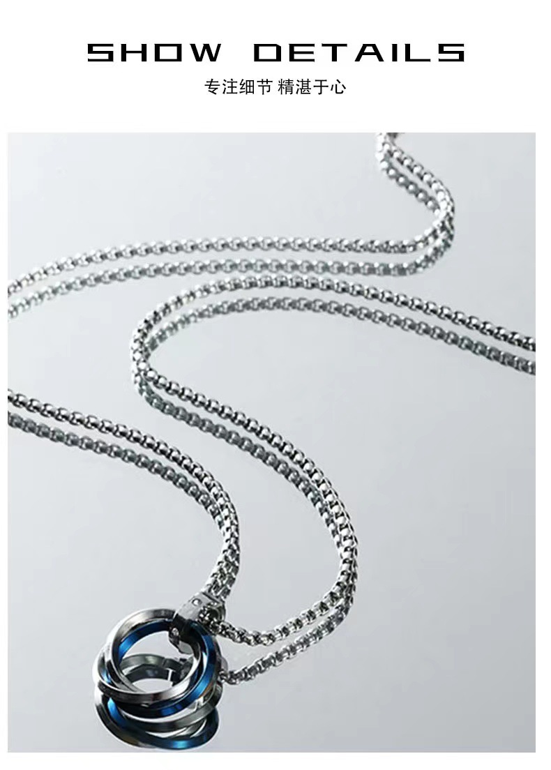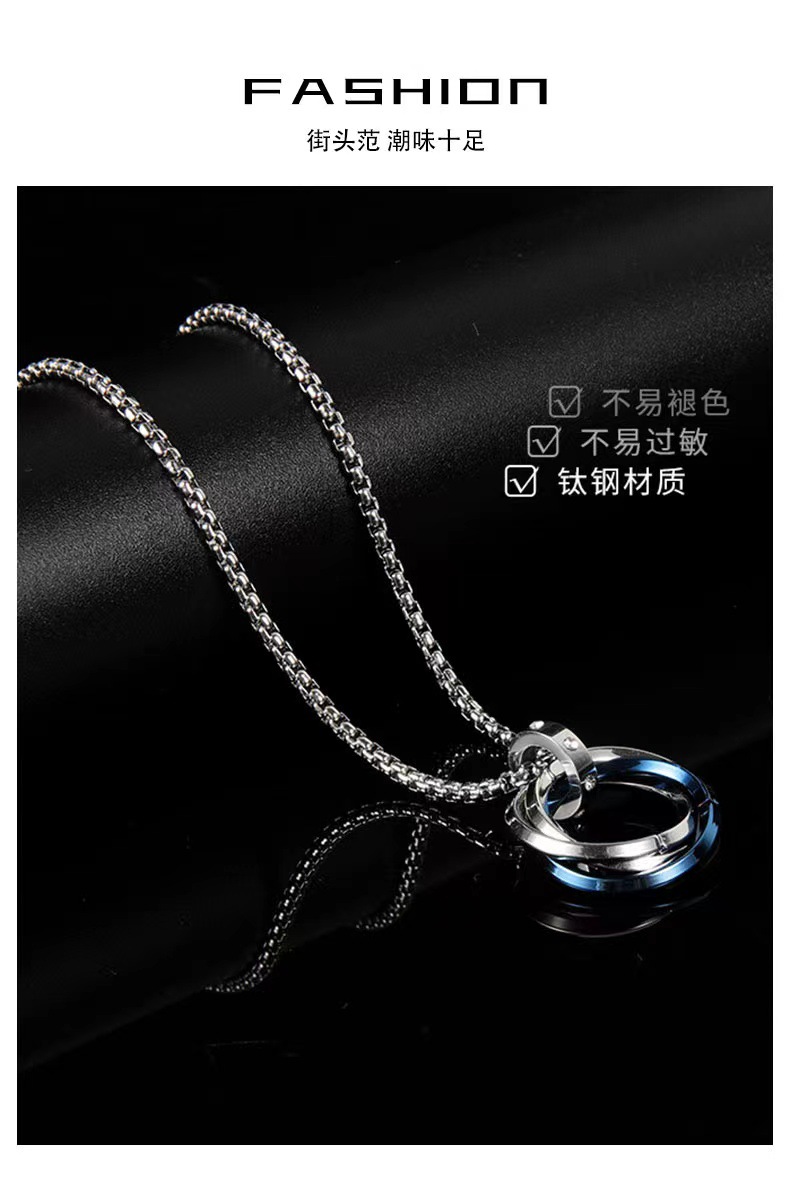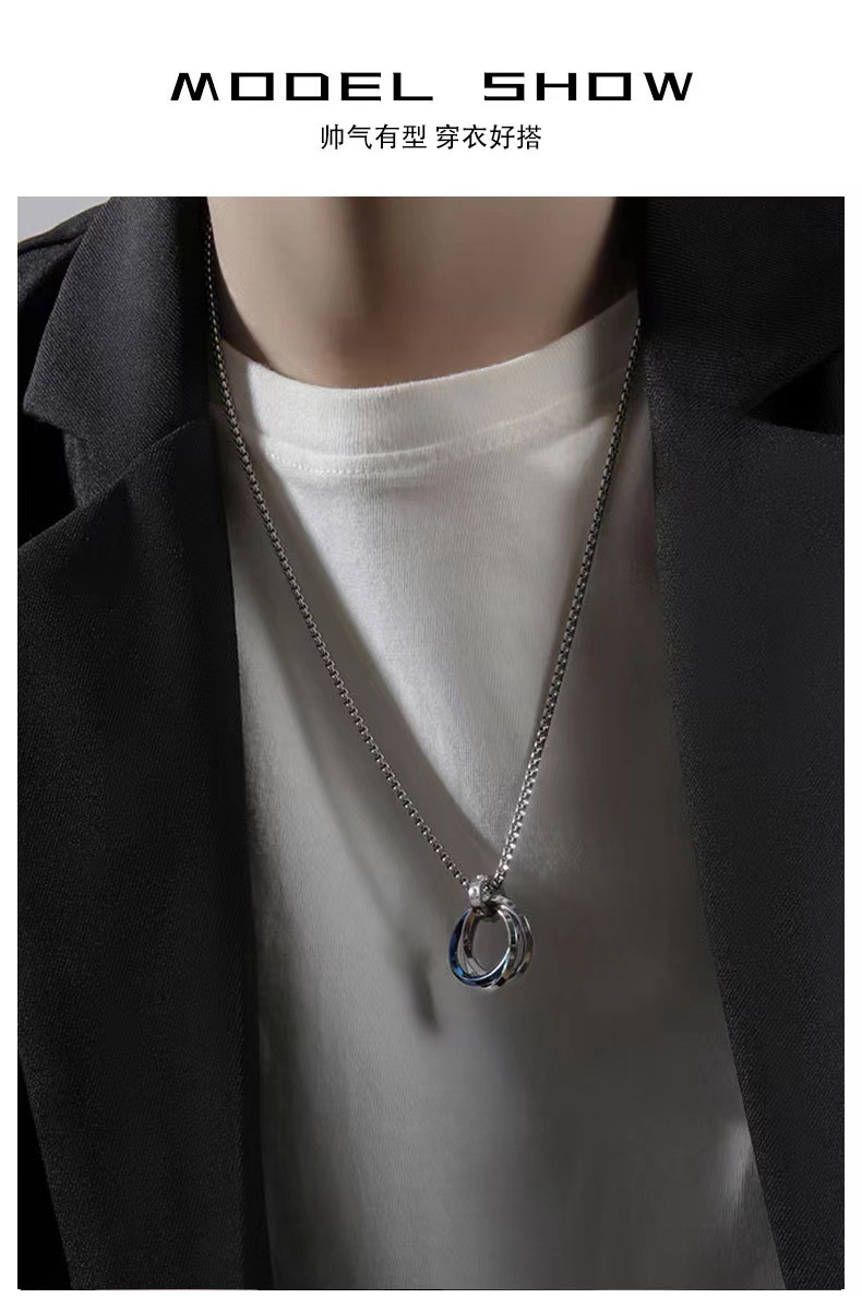 三环戒指男士项链潮嘻哈吊坠日韩个性挂坠毛衣链首饰钛钢挂饰配饰