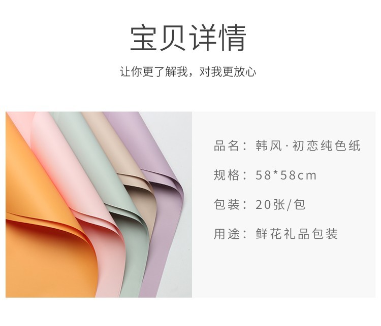 欧雅纸系列 韩风初恋纯色纸 鲜花包装纸花束花店花艺礼品包花纸