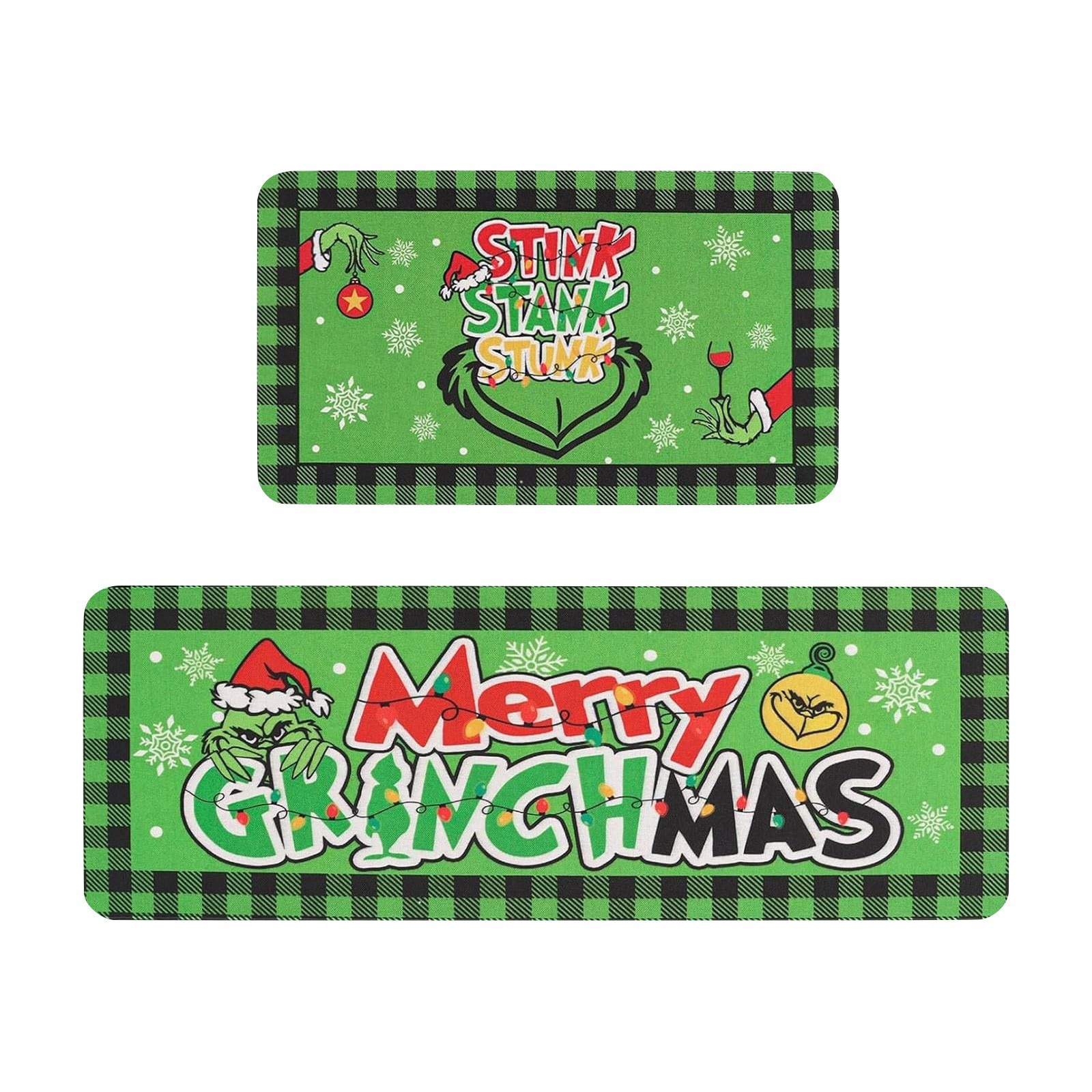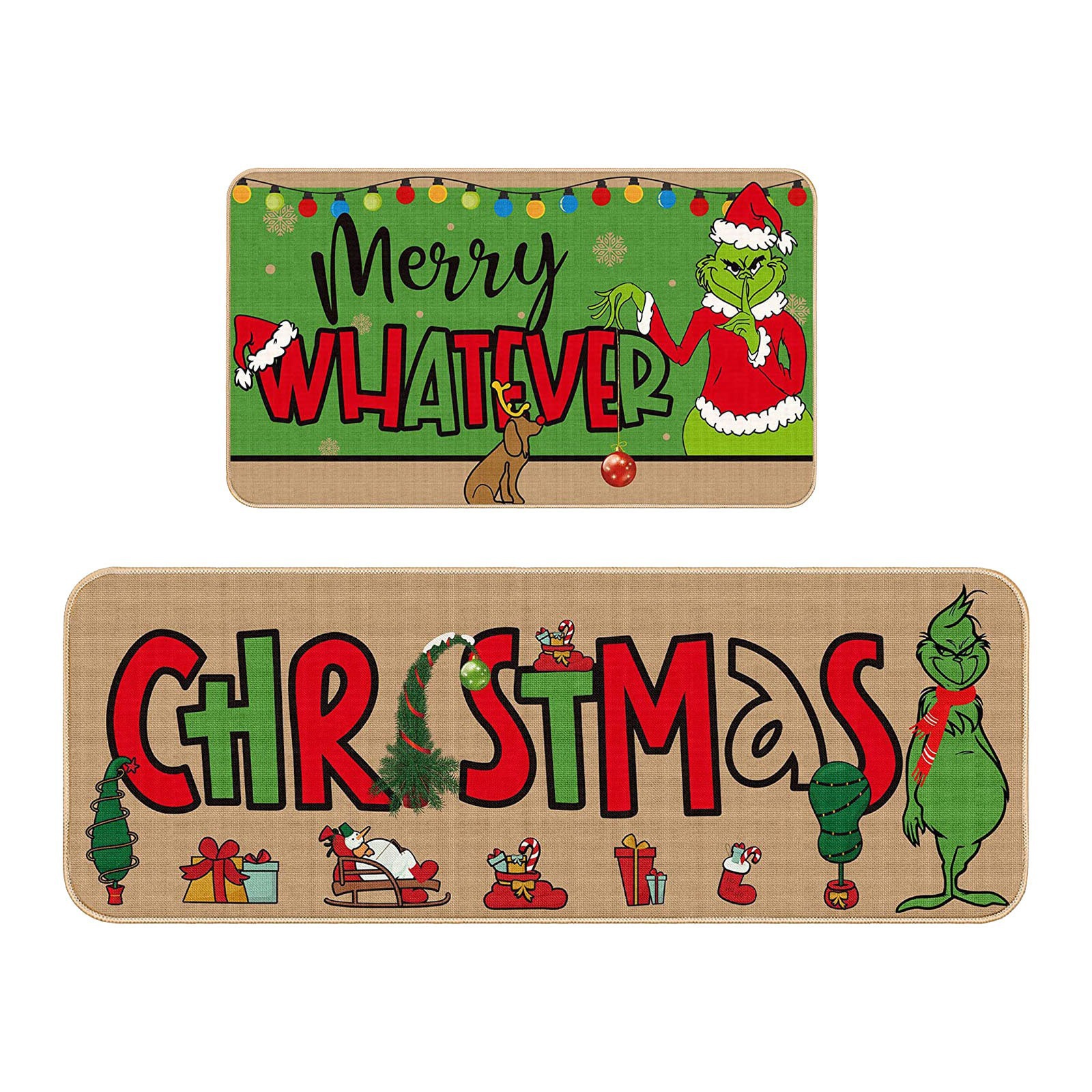 热款圣诞风格地垫厨房耐磨易清洗两件套脚垫浴室垫入户垫跨境代发