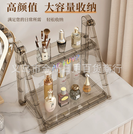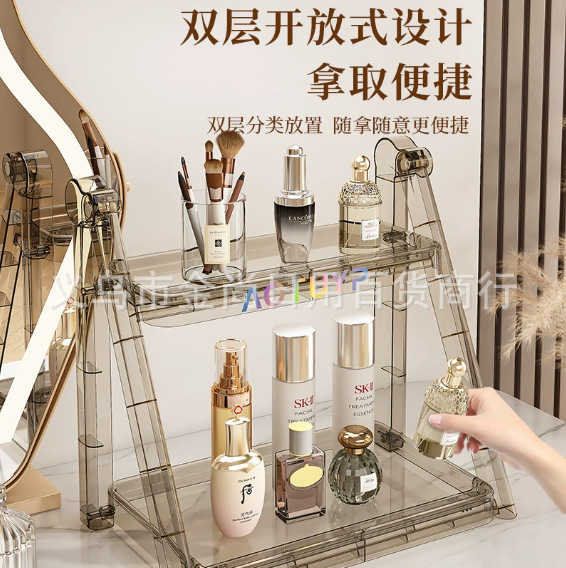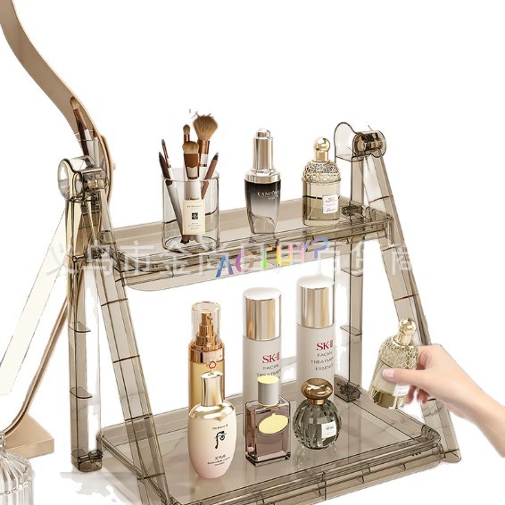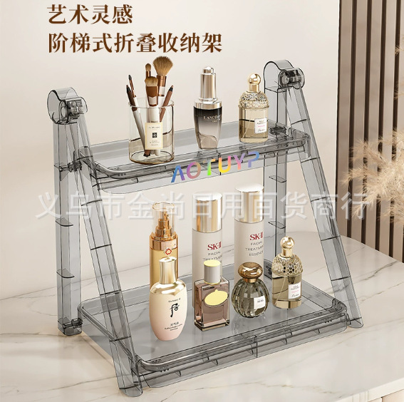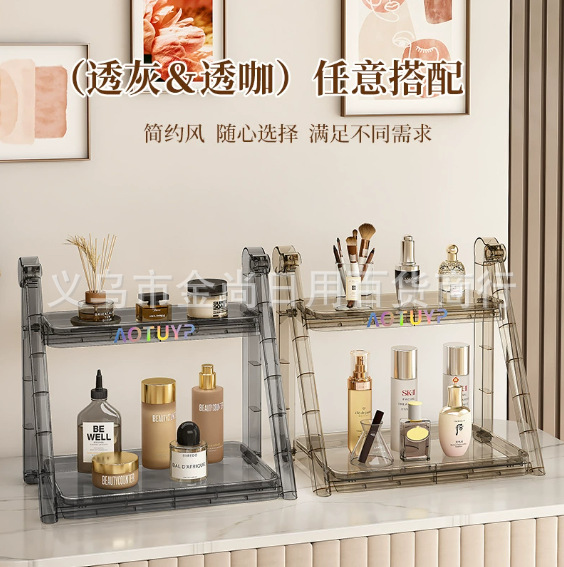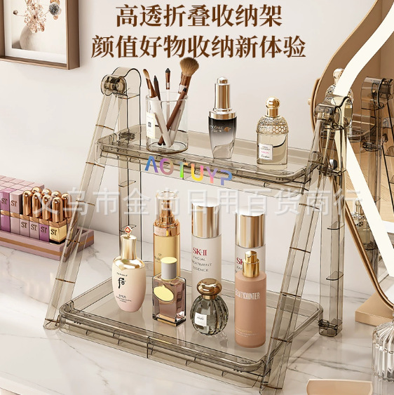 透明桌面置物架可折叠多层化妆品收纳架多功能杯子茶具杂物储物架
